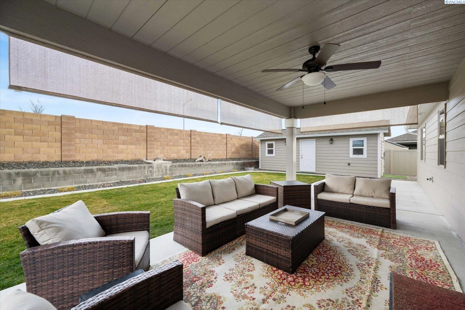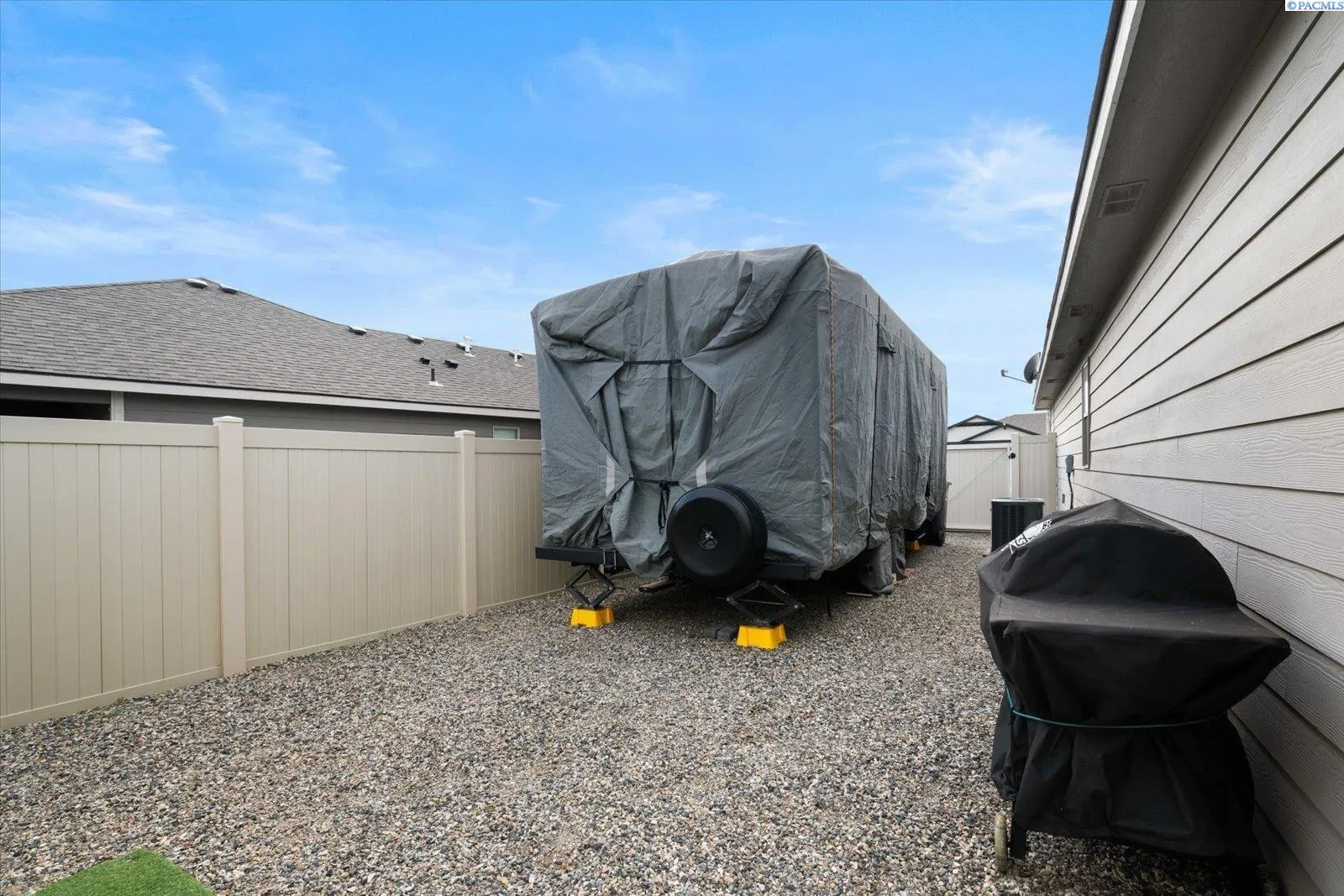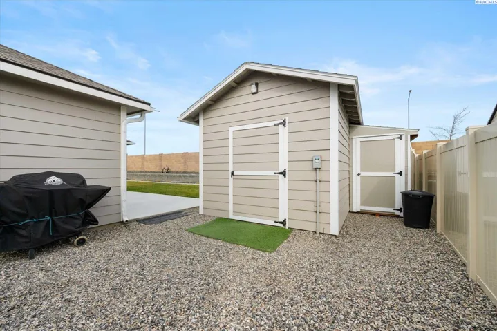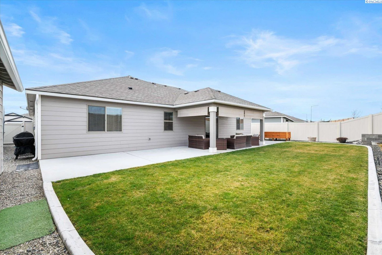MLS# 290725 MOVE-IN READY! This house is picture perfect and ready when you are! Many amenities were added after sellers moved in: Permitted 10×24 insulated split rooms workshop w/electricity & 50 amp service & disconnect, concrete floors, cabinets, window, man-door & 4′ garage door, 9×6 separate finished room incl, lap concrete siding matches home & 4×12 lean-to, unattached, at back of workshop. 11′ RV gate & parking was added on side of home. Back yard was professionally installed including: garden area, curbing, plantings, UGTS & drip lines watered from FCID, gutters around home, and there’s a 48×11 patio, the covered portion has sun screens, fan light & large open portion to enjoy your private backyard. Inside home boasts beautiful laminate floors everywhere but the 3 carpeted bdrms. Walk thru the large, vaulted great room, expansive dining area and into kitchen with soft close drawers & cabinets (kitchen & baths), pull-outs in cabinets, full tile backsplash, pantry closet & large sink. Window blinds were installed and sunshade on outside LR window, AND a 1 year Fidelity National Home Warranty is included! You won’t be disappointed in this immaculate home!