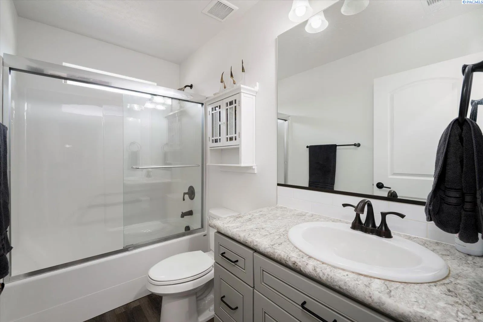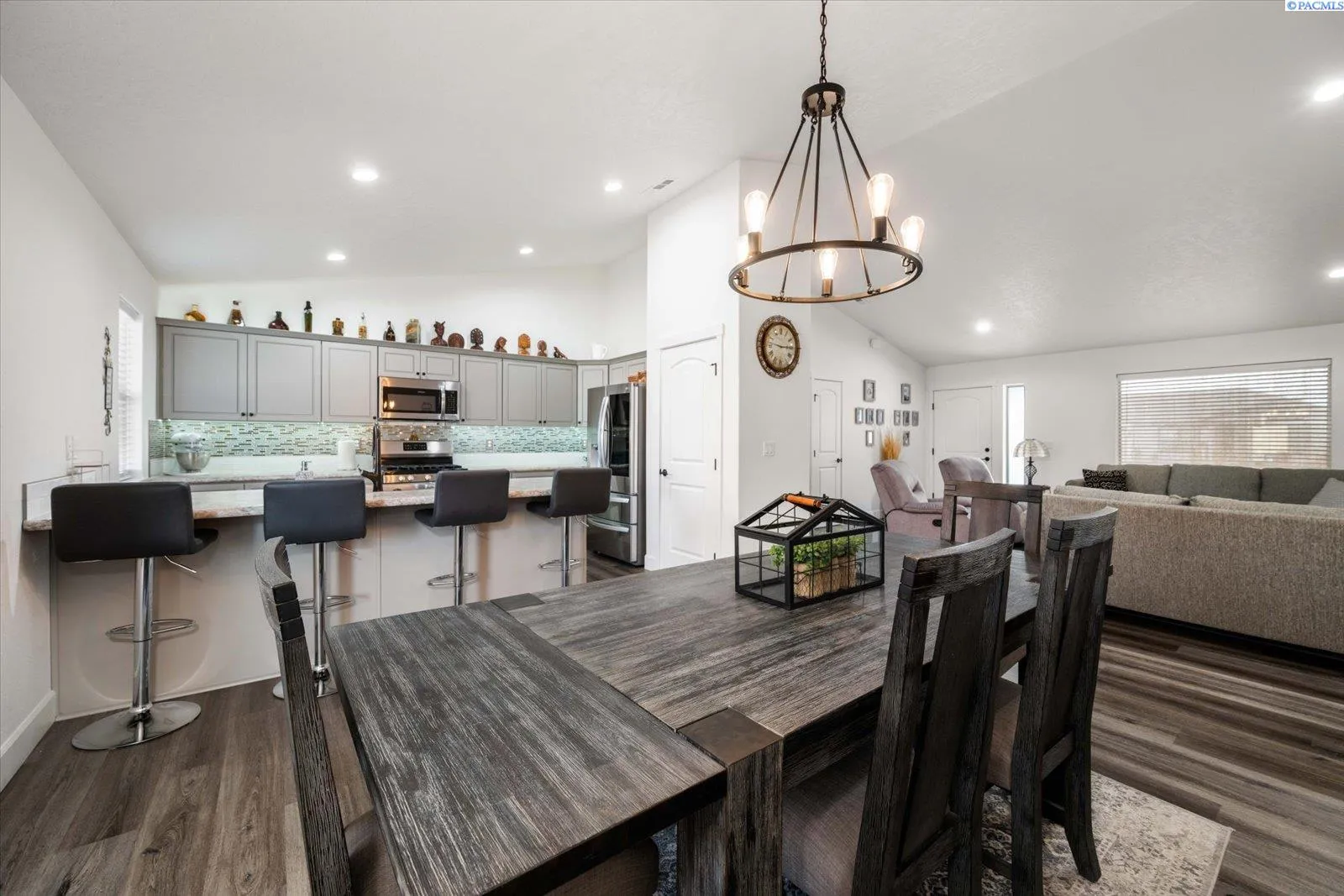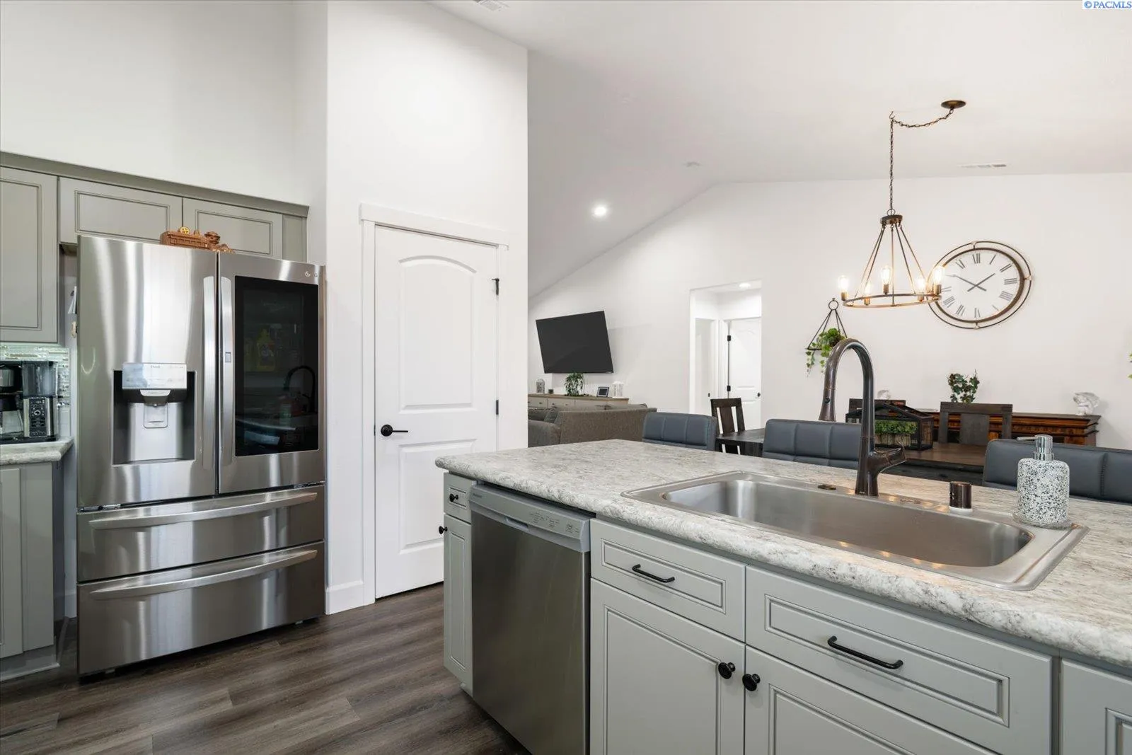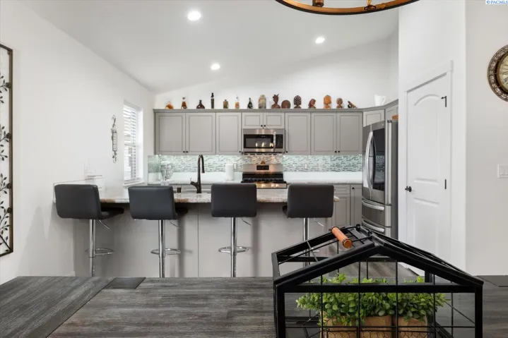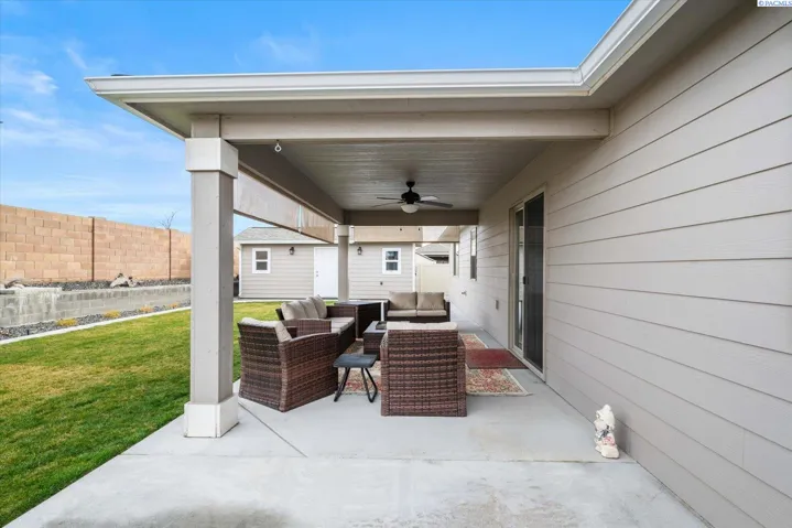 MLS# 290725 MOVE-IN READY! This house is picture perfect and ready when you are! Many amenities were added after sellers moved in: Permitted 10×24 insulated split rooms workshop w/electricity & 50 amp service & disconnect, concrete floors, cabinets, window, man-door & 4′ garage door, 9×6 separate finished room incl, lap concrete siding matches home & 4×12 lean-to, unattached, at back of workshop. 11′ RV gate & parking was added on side of home. Back yard was professionally installed including: garden area, curbing, plantings, UGTS & drip lines watered from FCID, gutters around home, and there’s a 48×11 patio, the covered portion has sun screens, fan light & large open portion to enjoy your private backyard. Inside home boasts beautiful laminate floors everywhere but the 3 carpeted bdrms. Walk thru the large, vaulted great room, expansive dining area and into kitchen with soft close drawers & cabinets (kitchen & baths), pull-outs in cabinets, full tile backsplash, pantry closet & large sink. Window blinds were installed and sunshade on outside LR window, AND a 1 year Fidelity National Home Warranty is included! You won’t be disappointed in this immaculate home!
