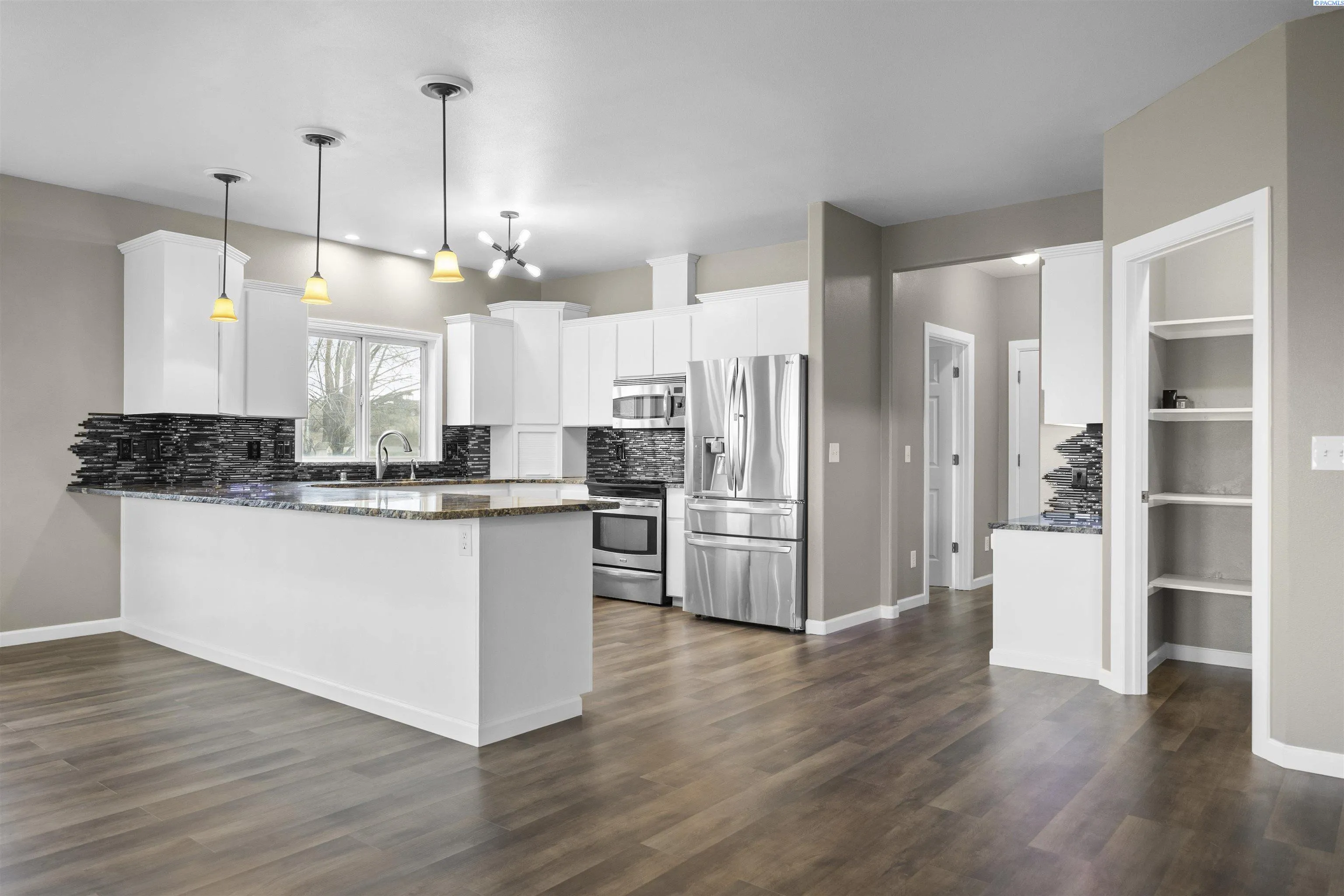 MLS# 290733 Expansive 2.5-acre property offering space, flexibility, and incredible future potential! Located in the established Willamette Heights neighborhood within the city limits of West Richland, this unique property is currently zoned RM-10 (Medium Density Residential). The acreage presents exciting development possibilities once the city’s planned sewer capacity expansion—now under review—is completed. The gorgeous rambler with a daylight basement offers 3,442 sq ft of well-designed living space, featuring 5 bedrooms, 3 bathrooms, and an attached 3-car garage. The main level showcases an open-concept layout ideal for entertaining, with seamless flow between living spaces. The kitchen is beautifully appointed with granite countertops, a full-height glass tile backsplash, stainless steel appliances, and a generous pantry. The adjacent dining area provides direct access to a covered deck—perfect for relaxing or hosting gatherings while enjoying the surrounding views. The main-level owner’s suite features a spacious closet and a private bath complete with dual vanities, a soaking tub, and a separate shower. Downstairs, the large rec room offers additional living and entertaining space with direct backyard access, along with a laundry room and abundant storage. This home could be the ideal set-up for multi-generational living with plenty of room for all your loved ones. Step outside and enjoy the expansive patio and deck, surrounded by mature trees and open space. There’s a storage building and attached 3-car garage for all your storage and project needs, open RV parking, room for a garden, and peaceful acreage that offers space to grow. With 2.5 acres, the possibilities are wide open—build your dream shop, add an in-ground pool, or explore the potential for an ADU. Conveniently located near schools, parks, and local amenities, this property perfectly blends everyday comfort with outstanding long-term potential.