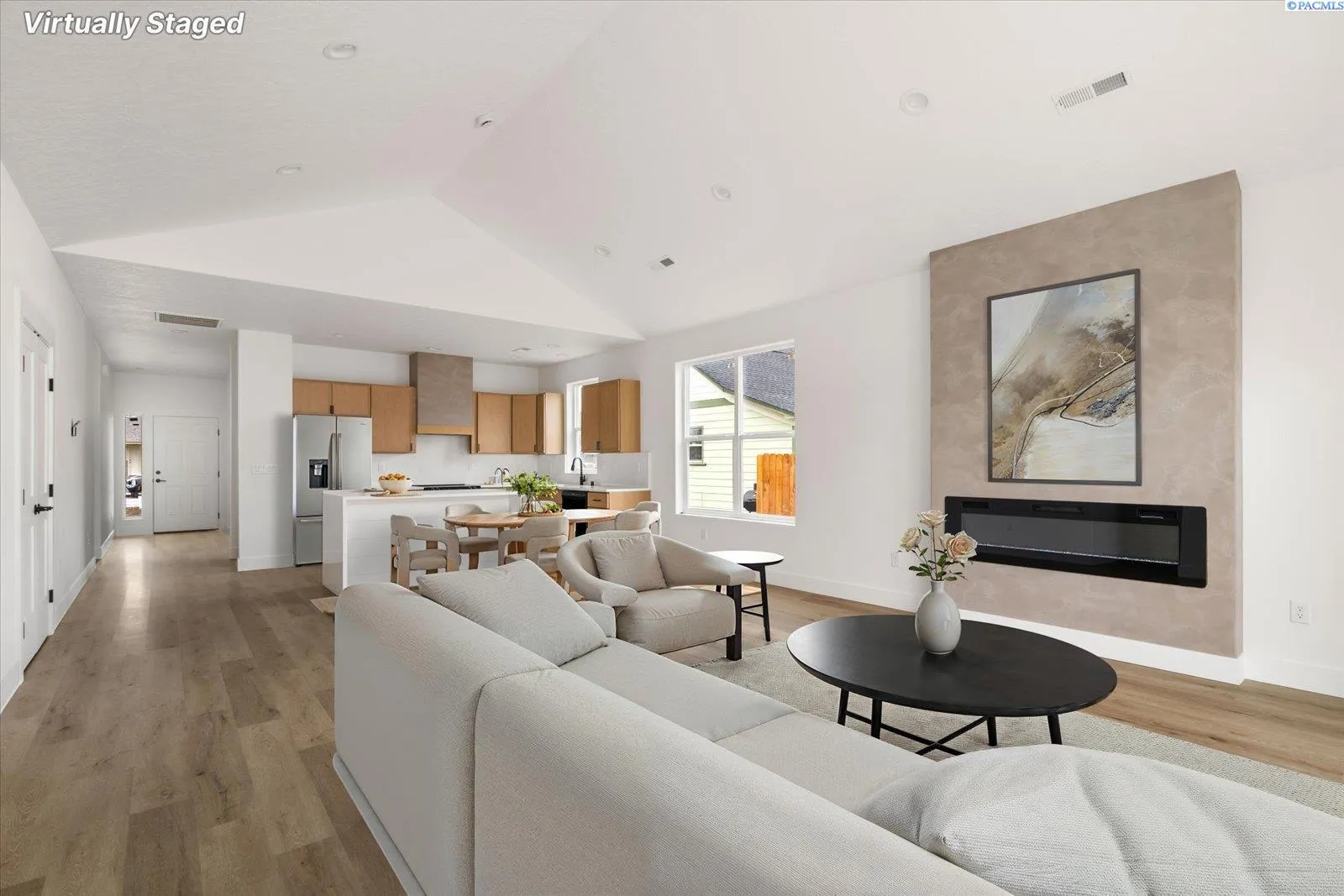 New construction at 1426 Grant Ave, Prosser, WA 99350! This 3-bedroom, 2-bath home offers 1,483 sq ft of bright, open living space filled with natural light and modern finishes. The open-concept layout creates an easy flow for everyday living and entertaining. The primary suite features dual sinks and a spacious walk-in closet. Two additional bedrooms provide flexibility for guests, a home office, or hobbies. Complete with an attached garage, underground irrigation, and hydroseeded yard. Located close to the river — move-in ready and designed for comfortable, modern living.