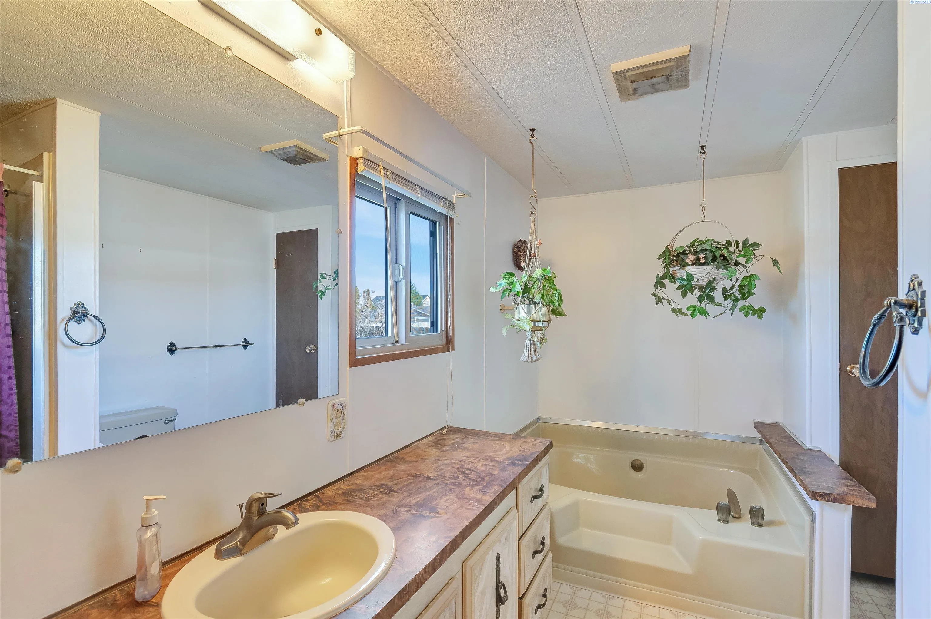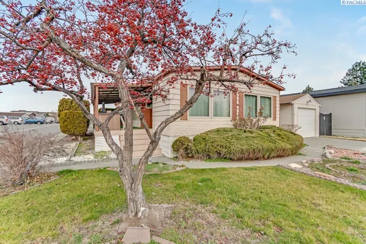 MLS# 290755 Imagine relaxing on this quality covered deck, enjoying the sunset view over Badger Mountain. Everything about this meticulously maintained home makes it ready for you to move in and begin enjoying a relaxing lifestyle. You’ll appreciate the spacious living room with abundant windows and plenty of natural light. The kitchen offers a view from the sink and there are plenty of cabinets for storage. Display your dishes in the dining room’s built-in china cabinet, which also includes an office desk space and a sliding glass door to access the covered deck. The primary suite has a soaking tub, separate shower and mirrored wardrobe closet. The second bedroom has access to an additional full bathroom, which is also available for guest use off the laundry area. The corner lot is extra large and includes partial fencing, additional parking, a storage shed and single-car garage with a storage area inside. Make an appointment to see this home today!
