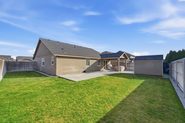 Welcome to 5712 Middle Fork in Pasco… bright, welcoming, and easy to love. This well-maintained 3-bedroom, 3-bath home offers 1,372 square feet of comfortable living in Franklin County. Fresh white paint and beautiful natural light give the home an airy, uplifting feel from the moment you walk in. The living area is filled with sunlight that highlights the warm flooring and open layout, creating a space that feels both cozy and connected. The kitchen flows seamlessly into the dining area and features a gorgeous quartz island — perfect for morning coffee, casual meals, or gathering with friends. Stainless appliances and a convenient pantry keep everything practical and within reach. Step outside to the full-length back patio, ideal for summer evenings and weekend BBQs. The fully fenced backyard offers privacy and room to relax, garden, or let pets roam, plus a storage shed for added storage. The finished garage adds versatility whether you need parking, a home gym, or hobby space, it’s ready to flex with your needs. Light, functional, ready for new home owners — 5712 Middle Fork is the kind of home that simply feels good to come home to.