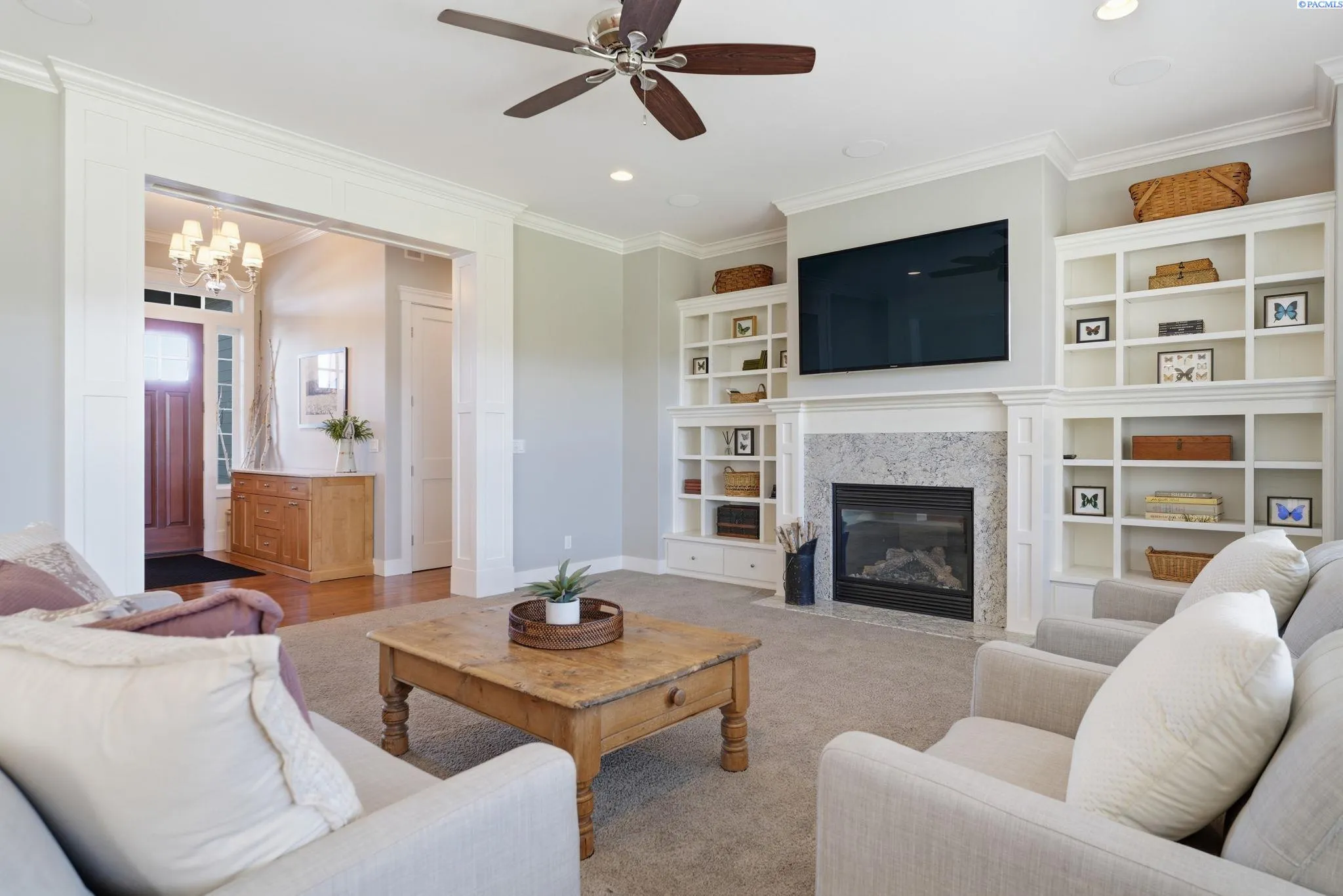 Welcome to this immaculate, one-owner home in the highly desirable Cottonwood Springs! Perfectly situated on just over an acre, this exceptional property offers space, privacy, and thoughtful upgrades throughout. Boasting 3 spacious bedrooms and 3.5 bathrooms, every bedroom features its own private en-suite bath and walk-in closet—ideal for guests or multigenerational living. Rich solid hickory wood floors add warmth and timeless character to the main living areas. The gourmet kitchen is truly the heart of the home, showcasing a Thermador cooktop, double ovens, a large island perfect for gathering, and an expansive butler’s pantry complete with a second refrigerator and freezer. An under-sink reverse osmosis system even runs to the refrigerator ice maker for added convenience. The cozy living room offers a beautiful fireplace and custom built-in shelving, creating the perfect space to relax or entertain. You’ll also love the oversized laundry room, complete with a utility sink and abundant storage to keep everything organized and out of sight with a dedicated office/workspace station providing the perfect setup for working from home, managing household tasks, or homework time. Step outside to enjoy the covered patio overlooking a fully fenced backyard. Mature junipers line the border for enhanced privacy, while the 15×100 garden area with weed fabric is ready for your green thumb. There’s also open RV parking alongside the garage with backyard pull-through access. Spacious finished 3 car garage with storage room and a dedicated lawn mower area with small garage door to access the backyard allowing ultimate functionality. Additional highlights include a new water softener system installed in 2024 and meticulous pride of ownership throughout. This is the kind of home that rarely comes available—beautifully maintained, and move-in ready.