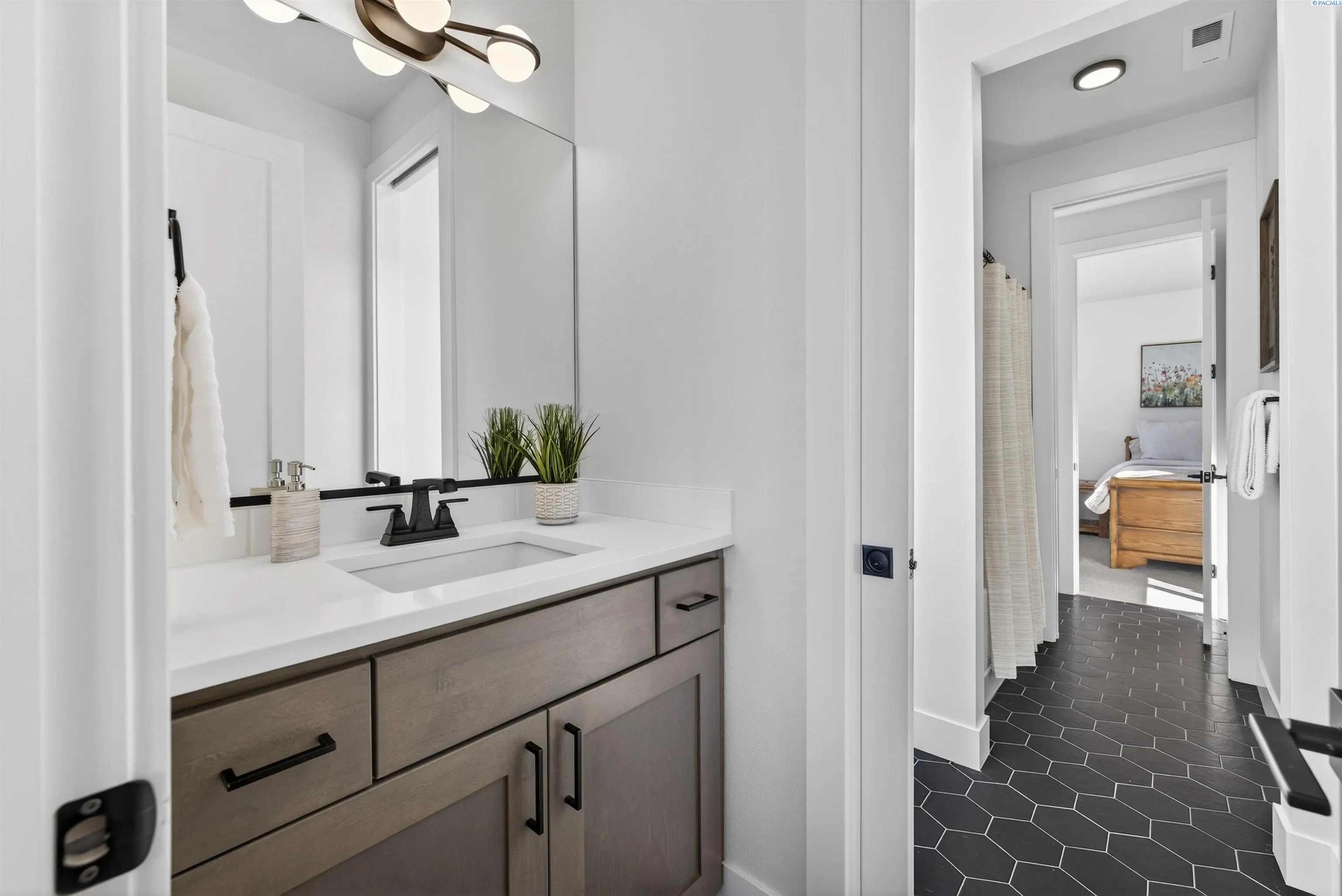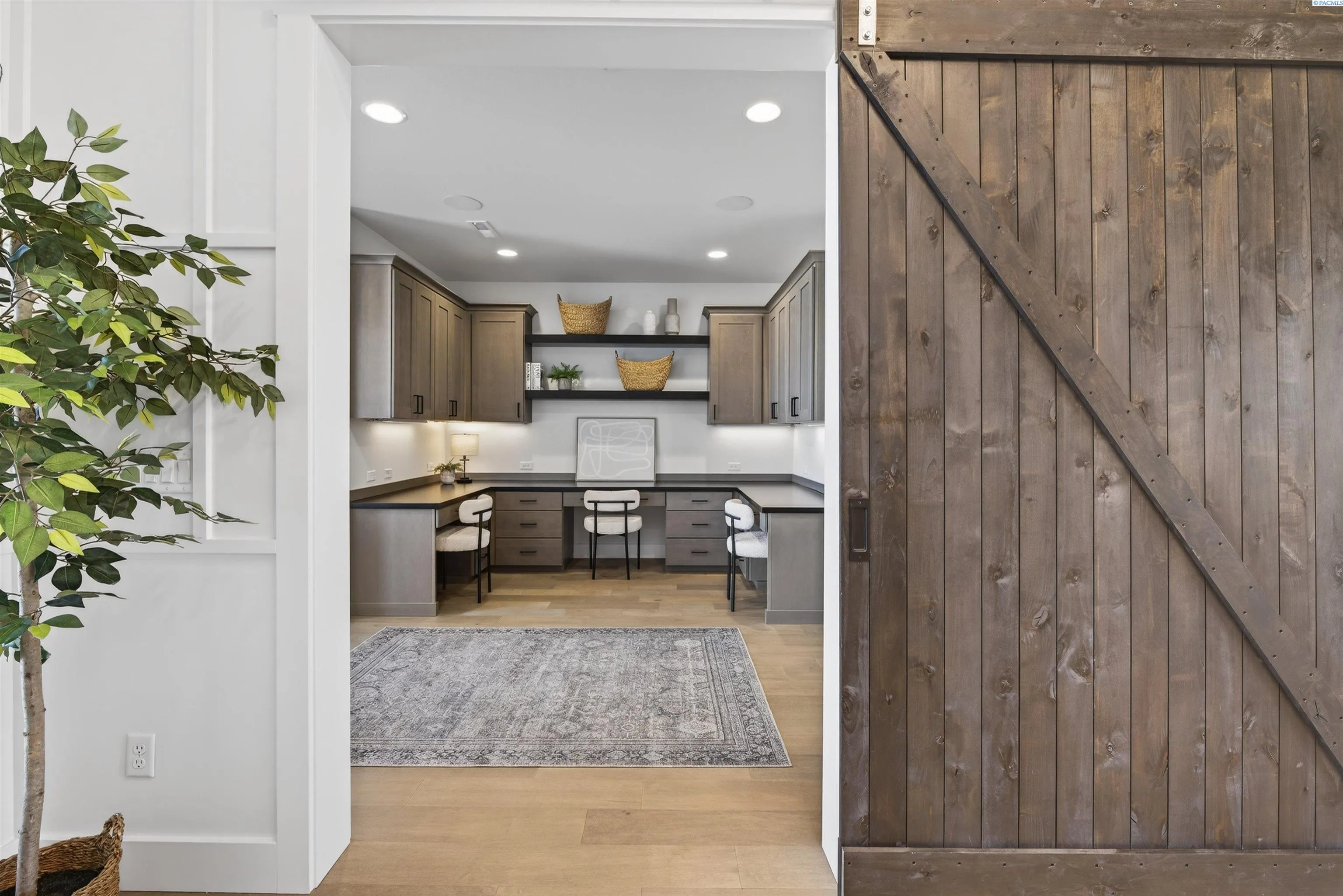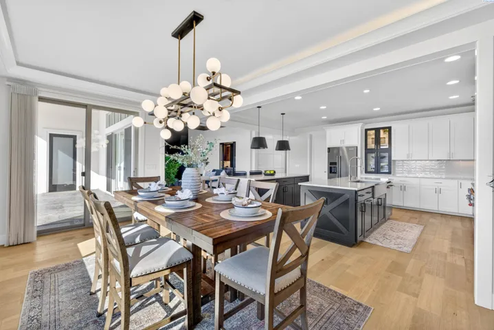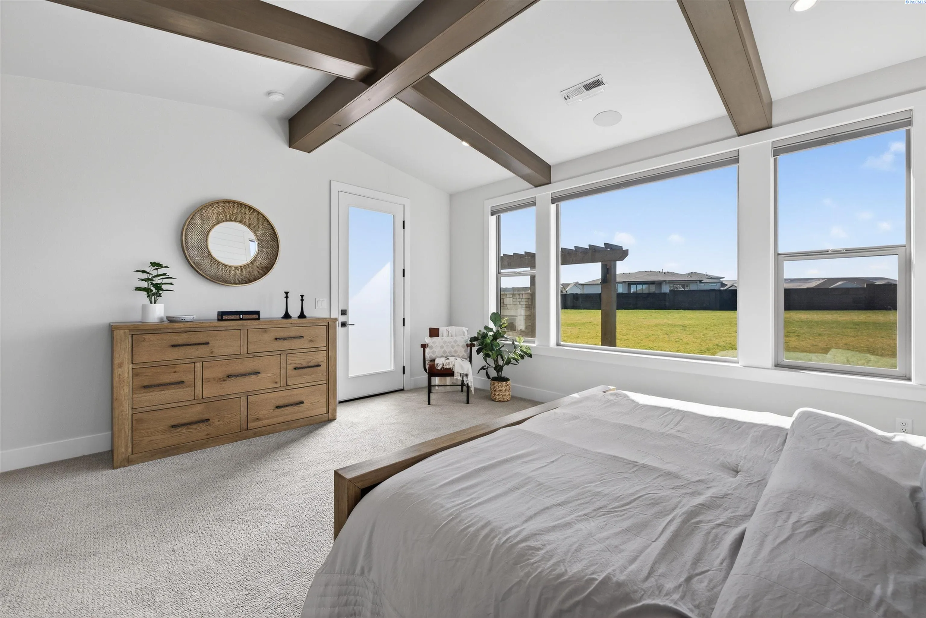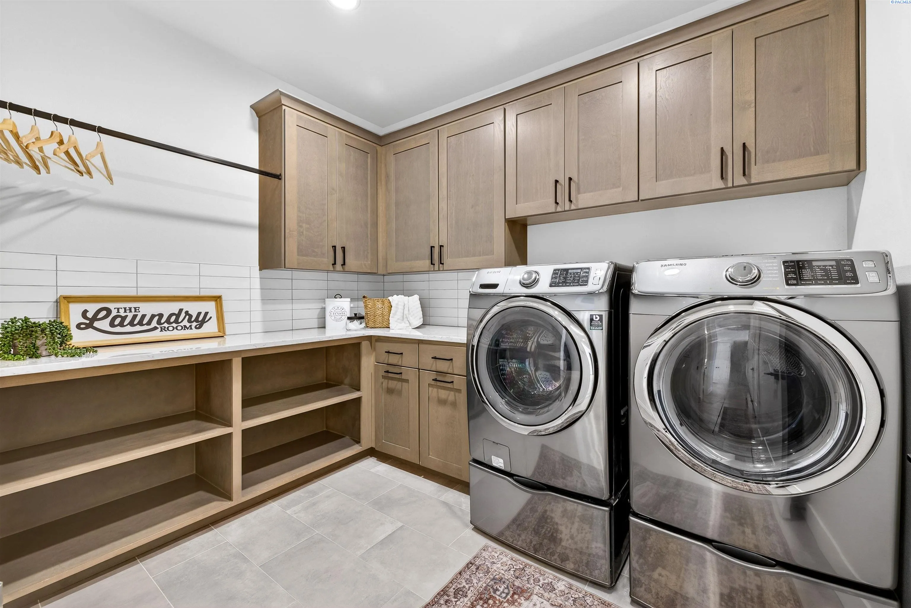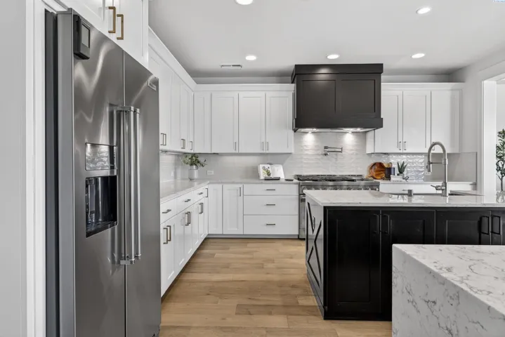 MLS# 290784 Parade of Homes™ Award Winner located in the prestigious Steeplechase neighborhood of SW Kennewick. This 2022-built single-level luxury home offers refined living on a fully fenced one-acre lot with sweeping skyline views. Designed for both everyday comfort and elevated entertaining, the home features a grand entry, 3 bedrooms, 2.5 bathrooms, office space, and a 4-car garage with integrated RV bay and pull-through driveway – ideal for RV owners, car enthusiasts, or those needing additional storage and flexibility. The striking stucco and stone exterior, expansive driveway, and manicured landscaping create impressive curb appeal, while inside soaring wood-beamed ceilings, a dramatic floor-to-ceiling fireplace, and expansive windows fill the open-concept living space with natural light. Large sliding glass doors extend seamlessly to a covered patio with outdoor fireplace, creating true indoor-outdoor living. The kitchen is thoughtfully designed with dual oversized islands for seamless hosting, quartz countertops with waterfall edge, gas range with pot filler, custom hood, double ovens, walk-in pantry, and extensive cabinetry, while a dedicated wine and beverage alcove with French glass doors, prep sink, and beverage cooler enhances entertaining. The private primary suite offers a spa-like retreat with an award-winning en-suite bath featuring a soaking tub, walk-in tiled shower, dual vanities, water closet, and spacious walk-in closet. Two additional bedrooms share a well-appointed ensuite, and the versatile office area provides space for remote work, fitness, study, or creative use. High-end window coverings, premium appliances, new gutters, and updated fascia add to the home’s quality and care. The expansive one-acre lot provides room to build a detached shop, add a custom pool, or simply enjoy the privacy and open space that is increasingly rare in Tri-Cities real estate. This is luxury single-story living with acreage, RV parking, modern design, and award-winning craftsmanship in SW Kennewick.