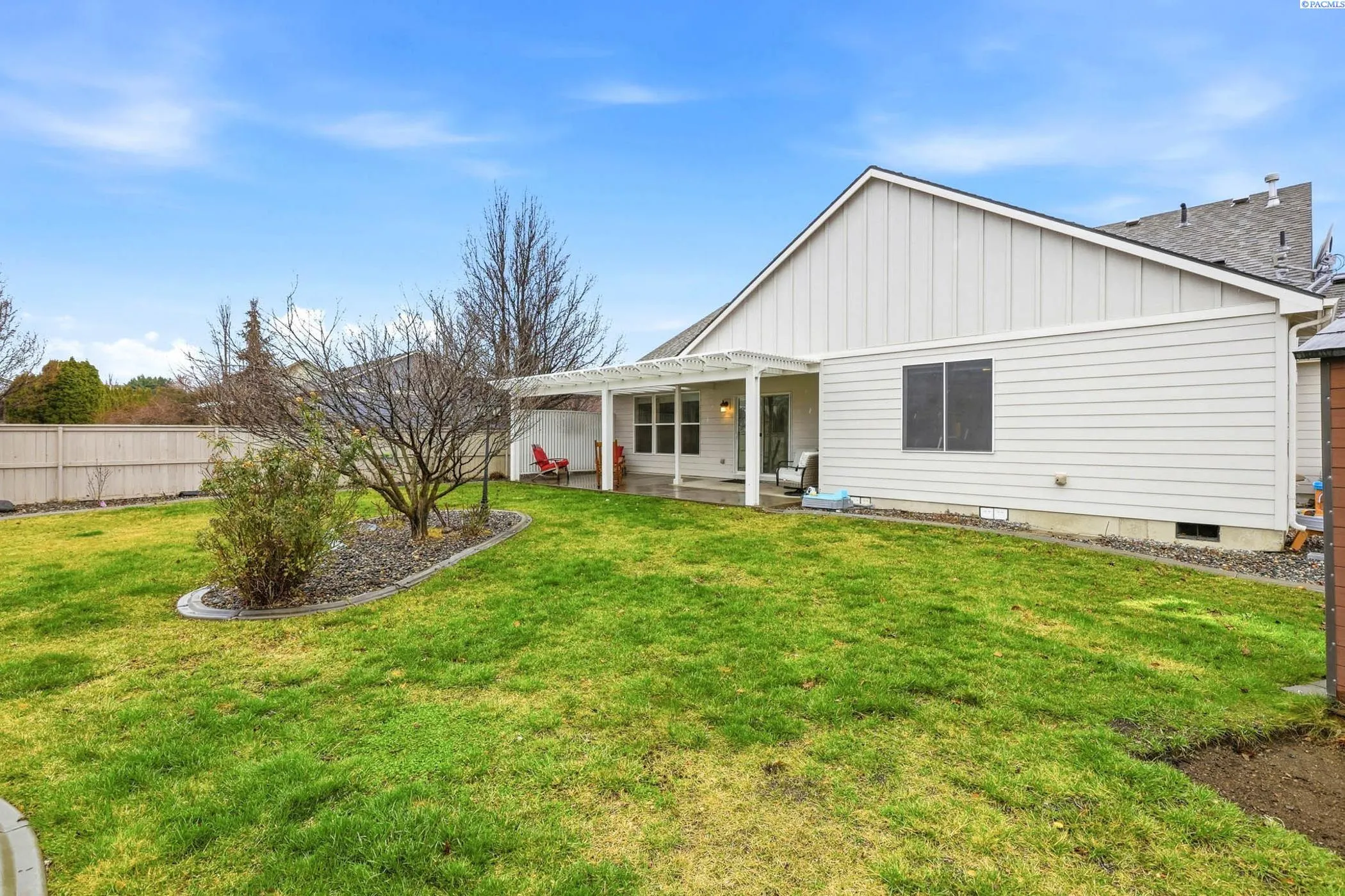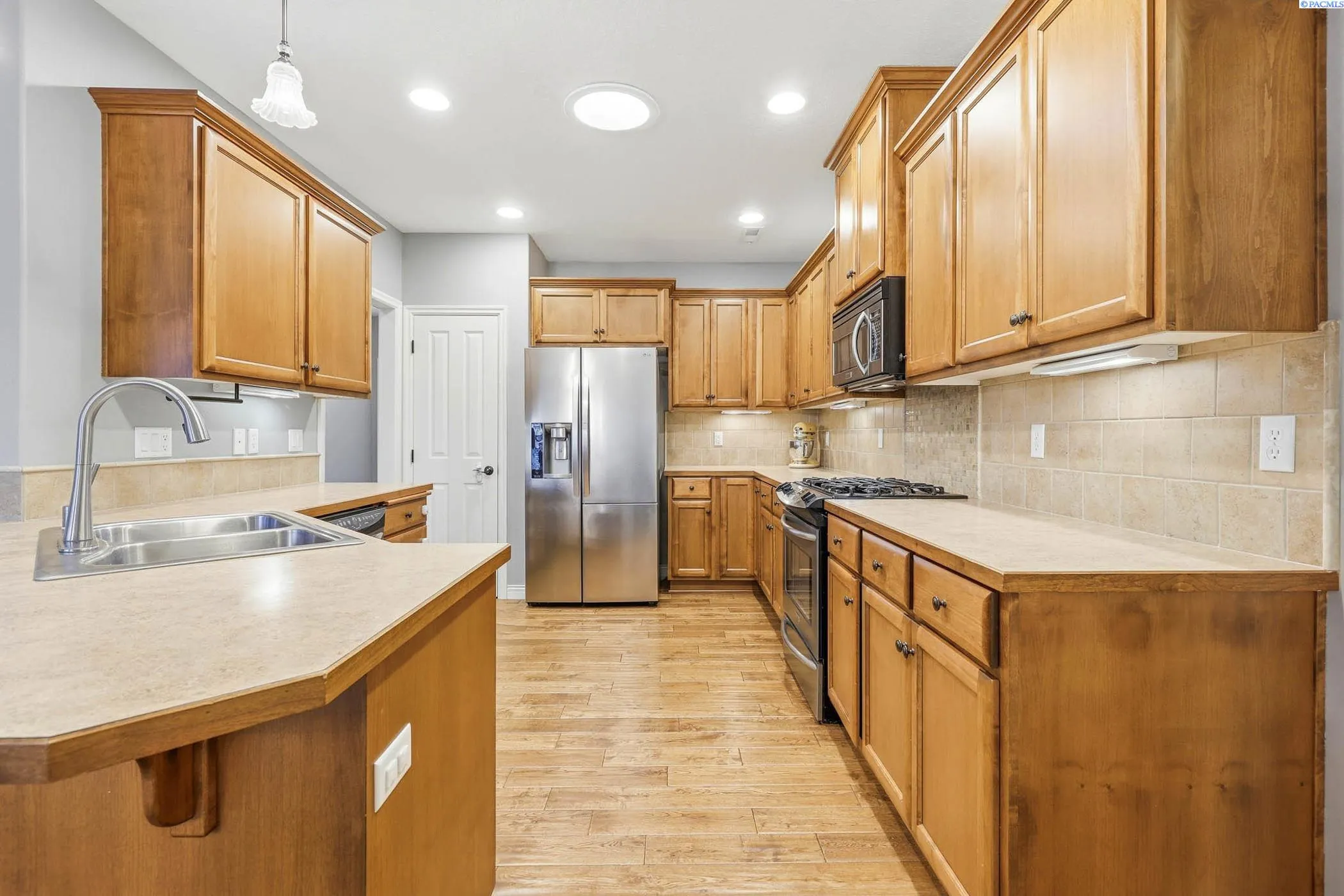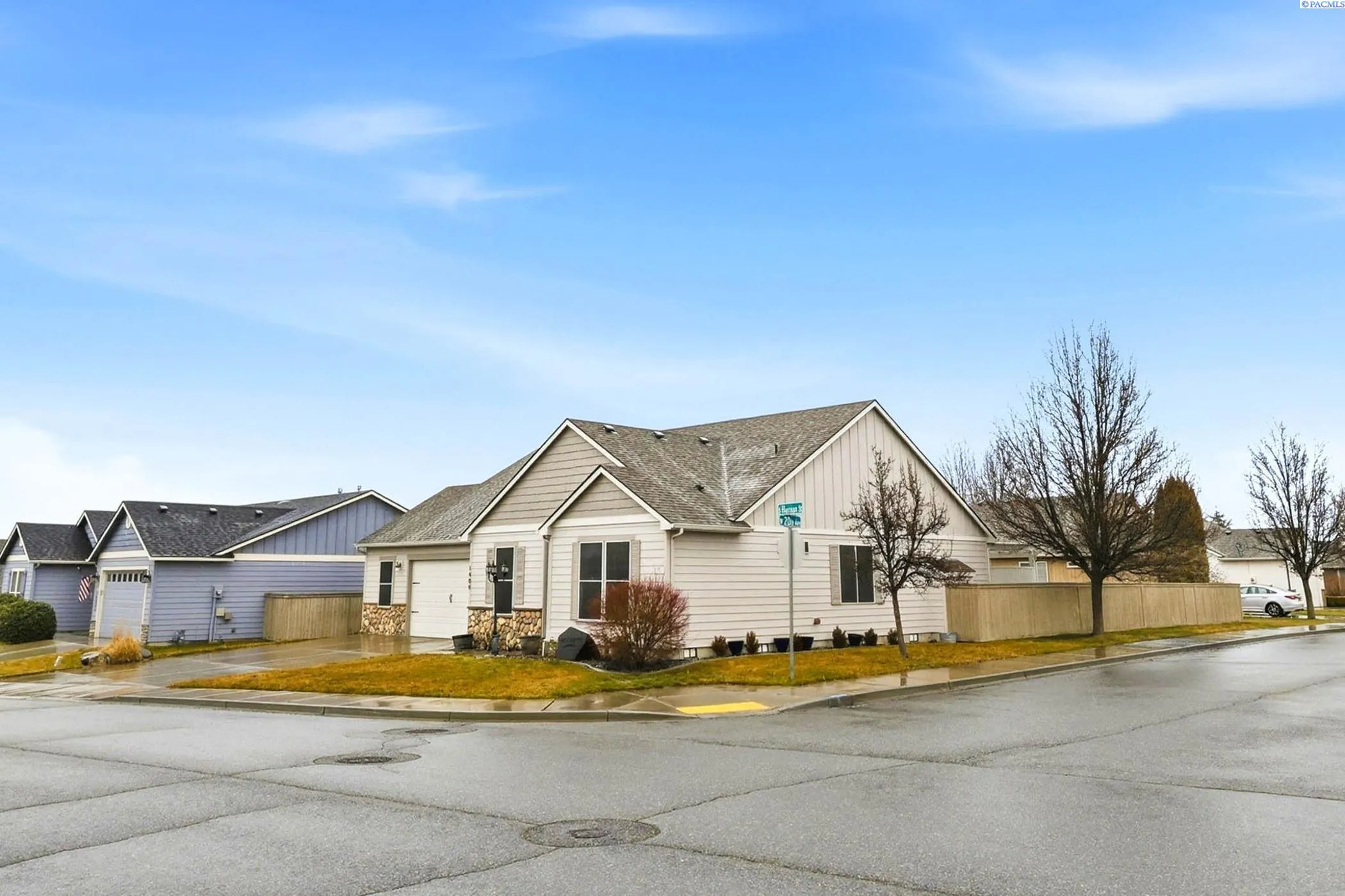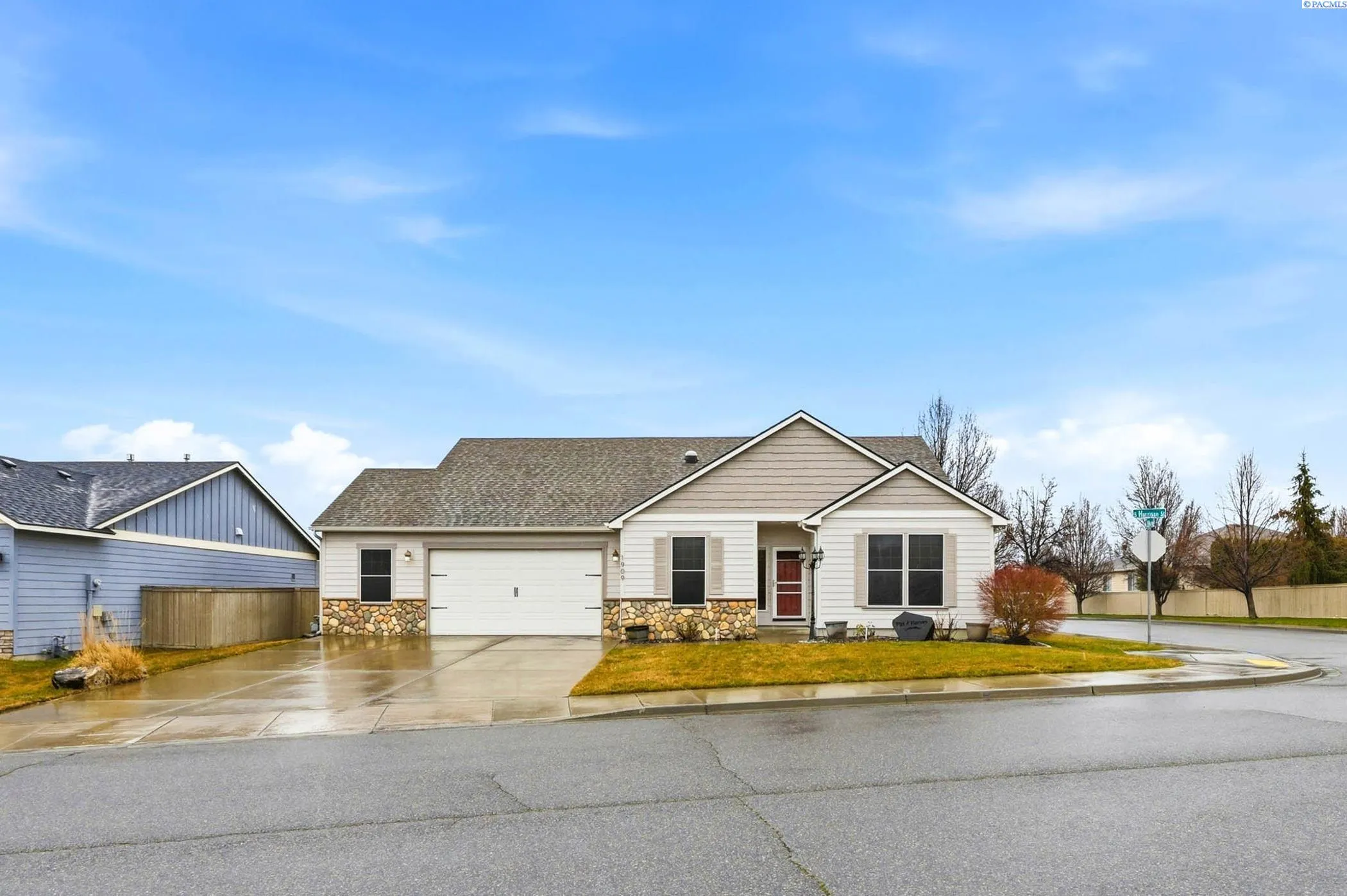 Located in the highly sought-after Creekstone community of Kennewick, this lovely one-level home offers 1822 SF with 3 bedrooms, 2 bathrooms and a versatile flex room. The open-concept great room features a custom mantel and flows seamlessly into the dining nook and kitchen. The kitchen includes a convenient breakfast bar, stainless steel appliances, abundant cabinetry, pantry and an additional storage closet for everyday organization. Hardwood flooring highlights the entry, hallway and breakfast nook, adding warmth and durability to high-traffic areas. Set on a .21 acre fully irrigated and fenced corner lot, the back yard is designed for year-round enjoyment with a covered patio ideal for gatherings and outdoor dining. The oversized 2-car garage includes an additional 7′ of width, providing extra space for storage, hobbies or larger vehicles. A new water heater was installed in 2025 for added efficiency and peace of mind. Creekstone residents enjoy neighborhood walking trails, parks and access to gated RV storage. Conveniently positioned in Kennewick near schools, shopping and dining, this property combines functional design, storage flexibility and outdoor space in a well-established community. Contact your favorite realtor to schedule a private tour soon!
