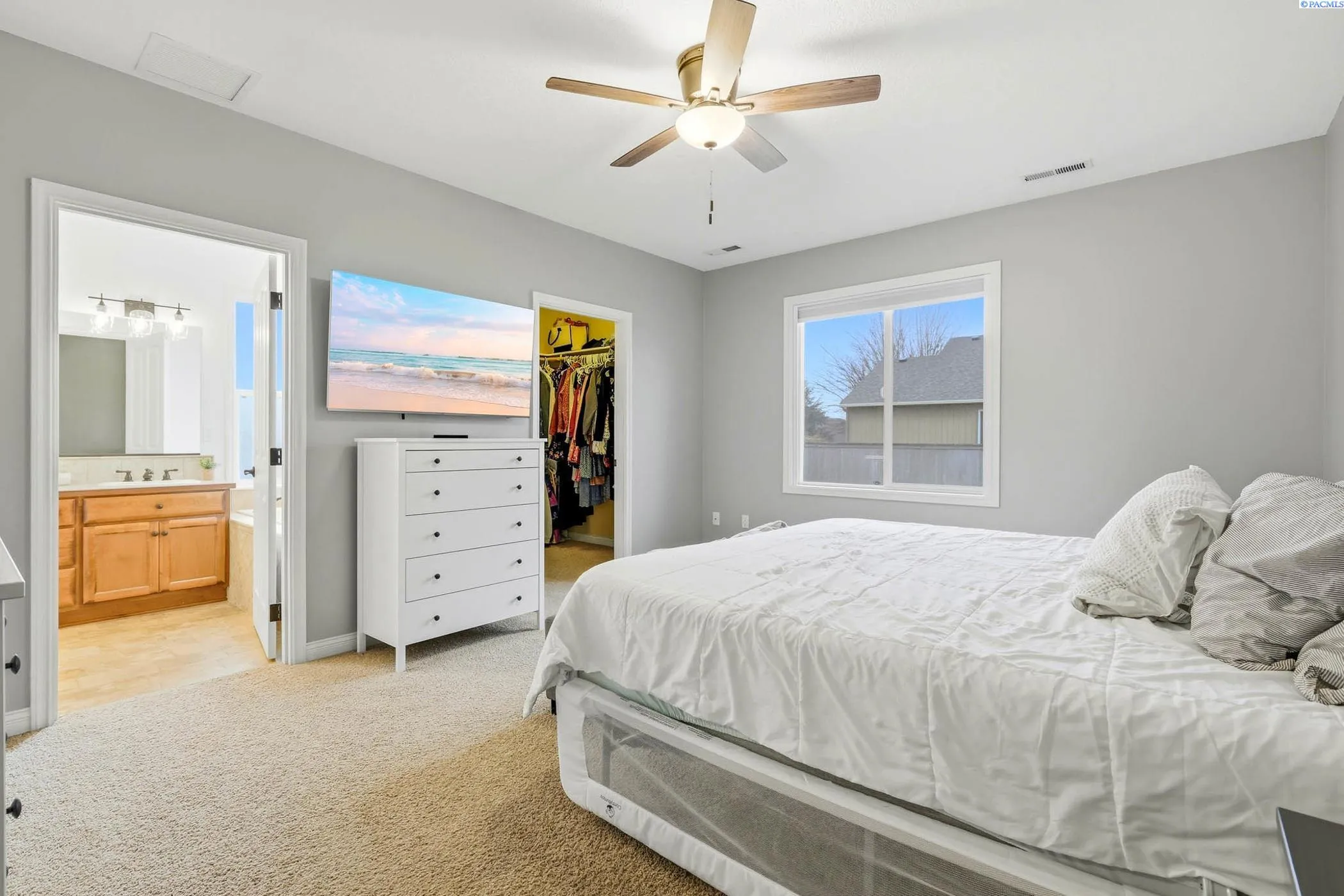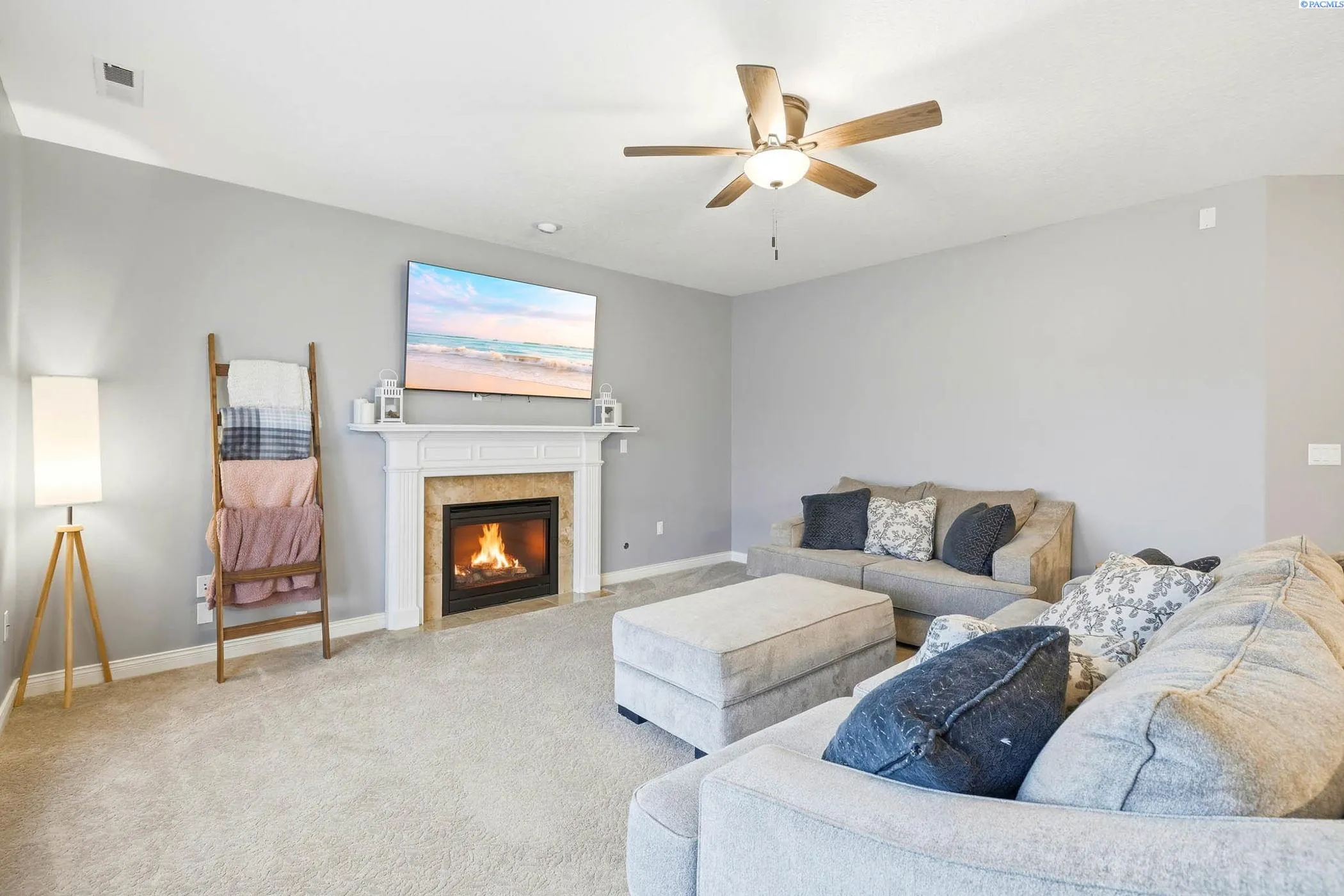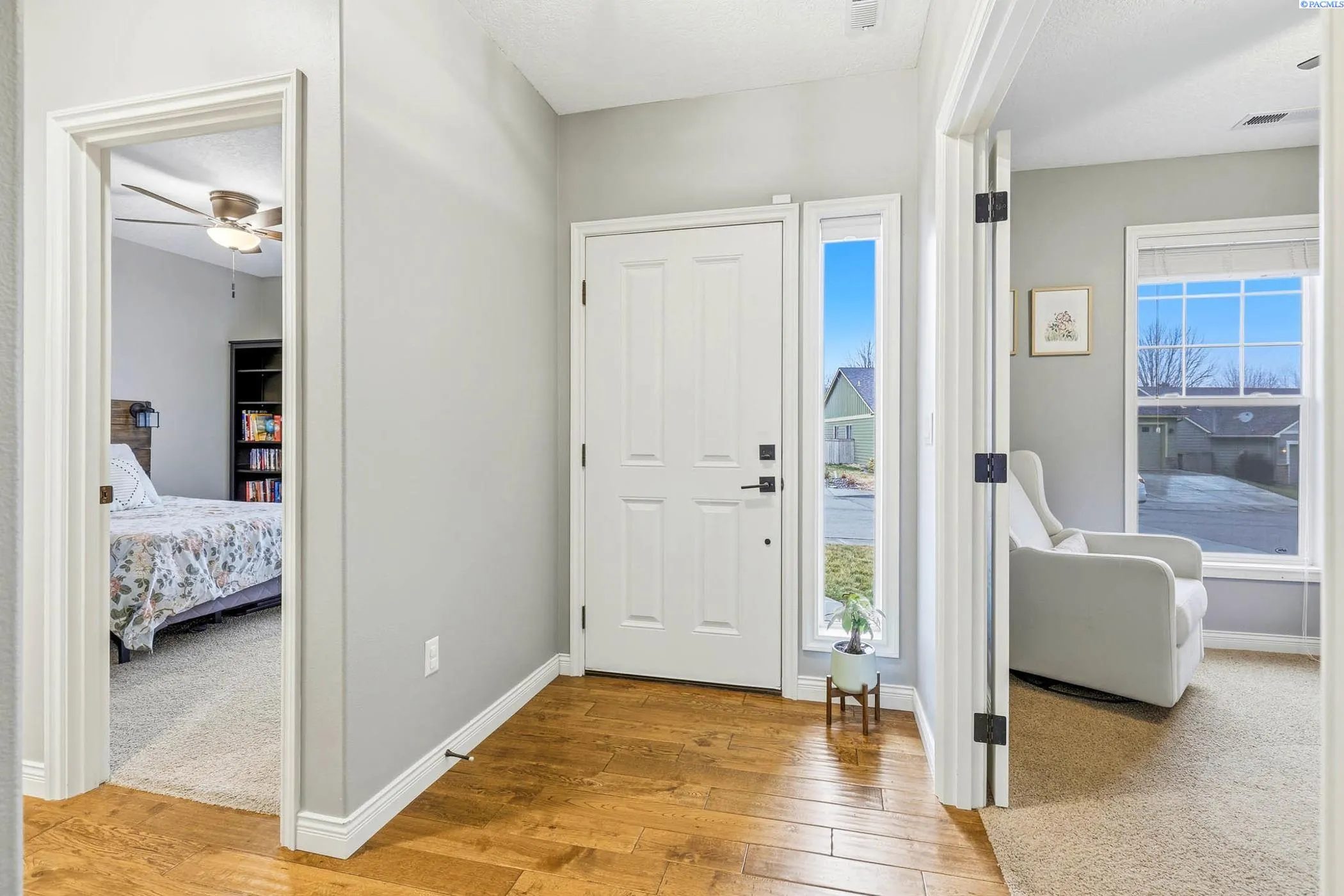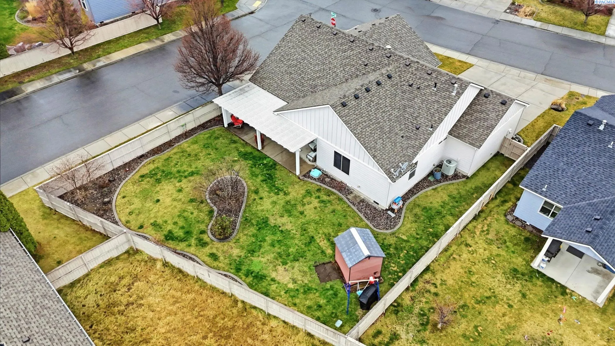 Located in the highly sought-after Creekstone community of Kennewick, this lovely one-level home offers 1822 SF with 3 bedrooms, 2 bathrooms and a versatile flex room. The open-concept great room features a custom mantel and flows seamlessly into the dining nook and kitchen. The kitchen includes a convenient breakfast bar, stainless steel appliances, abundant cabinetry, pantry and an additional storage closet for everyday organization. Hardwood flooring highlights the entry, hallway and breakfast nook, adding warmth and durability to high-traffic areas. Set on a .21 acre fully irrigated and fenced corner lot, the back yard is designed for year-round enjoyment with a covered patio ideal for gatherings and outdoor dining. The oversized 2-car garage includes an additional 7′ of width, providing extra space for storage, hobbies or larger vehicles. A new water heater was installed in 2025 for added efficiency and peace of mind. Creekstone residents enjoy neighborhood walking trails, parks and access to gated RV storage. Conveniently positioned in Kennewick near schools, shopping and dining, this property combines functional design, storage flexibility and outdoor space in a well-established community. Contact your favorite realtor to schedule a private tour soon!
