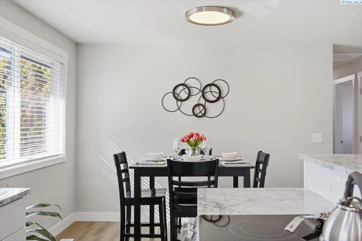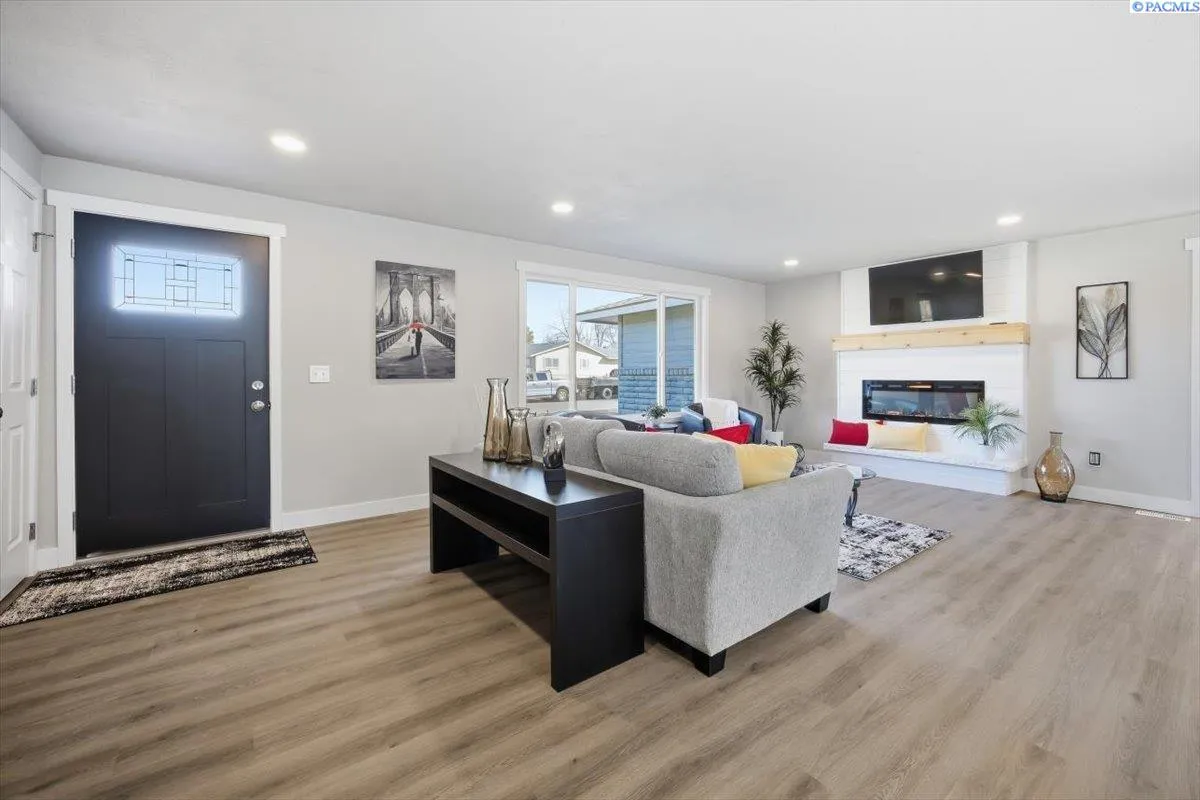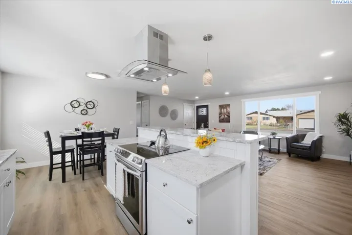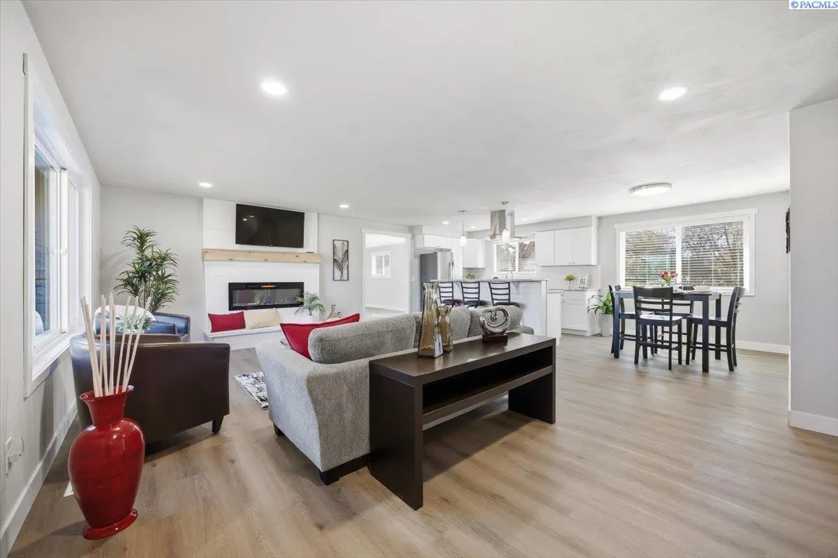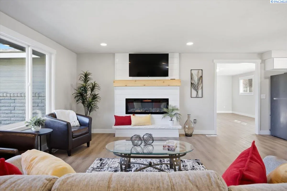 Located on a quiet street near Elliott Lake in Kennewick, this fully remodeled single-story home offers 3 bedrooms, 2 bathrooms, and a well-designed floor plan featuring both a living room and a separate family room. Renovated throughout, the home showcases new flooring, fresh interior and exterior paint, and completely remodeled bathrooms with updated fixtures and modern finishes. The kitchen has been beautifully updated with brand-new appliances, granite countertops creating a clean, modern space ready for everyday living. Major system upgrades provide peace of mind, including a new HVAC system, and new water heater. Outside, you’ll find new underground sprinklers, fresh landscaping, and open RV parking with plenty of space for all your extra toys. With a two-car garage and quality updates in every room, this home is truly turnkey and move-in ready. MLS#290795