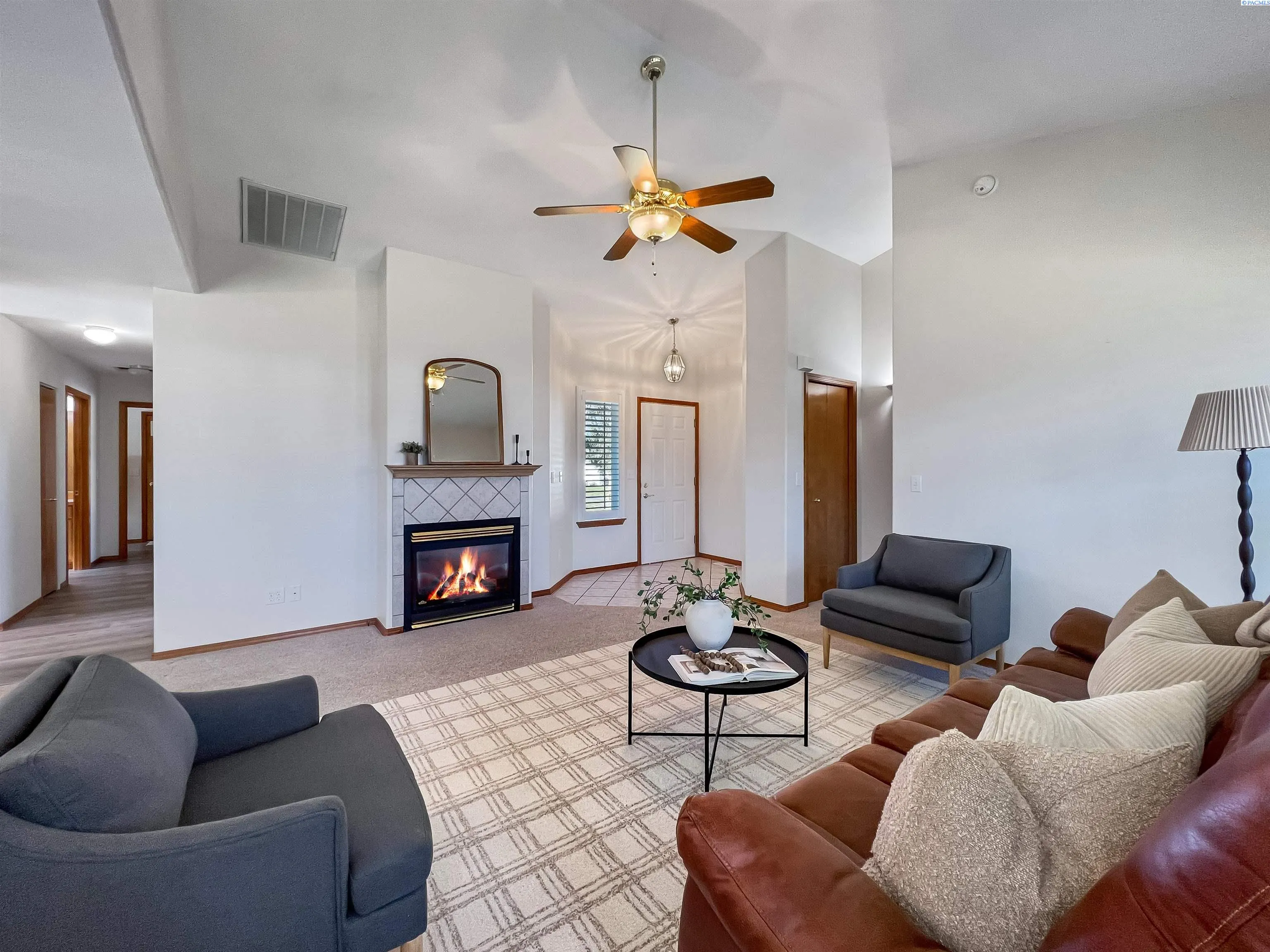 MLS# 290798 Beautifully maintained 1,421 sq ft single-story patio home in The Village at Canyon Lakes, a 55+ community. This thoughtfully designed 2-bedroom, 2-bath residence includes a dedicated office and a 2-car garage. Vaulted ceilings and skylights fill the home with natural light, complemented by a warm gas fireplace in the main living area. HOA dues cover exterior maintenance and landscaping, offering easy living, plus access to The Manor at Canyon Lakes. Seller is a licensed agent.