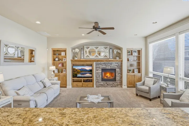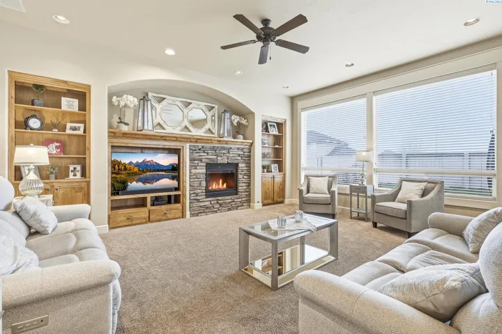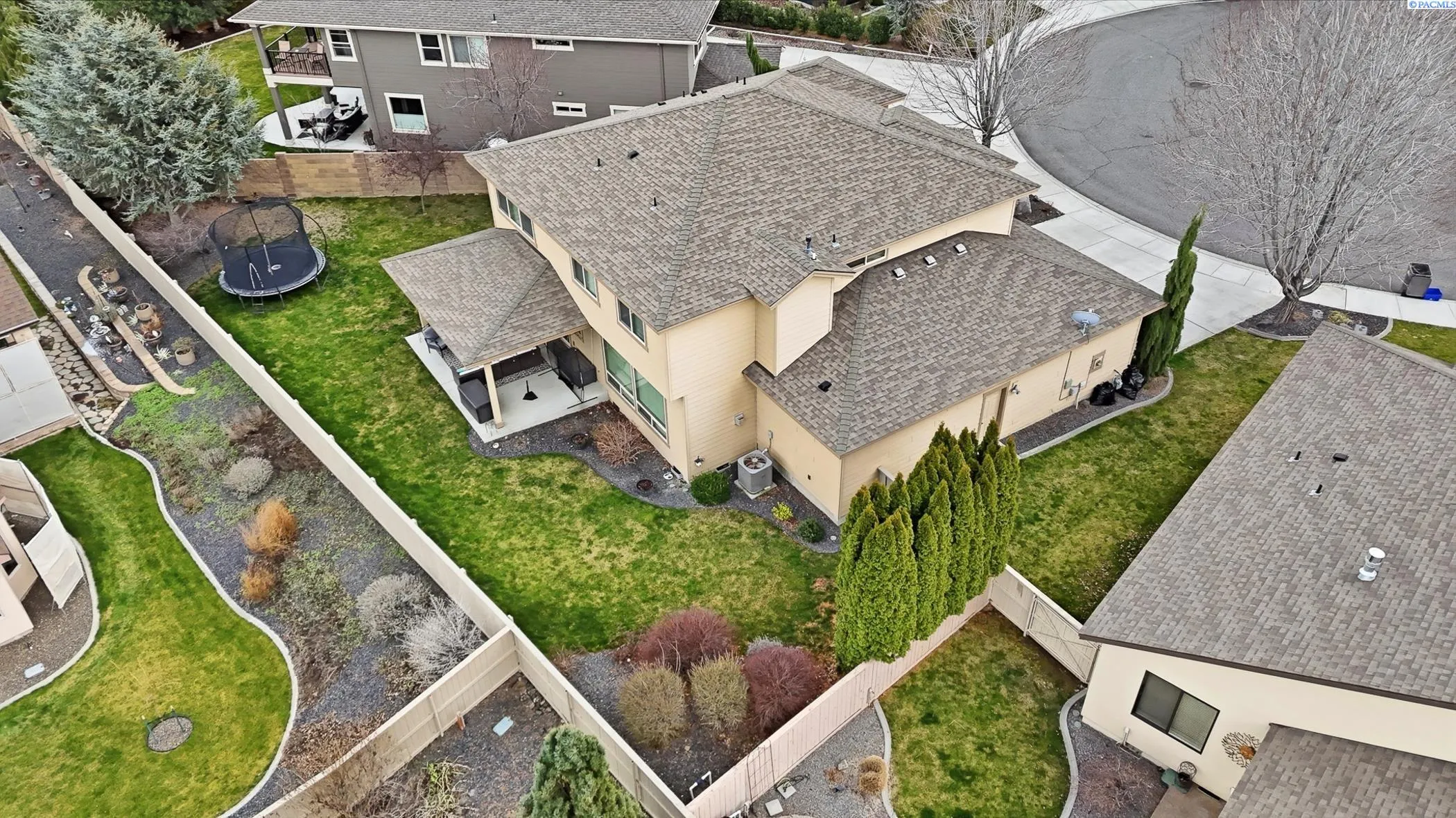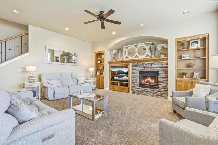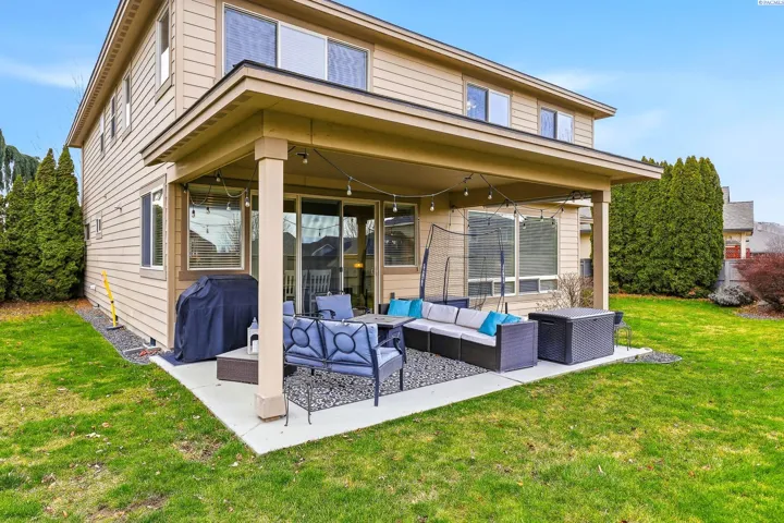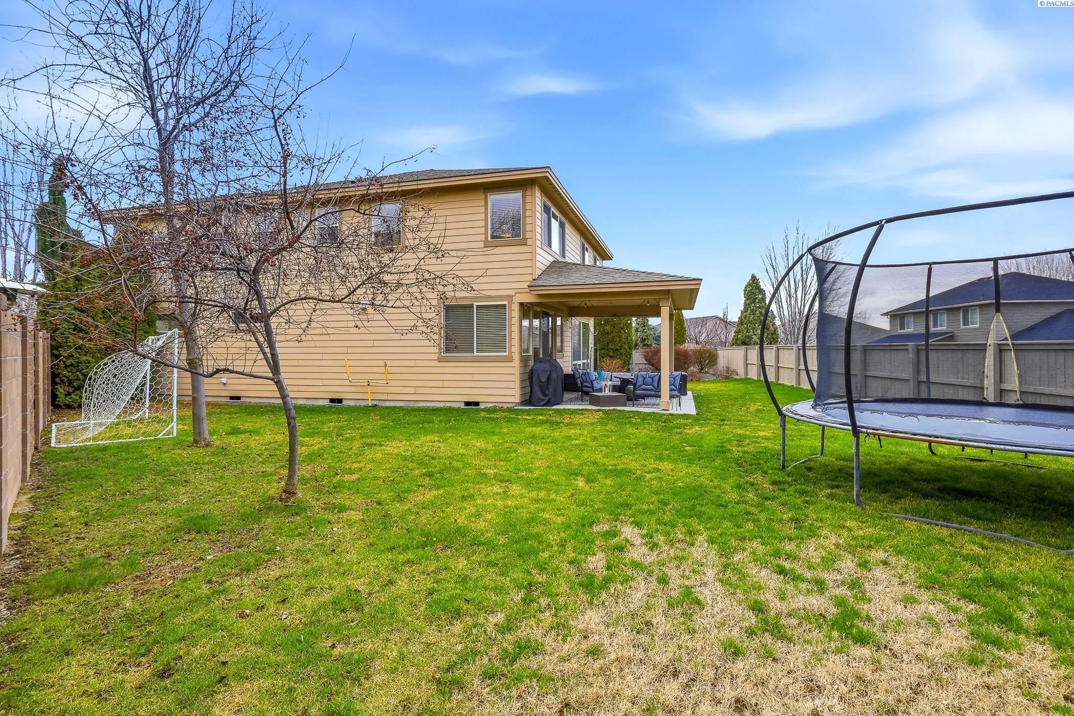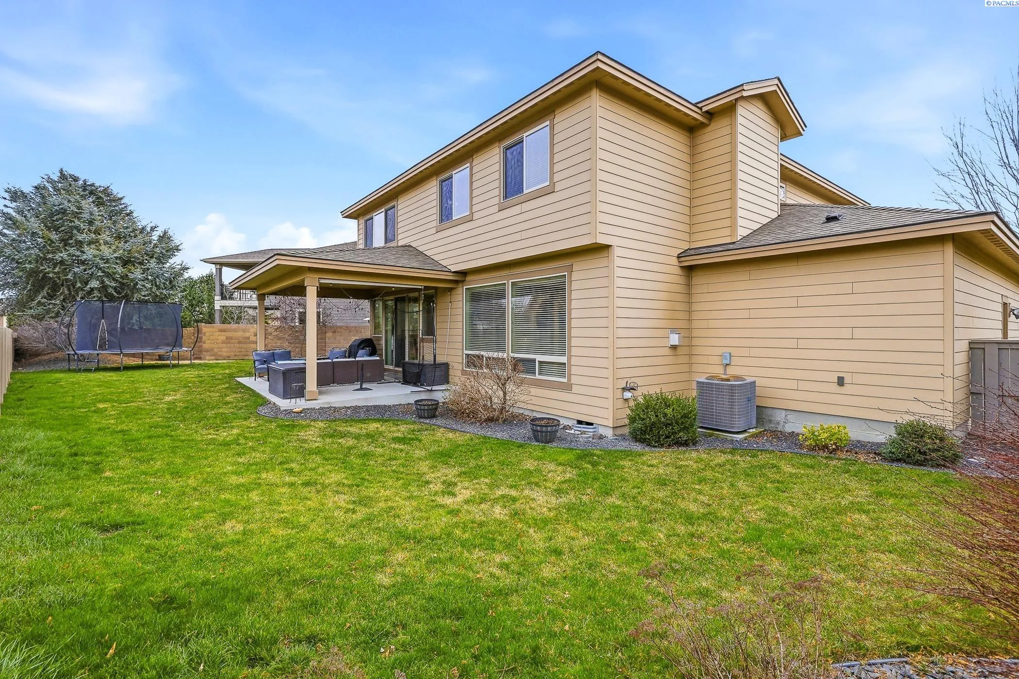 Spacious two-story home located in desirable West Kennewick’s Creekstone neighborhood that features community parks and lots of walking trails. Offering 2,697 sq ft, this 4-bedroom, 3-bath residence features a functional and versatile floor plan designed for comfortable living and entertaining. The main level showcases an open-concept layout with a generous living area that flows seamlessly into the kitchen and dining space. The kitchen offers ample cabinetry and counter space, ideal for everyday living and hosting gatherings with granite countertops and a gas range for the chef. A den/bedroom on the main floor provides flexible space for remote work, a playroom, or guest room. The master bedroom is well appointed with coffered ceilings, a large master bath with spacious closet and a walk-in tile shower plus a soaking tub. There are two more bedrooms upstairs with a bathroom to share plus a large bonus room! The home is equipped with gas heating and heat pump cooling for year-round comfort. Outside, the fully fenced backyard includes a covered patio to enjoy summer evenings on and a generous sized yard for activities. A rare 4-car attached tandem garage delivers exceptional storage, parking, or hobby space. Conveniently located near schools, parks, shopping, and commuter routes, this home offers both comfort and practicality in a sought-after area of West Kennewick.