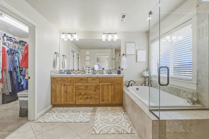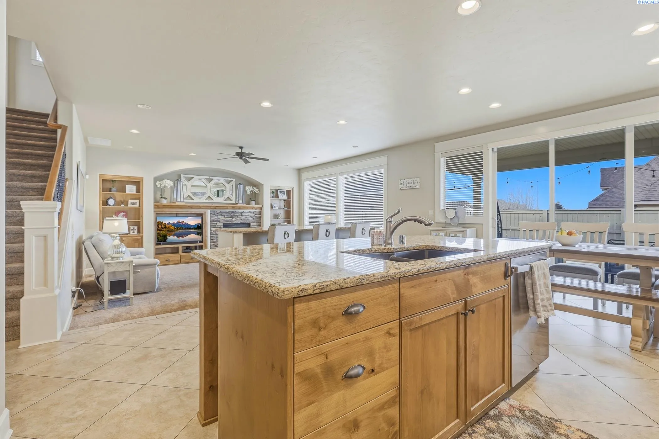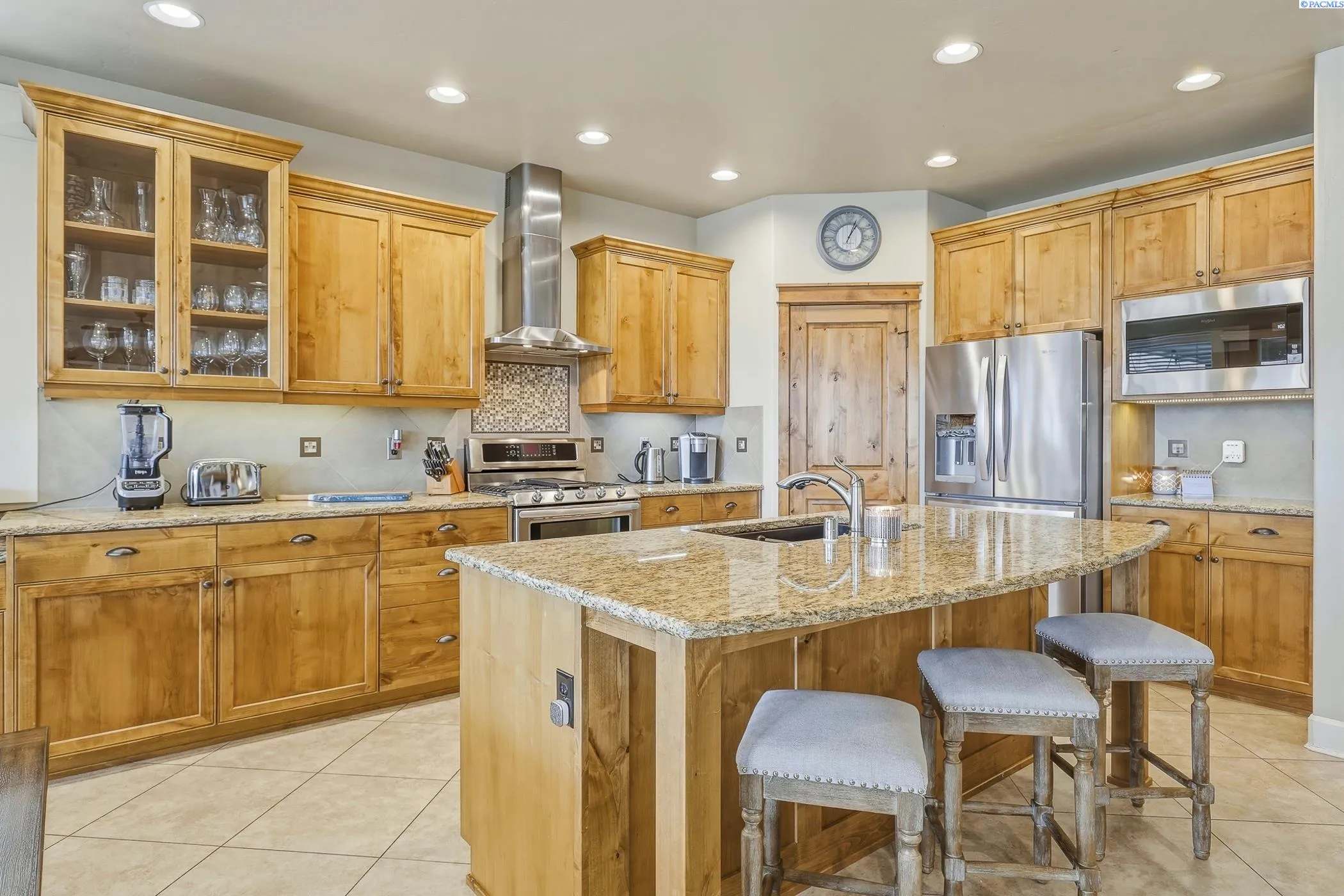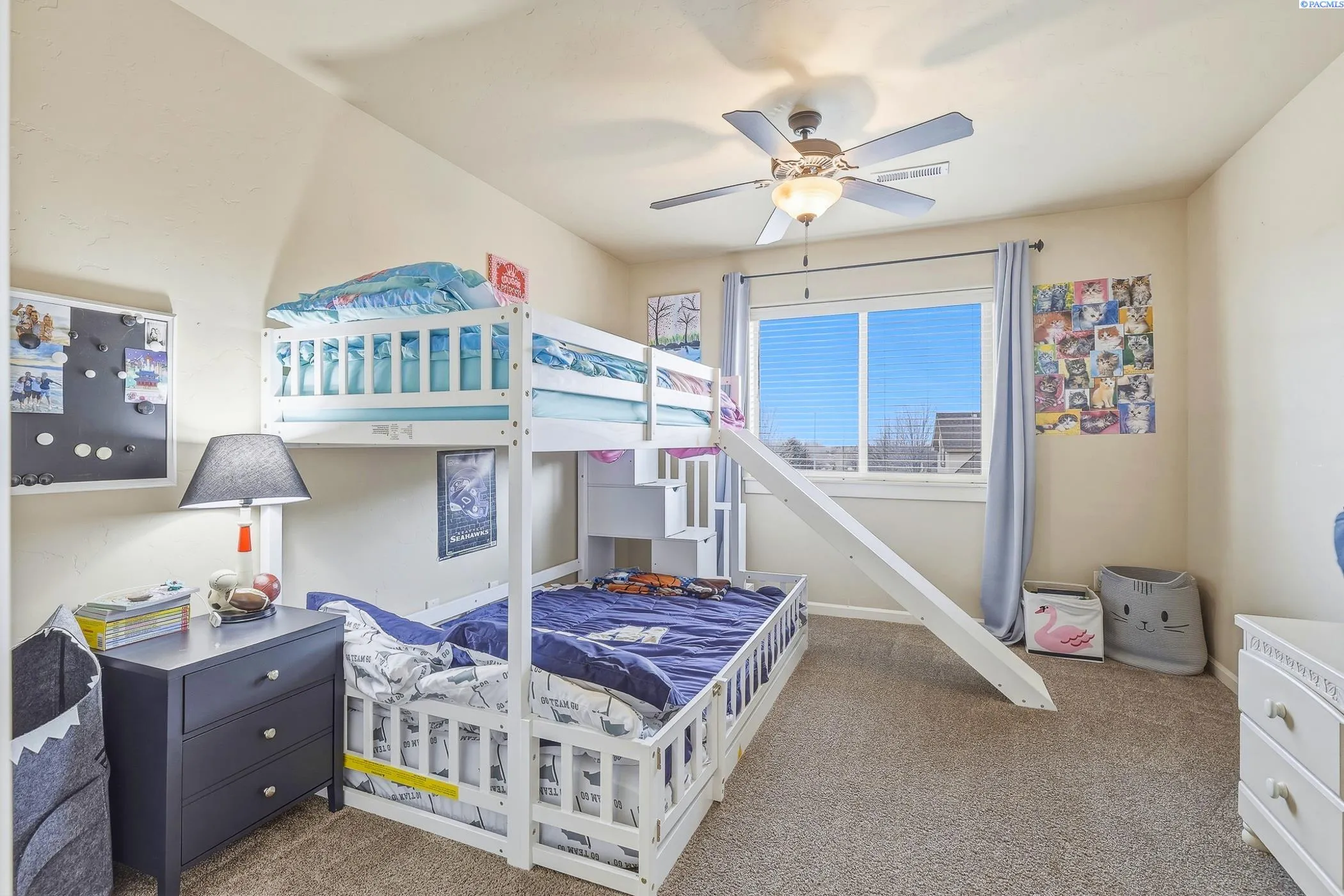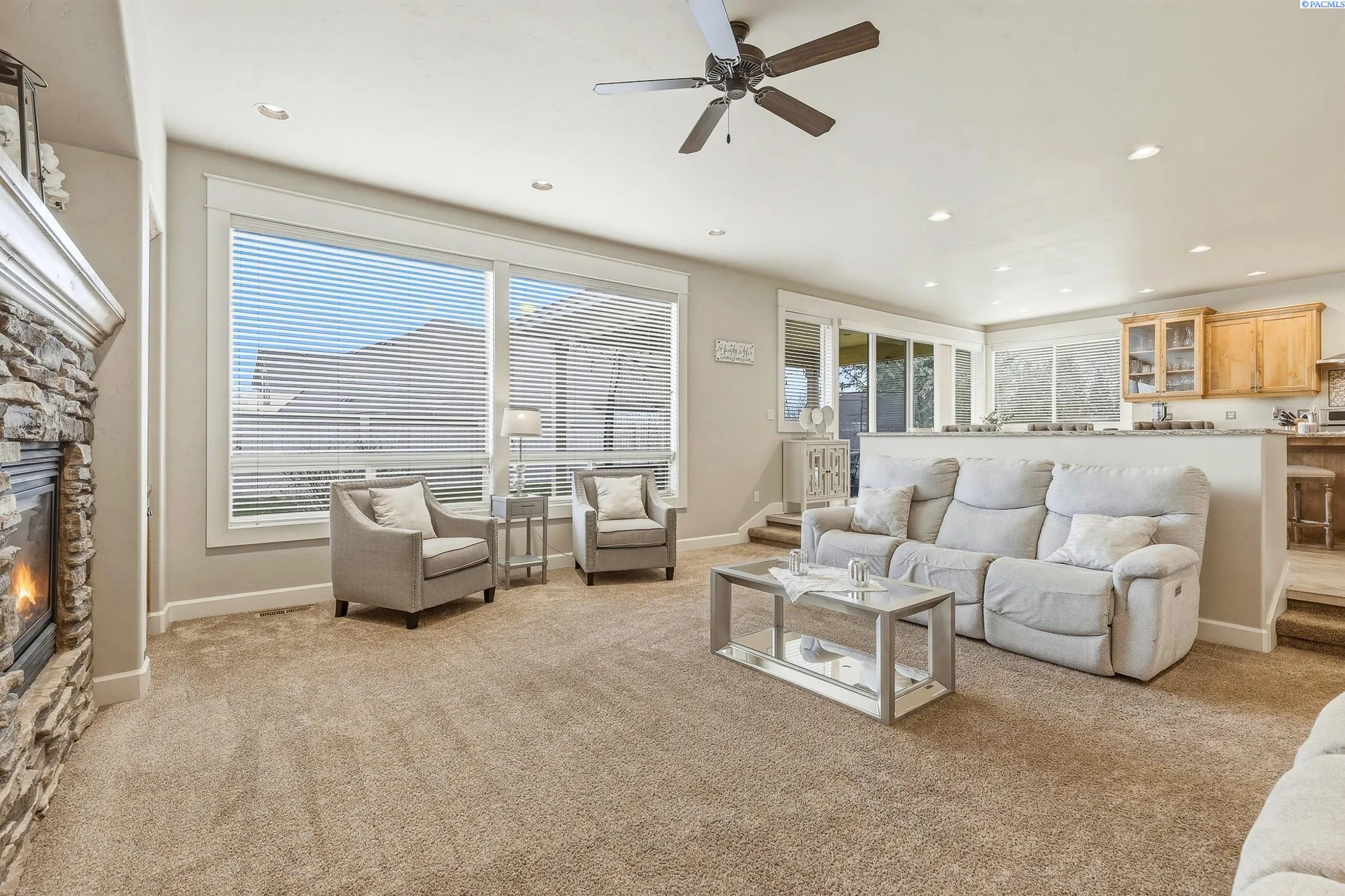Spacious two-story home located in desirable West Kennewick’s Creekstone neighborhood that features community parks and lots of walking trails. Offering 2,697 sq ft, this 4-bedroom, 3-bath residence features a functional and versatile floor plan designed for comfortable living and entertaining. The main level showcases an open-concept layout with a generous living area that flows seamlessly into the kitchen and dining space. The kitchen offers ample cabinetry and counter space, ideal for everyday living and hosting gatherings with granite countertops and a gas range for the chef. A den/bedroom on the main floor provides flexible space for remote work, a playroom, or guest room. The master bedroom is well appointed with coffered ceilings, a large master bath with spacious closet and a walk-in tile shower plus a soaking tub. There are two more bedrooms upstairs with a bathroom to share plus a large bonus room! The home is equipped with gas heating and heat pump cooling for year-round comfort. Outside, the fully fenced backyard includes a covered patio to enjoy summer evenings on and a generous sized yard for activities. A rare 4-car attached tandem garage delivers exceptional storage, parking, or hobby space. Conveniently located near schools, parks, shopping, and commuter routes, this home offers both comfort and practicality in a sought-after area of West Kennewick.