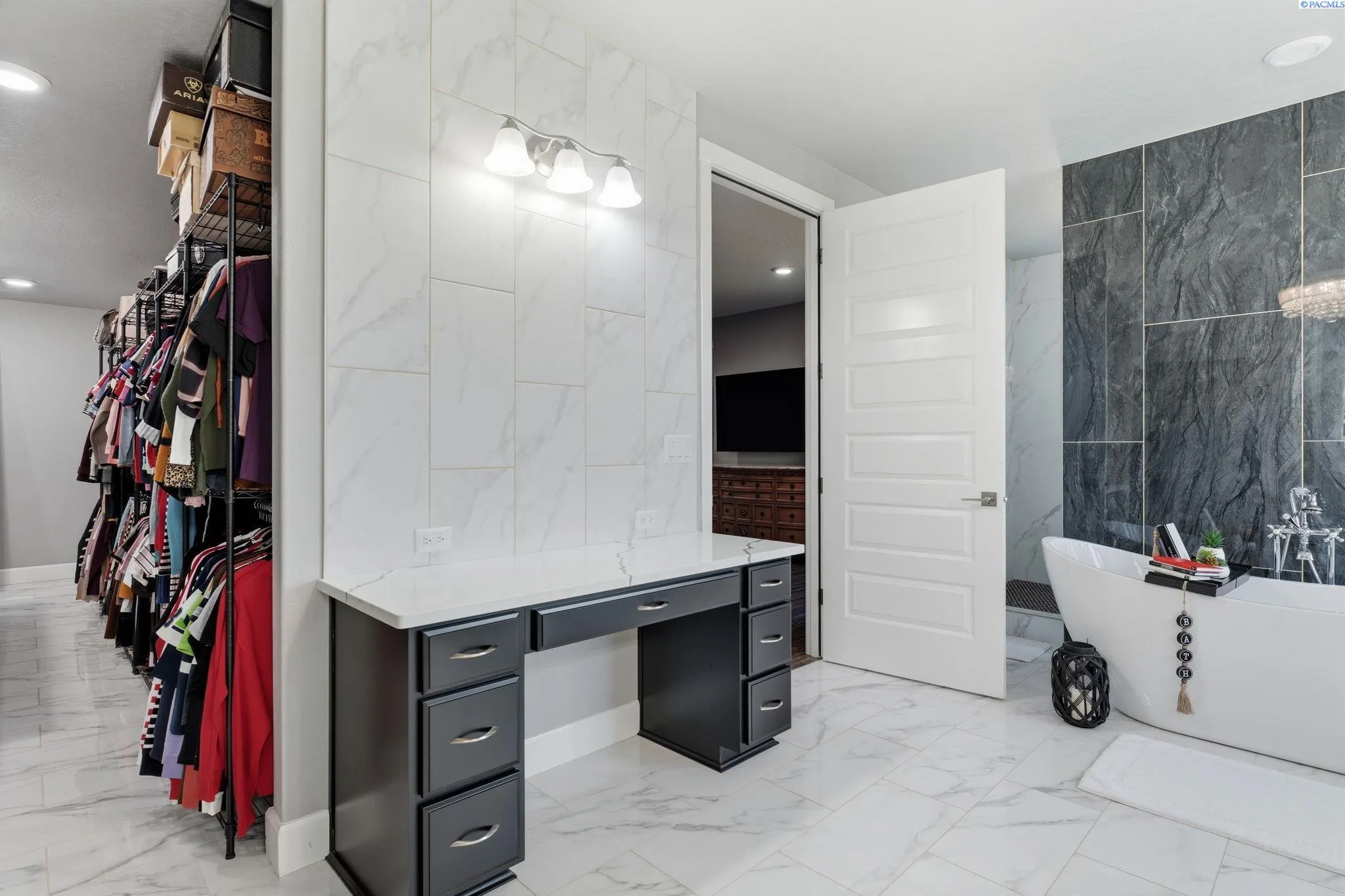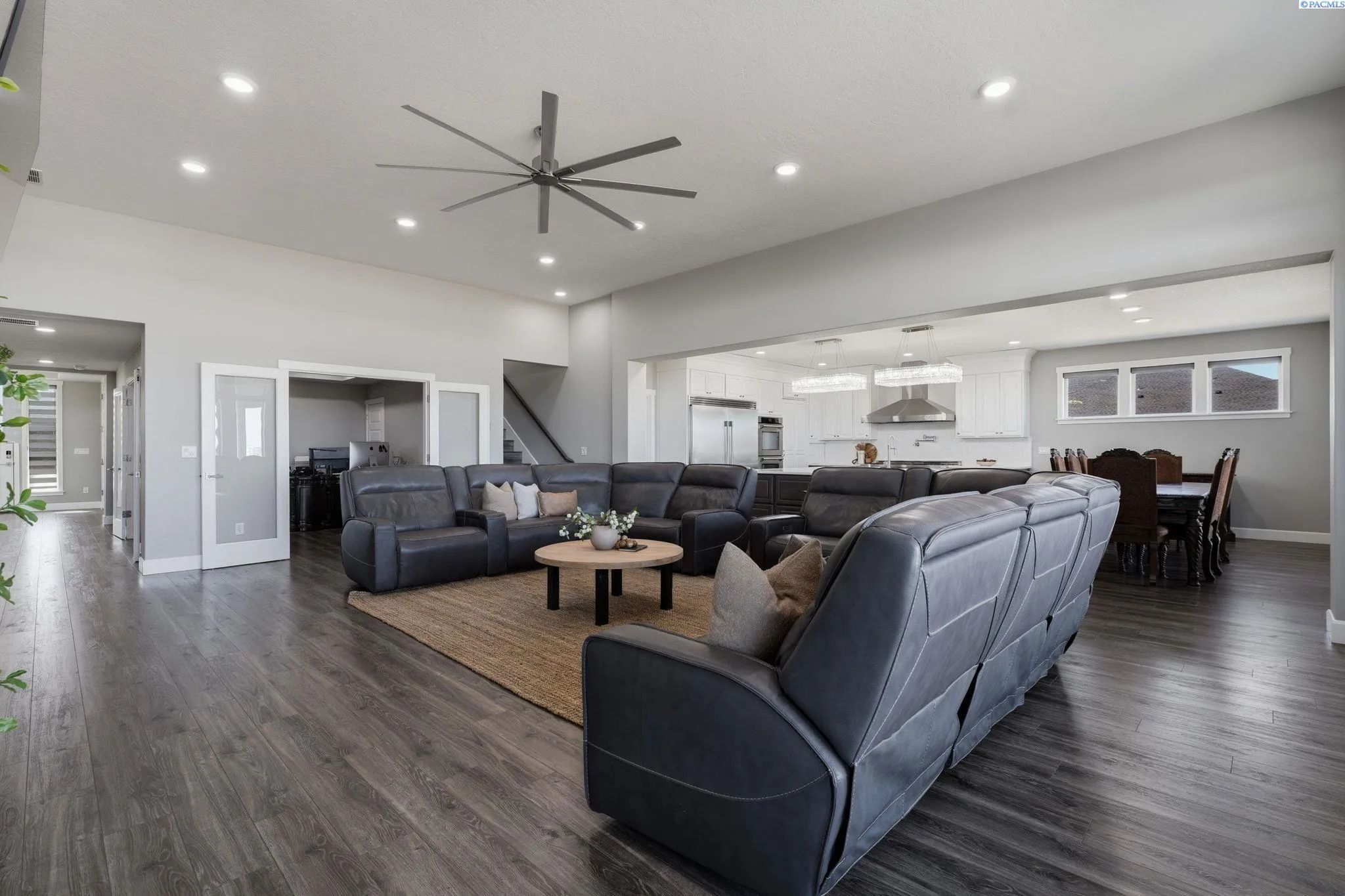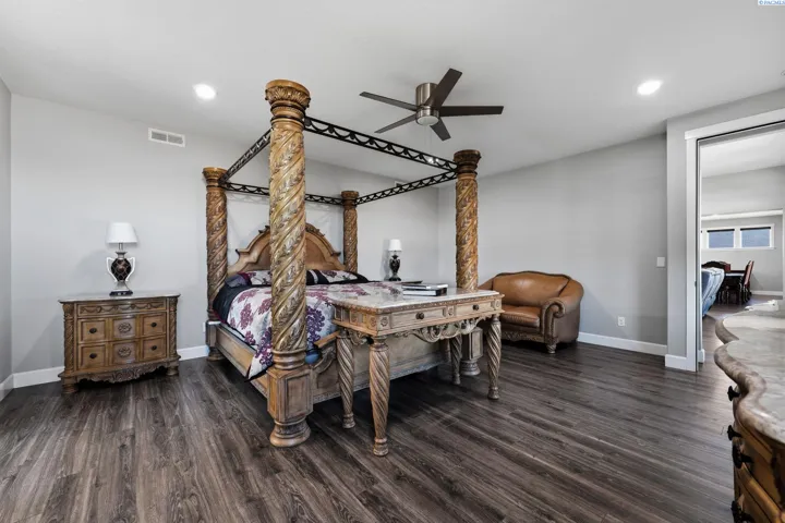 MLS# 290812 Situated on just over one acre in Kennewick, this highly upgraded home offers space, elegance, and endless potential. From the moment you enter, you’re welcomed by a defined entryway leading to raised ceilings and an expansive living room filled with natural light. The chef’s kitchen is the heart of the home, featuring an oversized island with storage drawers, custom cabinetry, and a professional-grade 10-burner cooktop, along with built-in ovens and additional wall ovens. A hidden butler’s pantry offers abundant storage and display shelving, perfect for entertaining, while stunning crystal chandeliers elevate the kitchen space, large enough to accommodate gatherings of any size. The thoughtfully designed floor plan includes two spacious bedrooms with walk-in closets connected by a Jack-and-Jill bathroom featuring dual vanities, exceptional storage, and a hotel-style layout with a separate shower and private throne room. An additional full guest bath and a versatile office with dual entry and closet provide flexibility for work-from-home needs or a fourth bedroom option. The primary suite is the showstopper, offering a true retreat. The spa-inspired primary bath features dual vanities, a dedicated makeup station, a walk-through shower with dual entries, a jetted soaking tub, and an expansive walk-in closet with luxurious finishes. Additional features include a bonus room upstairs that is plumbed and sink-ready, offering excellent potential for a media room, guest suite, or hobby space. The home is wired for surround sound in the living room, kitchen, primary bathroom, and the impressive 40-foot covered back patio, as well as pre-wired for security cameras around the exterior. Outside, you have block-fencing and ready for your vision, this one is a blank slate! Ideal for a future shop, pool, or custom outdoor oasis. Completing the home is a large three-car garage, water softener, and a clean, modern stucco exterior. A rare blend of luxury, functionality, and opportunity, this property is truly built to impress.
