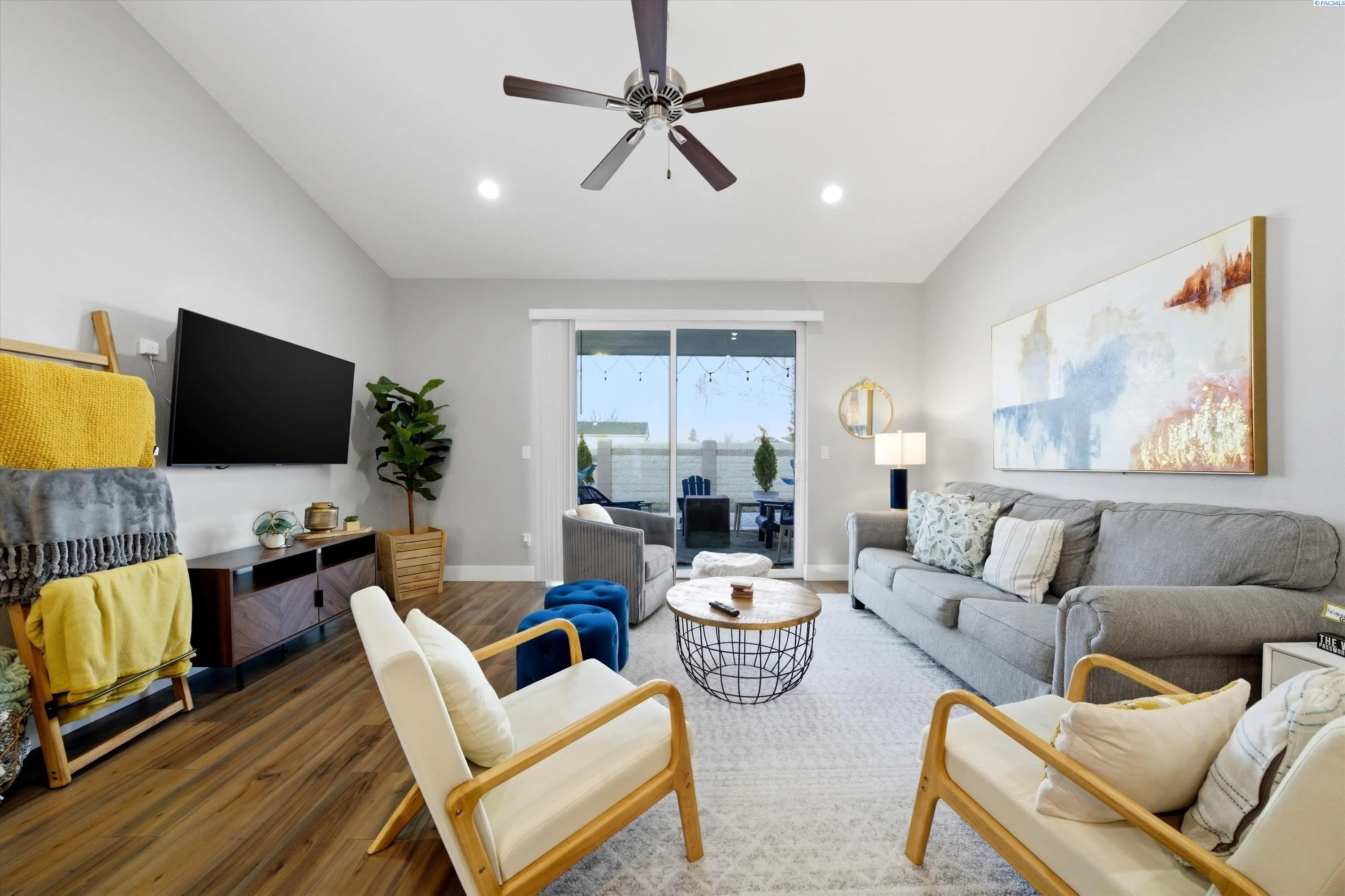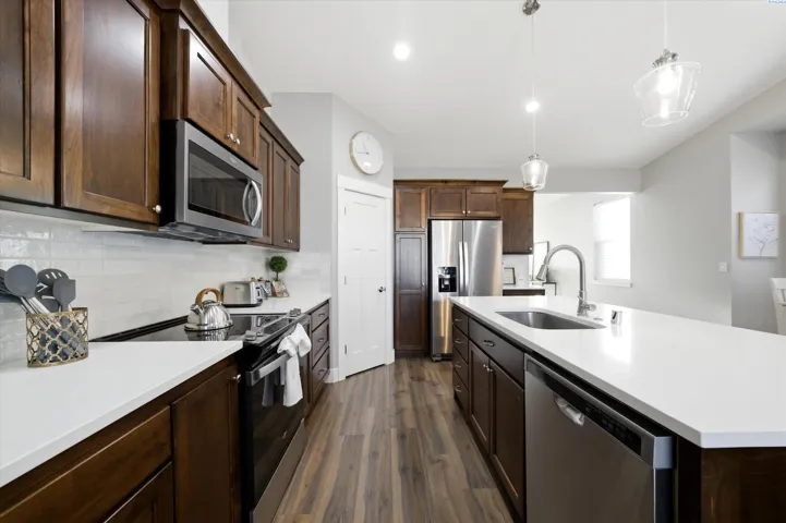Welcome to this centrally located townhome in the heart of Prosser’s Wine Country! Offering over 1,200 square feet of well-designed living space, this newer construction home features 2 bedrooms and 2 full bathrooms with a functional, open-concept layout. Conveniently located just minutes from I-82 and Exit 80, this property provides easy access for commuting while keeping you close to Prosser’s renowned wineries, local dining, and weekend attractions. The interior showcases a stylish modern farmhouse aesthetic with updated finishes throughout. The kitchen is equipped with stainless steel appliances, including an oversized refrigerator and built-in microwave, plus ample cabinetry and prep space. The primary suite includes a private bath and an adjacent laundry area with washer and dryer hookups for added convenience. Additional highlights include spacious bedrooms, contemporary fixtures, and a comfortable living area ideal for relaxing or entertaining.