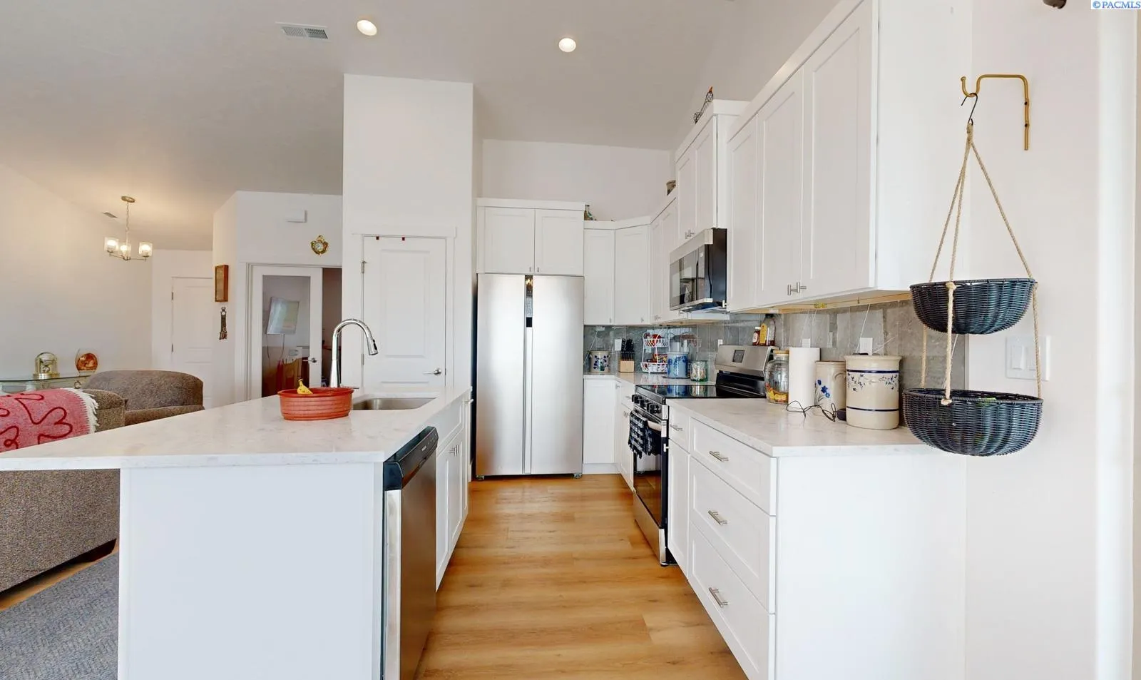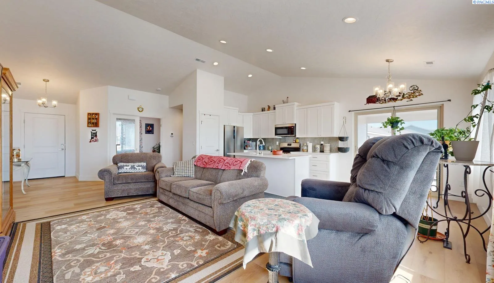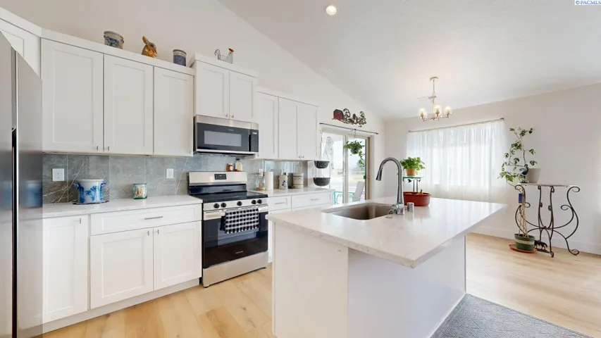 MLS# 290861 MLS# 285104 Lender credit opportunities and/or down payment assistance available! Welcome to this bright and inviting 3 BR, 2 BA rambler in the heart of Grandview! Step inside to an open floor plan with vaulted ceilings and hard surface flooring that flows through the main living spaces—perfect for everyday living or entertaining guests. The kitchen is both functional and stylish, offering plenty of cabinet space, stainless steel appliances, a pantry, and a breakfast bar that opens to the dining area. Just off the kitchen, step out to the covered patio for easy indoor-outdoor living. French doors lead to a versatile den—ideal for a home office, playroom, or cozy reading nook. The laundry room includes garage access for added convenience. The primary suite features a spacious 3/4 bath and walk-in closet, while two additional bedrooms and a full bath are tucked away on the opposite side of the home for added privacy. Located close to schools and everyday amenities, this home is move-in ready with a layout that fits your lifestyle.