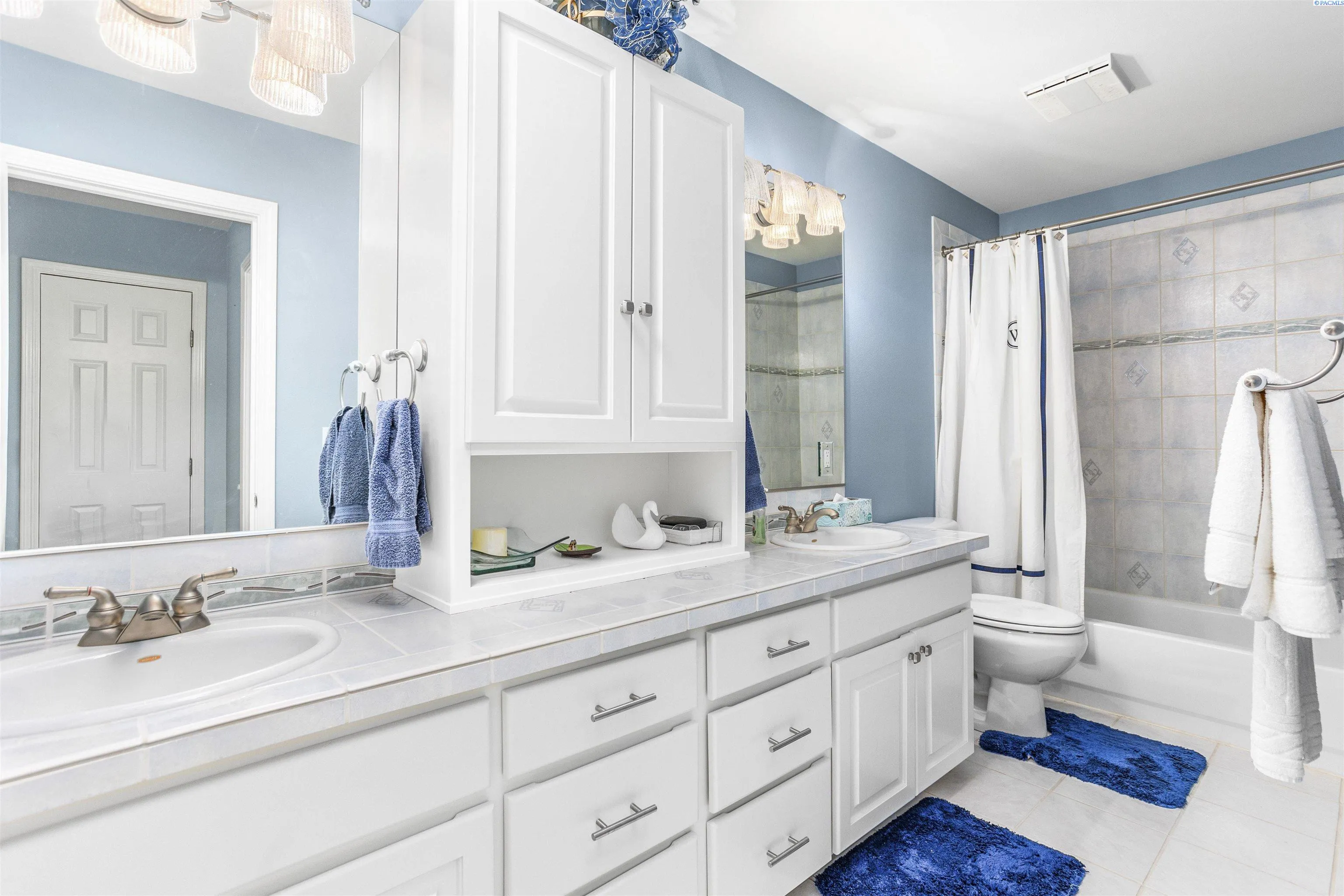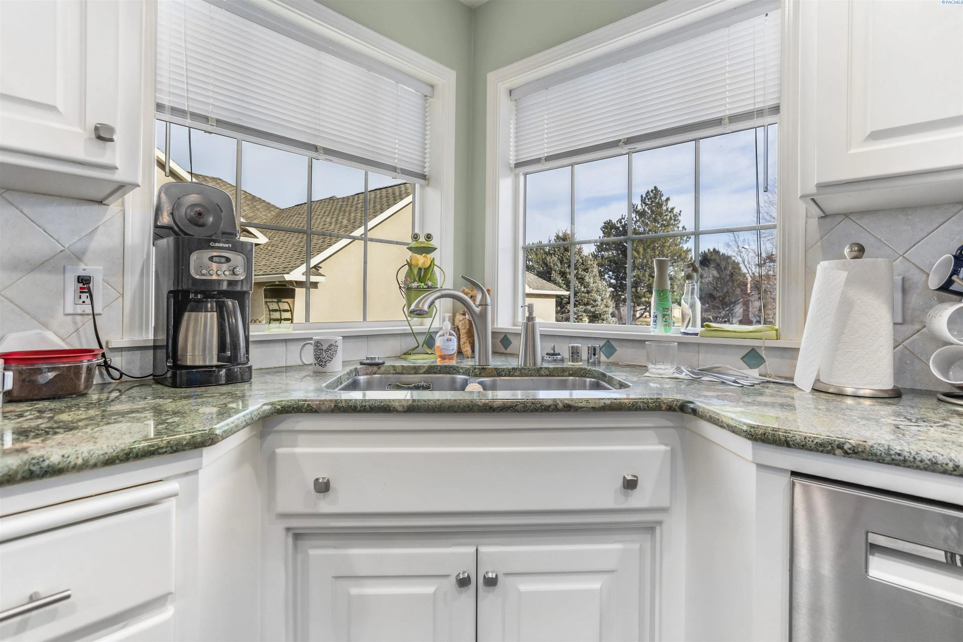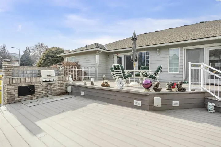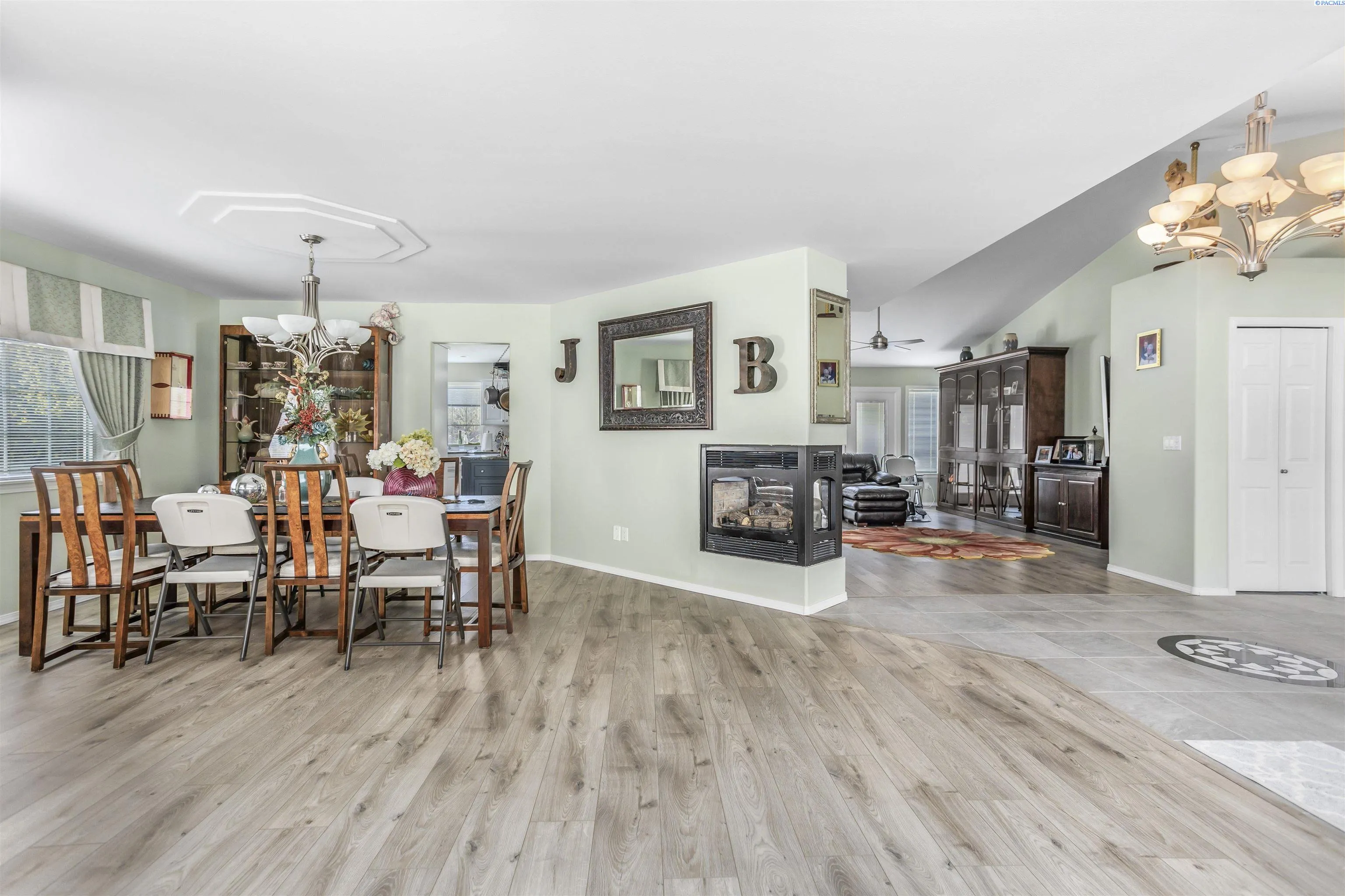 Nestled in the picturesque Canyon Lakes Golf Community, you will find this impeccably maintained and updated 1-level home. Boasting 2473 sq ft, this residence features 3 bedrooms, 2 bathrooms, and a 3-car garage. Recent improvements consist of a roof that is only 2 years old and heating and cooling units that are 3 years old. The interior showcases stunning new flooring, with an impressive entrance highlighted by a glass front door, tiled floors with inlay, and vaulted ceilings that enhance the flow of natural light. The home offers a formal living area with a charming bay window and a spacious great room. A custom fireplace serves as a focal point in both the great room and formal dining room, ideal for entertaining and special gatherings. The beautifully remodeled kitchen features an island, custom cabinetry, granite countertops, tiled backsplash, stainless steel appliances, glass-doored pantry, and an additional dining nook overlooking the backyard. The primary bedroom suite exudes luxury, with a vaulted ceiling, access to the deck, a large closet, and a private bathroom with a dual sink vanity, soaking tub, and shower. Both bathrooms have been tastefully updated. The third bedroom, with French doors, offers versatility as a home office. A spacious laundry room with a utility sink and ample storage cabinets adds convenience. Situated on a .28-acre lot, the backyard oasis includes multi-level covered and uncovered decking, a built-in BBQ, full fencing, and charming landscaping. The 3-car garage features new doors, and the toolboxes within are included with the home. The Canyon Lakes community offers an award-winning 18-hole golf course, clubhouse, and convenient access to shopping, medical facilities, restaurants, a movie theater, schools, and a sports complex.
