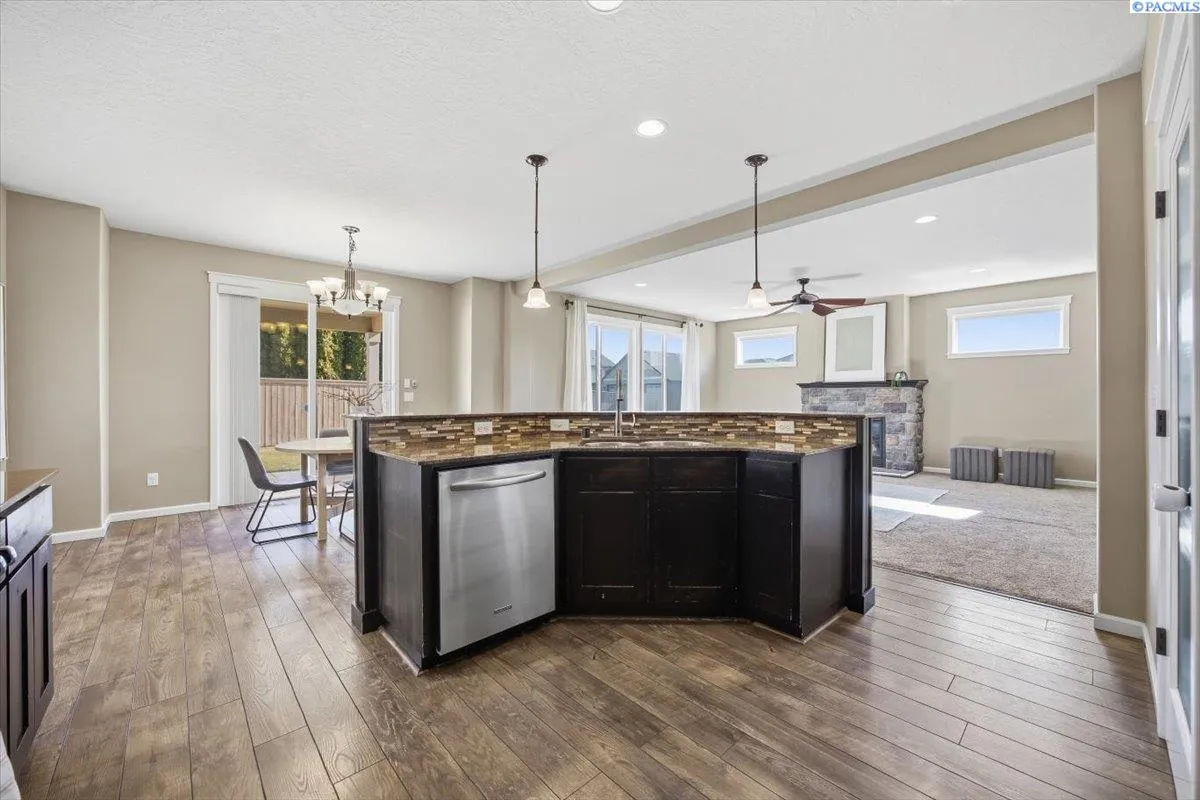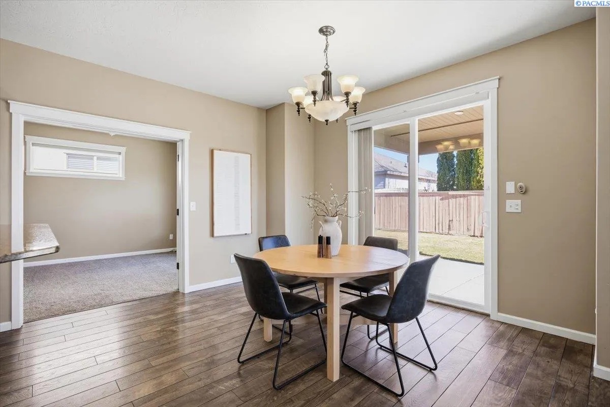 MLS 290908 Positioned on a fully fenced corner lot in Horn Rapids, this 4 bedroom, 2.5 bath home offers 2,502 sq ft of practical space designed for real life. The main level flows easily from kitchen to dining to living, creating a layout that works whether you?re hosting friends or keeping things simple on a weeknight. The kitchen features an island, pantry, and generous storage, opening to the living area with a gas fireplace. A main-level den also provides flexibility for a home office, playroom, or additional lounge space. Upstairs, all four bedrooms are thoughtfully arranged, including a spacious primary suite with walk-in closet and private bath. The layout offers separation where you want it and connection where it counts. Outside, the fully fenced yard and covered patio create space to relax, entertain, or let pets play. The three-car garage has room for vehicles, storage, or weekend projects. Positioned away from golf course frontage, this corner lot offers a more private backyard setting with a fully fenced yard and covered patio that extends your living space outdoors. A pre-inspection has also been completed for added confidence with a full report available. Located within the Horn Rapids community with access to neighborhood amenities including pool and walking paths. Convenient to schools, parks, plus major commuter routes and experience the layout and setting for yourself.