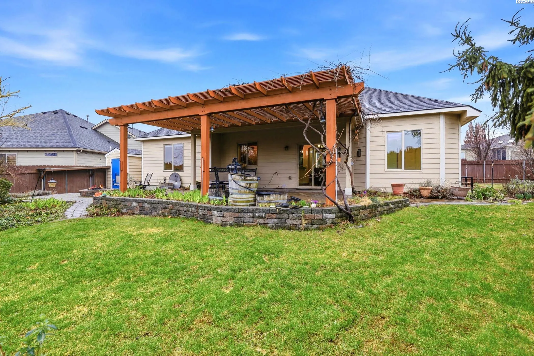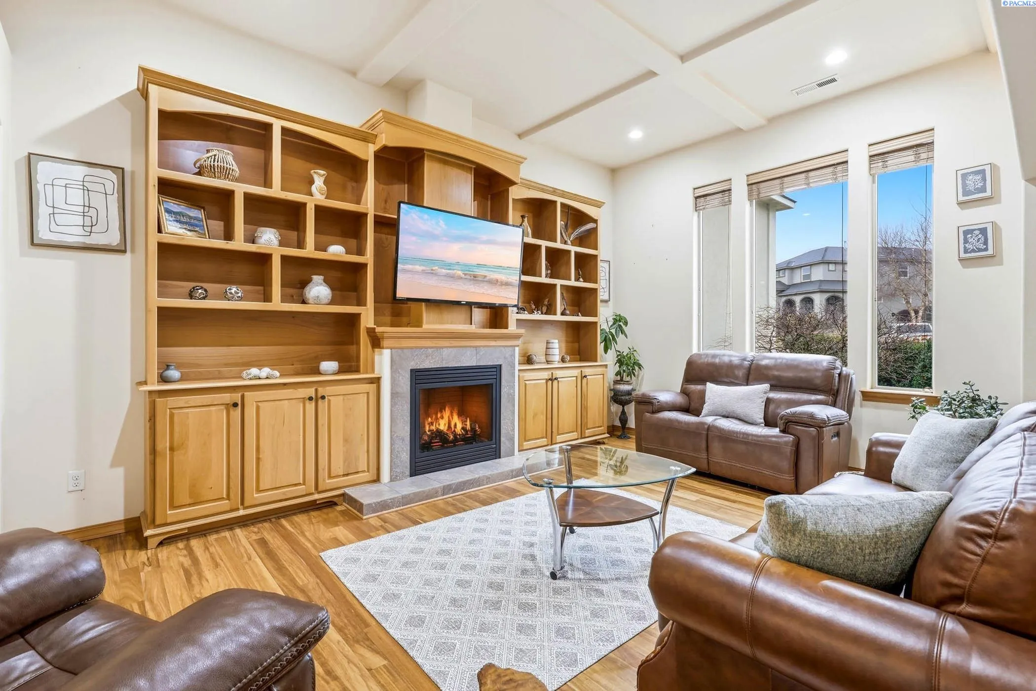 This charming home in a quiet neighborhood offers it all, 4-bedroom, 2-bath, 2,190 sq ft of thoughtfully designed living space and a highly desirable split-bedroom floor plan. Located within walking distance to White Bluffs Elementary, Brookstone Park and Queensgate shopping area. The location is hard to beat. The inviting living room features coffered ceilings, a cozy gas fireplace, wood blinds and custom built-in bookshelves. Bellawood Tamboril solid hardwood flooring (installed 2023) adds warmth and durability throughout the main living areas. The spacious kitchen is both everyday convenience and entertaining complete with granite countertops, abundant cabinetry, pull-out drawers, pantry, under-sink water filtration system, and all appliances included. The private primary suite offers a soaking tub, separate shower, and ample closet space. Three bedrooms include walk-in closets for exceptional storage. A versatile bonus room with independent heating and cooling provides flexible space for an office, gym, media room, or guest suite. Additional features include a laundry room, water softener system, and a 2-car garage with built-in shelving and a separate storage closet. Step outside to enjoy a mature oasis with firepit, water feature, playset, shade trees, grapevines, raspberries, strawberries, a persimmon tree and a plethora of flowering bulbs. This home offers the perfect blend of comfort, privacy, modern updates and functional design, all in a location buyers will love. Don’t miss the opportunity to make it yours!