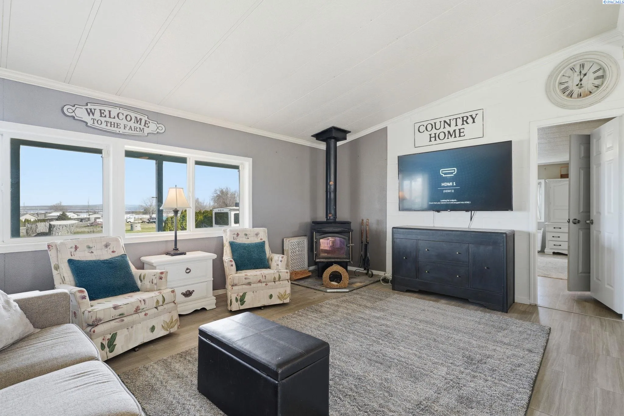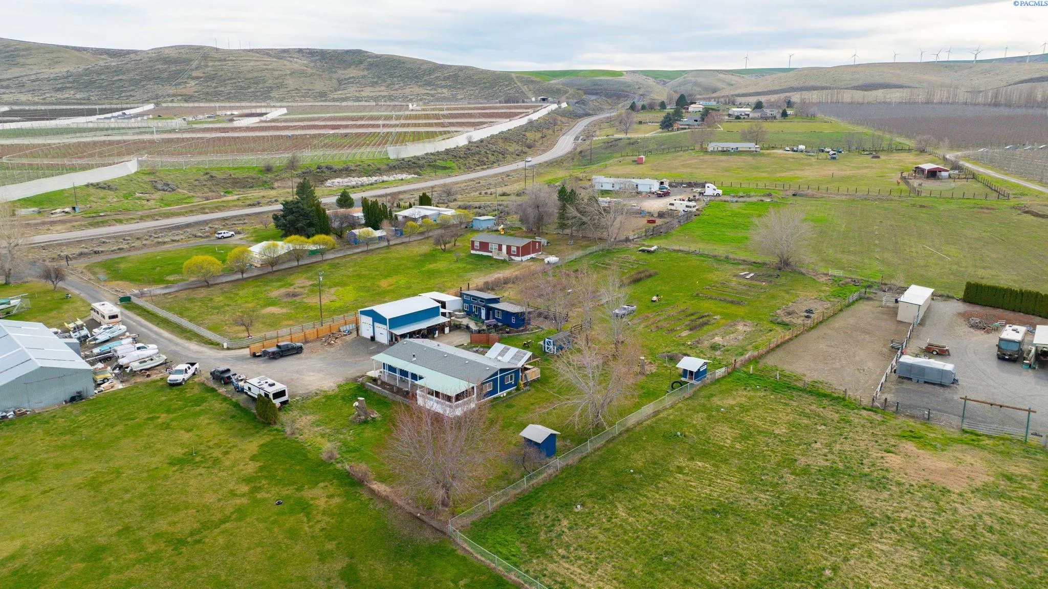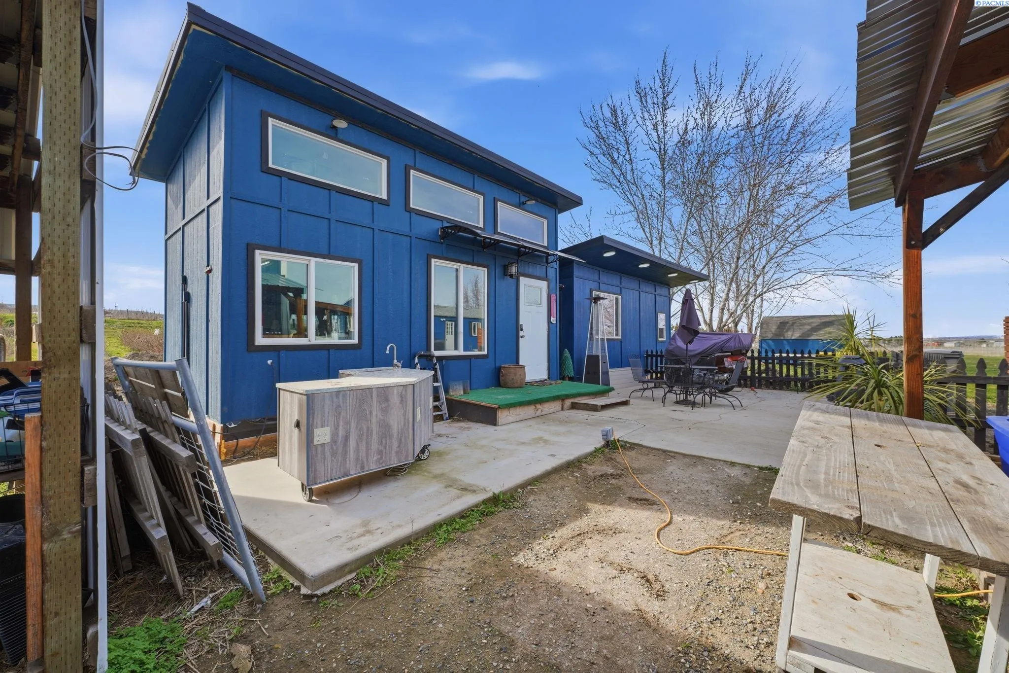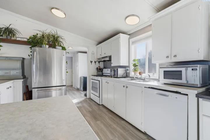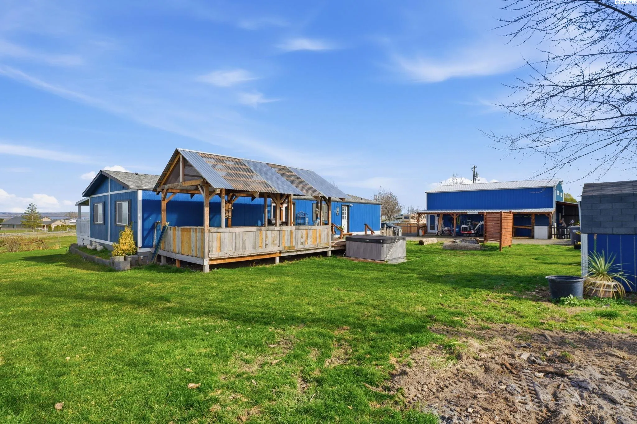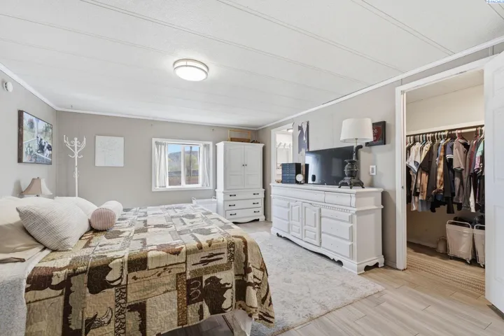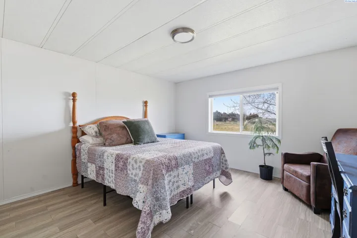 MLS# 290971 Well-maintained, updated, and serene property in East Kennewick offering acreage and versatile living options. This 3-bedroom, 2-bathroom manufactured home sits on 1.24 acres featuring a beautifully landscaped grassy backyard and irrigated pasture. Vaulted ceilings welcome you into the spacious, open living area, where a wood-burning stove provides a cozy retreat during the colder months. The functional kitchen offers abundant cabinetry and ample storage space. Designed with a desirable split-bedroom layout, this single-level floor plan features a generous primary suite complete with a sizable walk-in closet and private en-suite bathroom. Two additional bedrooms and a full bathroom are located on the opposite wing of the home, ideal for guests or family members. A convenient mudroom with laundry, located off the rear entry, is perfect for cleaning up before heading inside! The property also includes a NEW, tiny home—ideal for rental income, multi-generational living, or a personalized hobby space. Additional highlights include a large, insulated and heated 36′ x 24′ shop with 200-amp service and both 10-foot and 12-foot doors. A separate storage building and loafing shed are also thoughtfully positioned on the property. Enjoy peaceful country living with ample space for animals, gardening, and outdoor recreation. This is an exceptional opportunity for those seeking residential acreage with flexibility and privacy. Doesn’t show up on Google Maps: : Chemical Drive, Right on Finley Road to SR 397 for 0.6 miles to property access road across from Mile Post 9. If you are traveling from I-82, go towards Finley on SR 397 for 9.1 miles to property access road, across from Mile Post 9. If traveling from Olympia, go towards Finley on Sr 397 for 6 miles to access road, across from Mile Post 9.