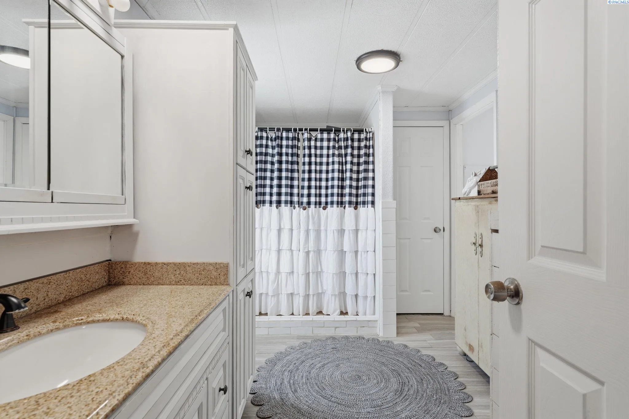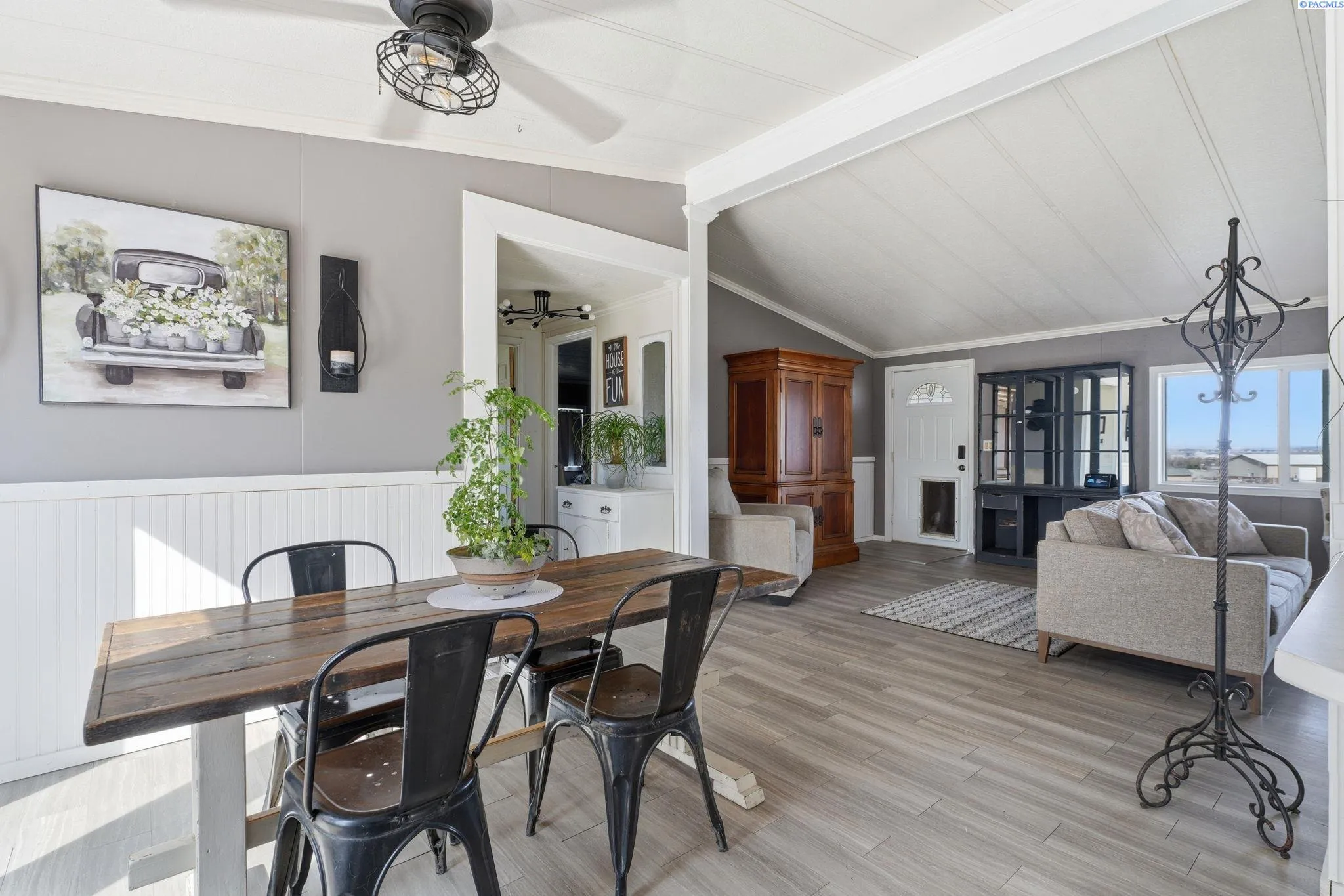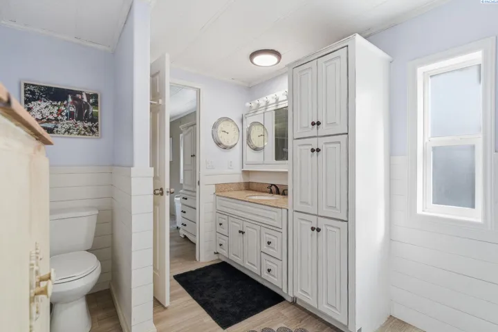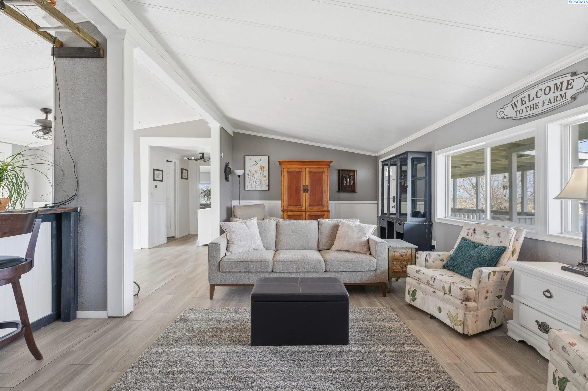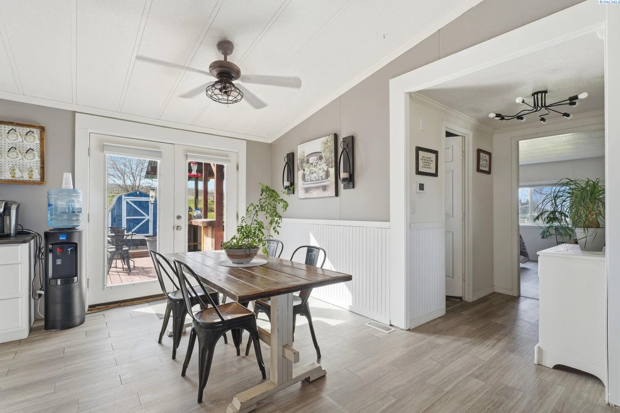 MLS# 290971 Well-maintained, updated, and serene property in East Kennewick offering acreage and versatile living options. This 3-bedroom, 2-bathroom manufactured home sits on 1.24 acres featuring a beautifully landscaped grassy backyard and irrigated pasture. Vaulted ceilings welcome you into the spacious, open living area, where a wood-burning stove provides a cozy retreat during the colder months. The functional kitchen offers abundant cabinetry and ample storage space. Designed with a desirable split-bedroom layout, this single-level floor plan features a generous primary suite complete with a sizable walk-in closet and private en-suite bathroom. Two additional bedrooms and a full bathroom are located on the opposite wing of the home, ideal for guests or family members. A convenient mudroom with laundry, located off the rear entry, is perfect for cleaning up before heading inside! The property also includes a NEW, tiny home—ideal for rental income, multi-generational living, or a personalized hobby space. Additional highlights include a large, insulated and heated 36′ x 24′ shop with 200-amp service and both 10-foot and 12-foot doors. A separate storage building and loafing shed are also thoughtfully positioned on the property. Enjoy peaceful country living with ample space for animals, gardening, and outdoor recreation. This is an exceptional opportunity for those seeking residential acreage with flexibility and privacy. Doesn’t show up on Google Maps: : Chemical Drive, Right on Finley Road to SR 397 for 0.6 miles to property access road across from Mile Post 9. If you are traveling from I-82, go towards Finley on SR 397 for 9.1 miles to property access road, across from Mile Post 9. If traveling from Olympia, go towards Finley on Sr 397 for 6 miles to access road, across from Mile Post 9.