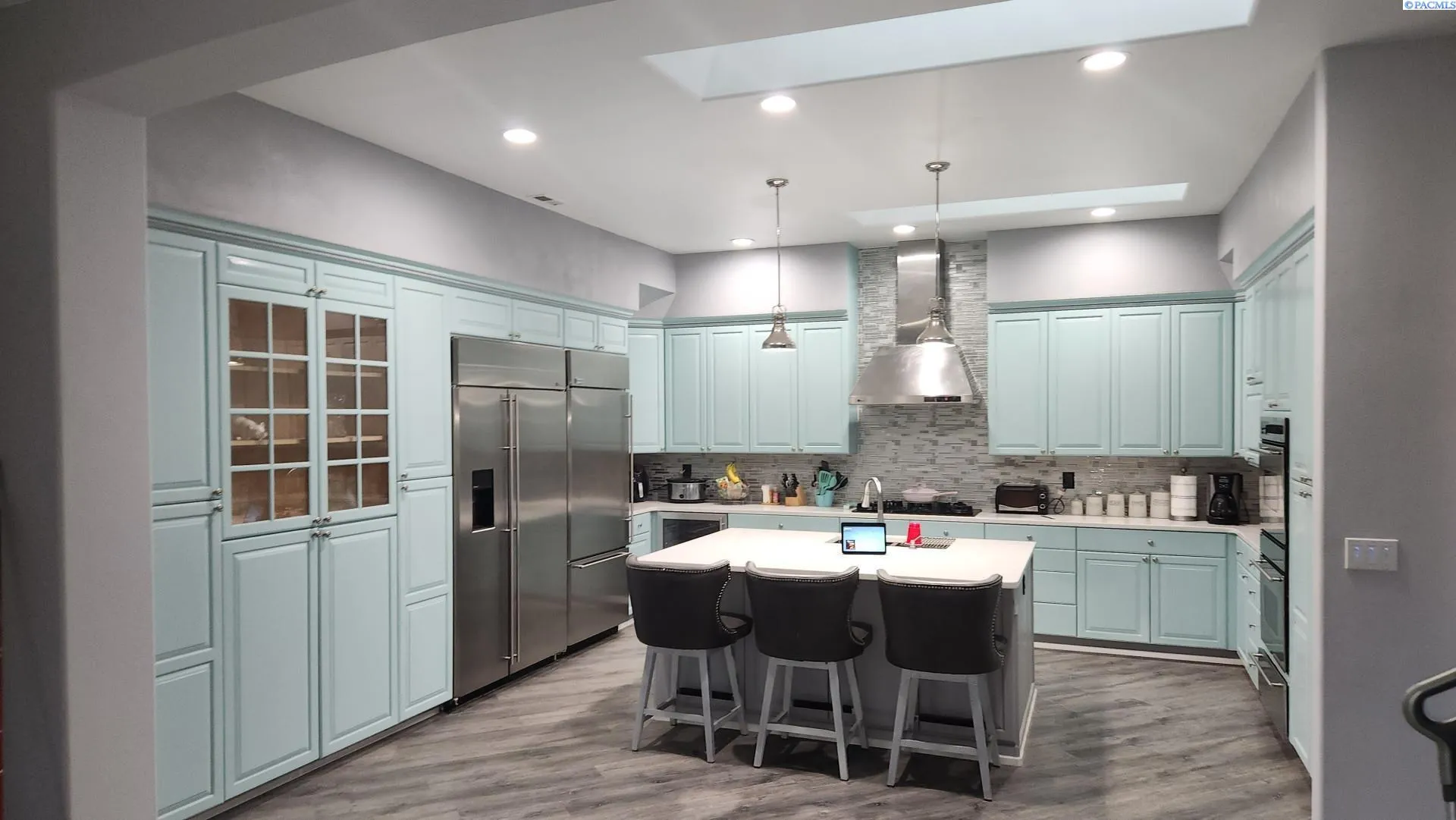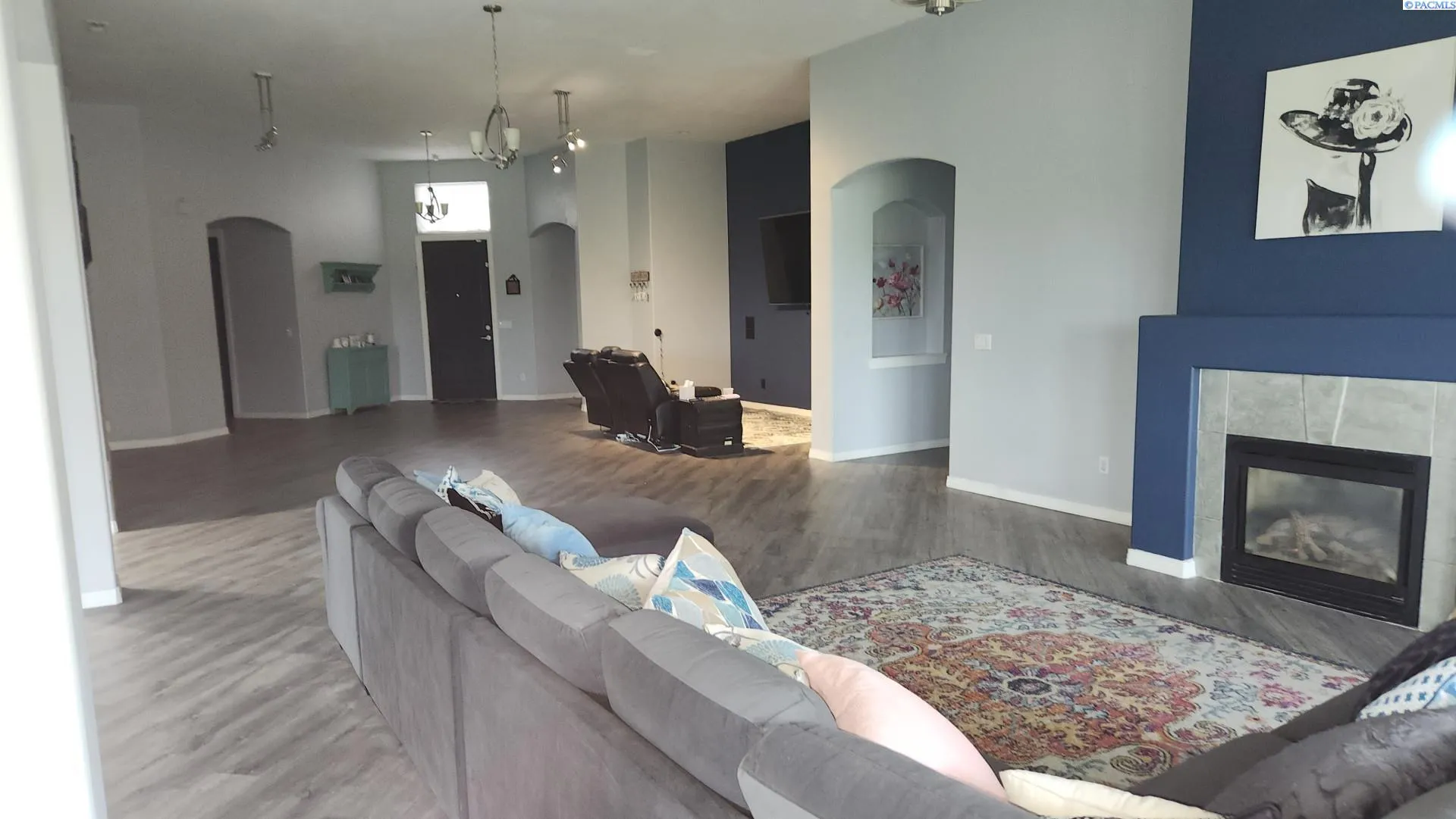 MLS# 289958 Welcome to this stunning single-family home located on the 13th hole of the Canyon Lakes Golf Course. Built in 2002, this exquisite property boasts a spacious floor plan with a total of 3 bedrooms with 3 on-suite bathrooms and a 1 half guest bathroom. With a finished area of 3,502 sq. ft., this home offers plenty of room for comfortable living and entertaining. This home is the largest single level ranch style home on the Canyon Lakes Golf Course. This ranch style home does not have steps and features oversize 8′ tall solid wooden doors.Situated on a generous lot size, this home provides ample covered outdoor space for enjoying the beautiful Washington weather and views of the golf course. The exterior of the home features a stucco finish, tile roof, well-maintained lawn, mature landscaping, and a large patio area perfect for hosting gatherings or simply relaxing outdoors. As you step inside, you’ll be greeted by a bright and airy living space that includes a cozy fireplace, 12′ ceilings, and large sliding glass doors across the entire back of the home. The multiple sliders let in plenty of natural light. The kitchen is a chef’s dream with high-end appliances, 2 subzero refrigerators, dual oven, wine cooler, quartz counter tops, and plenty of storage space. The dining area is perfect for enjoying meals with family and friends.The spacious master suite offers a peaceful retreat with a luxurious en-suite bathroom featuring a soaking tub, separate shower, and dual vanities and a large walk-in closet. The remaining 2 bedrooms are generously sized and offer plenty of closet space and on-suite bathrooms. Additional features of this home include a bonus room that can be used as a home office or entertainment room, a laundry room, central vacuum, water softener and a 3-car garage for parking and storage. This home is extremely energy efficient for its size. Located in the desirable community of Canyon Lakes in Kennewick, this property is conveniently located near schools, shopping, dining, and outdoor recreation opportunities. Don’t miss your chance to make this beautiful ranch your new home!
