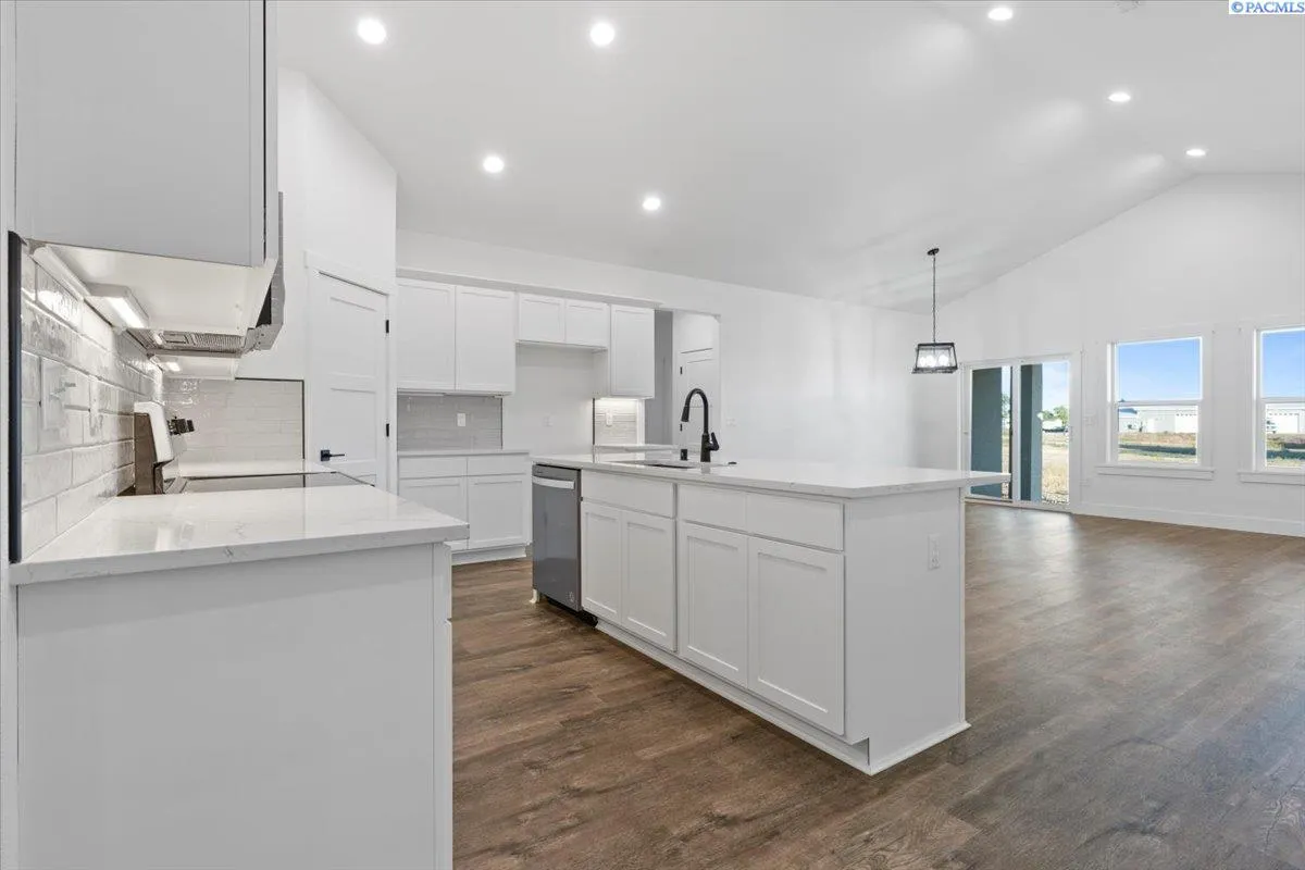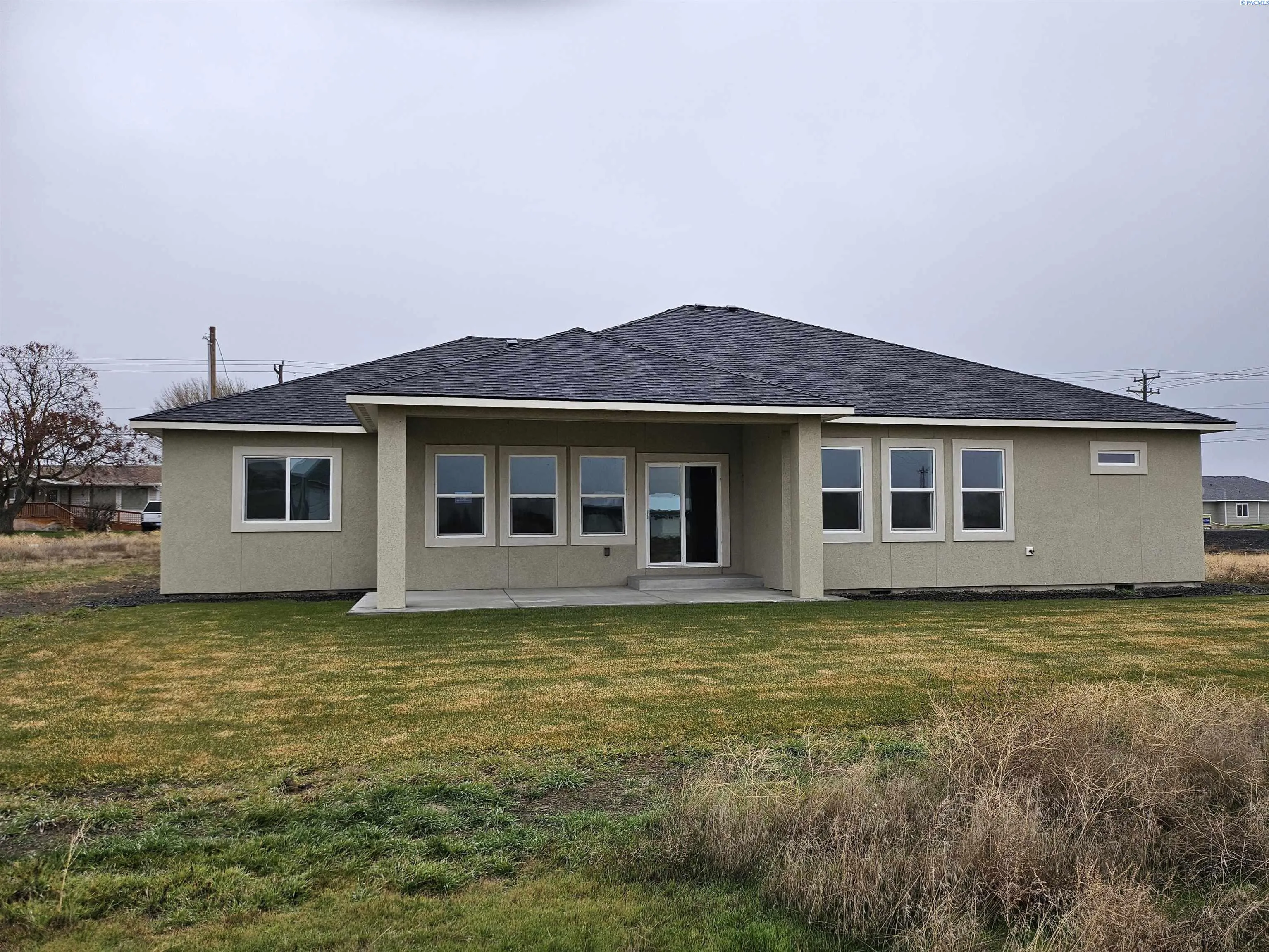 MLS# 287172 Discover the perfect blend of space, style, and serenity at this newly constructed contemporary home in Mae Valley. Set on a generous 1.16-acre lot across from Moses Lake, this property offers ample room for a shop or pool installation to complement your lifestyle. Step into an inviting open floor plan illuminated by abundant natural light that flows seamlessly through the living areas. The vaulted ceiling in the living room adds an airy feel, while three bedrooms plus an office provide plenty of space for work or relaxation. Two full bathrooms cater to both convenience and comfort. The heart of this home is its modern kitchen that opens onto the dining area and living room – ideal for entertaining guests or enjoying family time together. A covered patio extends your living space outdoors where you can savor quiet evenings under vast Washington skies. Not only does this home boast city utilities for hassle-free maintenance but also features a stucco finish that enhances its curb appeal. The separate entrance provides easy access to the back of the property – perfect for future projects or simply enjoying uninterrupted views. This residence encapsulates all you could wish for: tranquility away from bustling city life yet close enough to enjoy water activities at Moses Lake right at your doorstep. Take advantage of new construction benefits without any wait—move into a brand-new house ready to be transformed into your dream home! To experience what makes this property truly special firsthand, schedule a visit today!