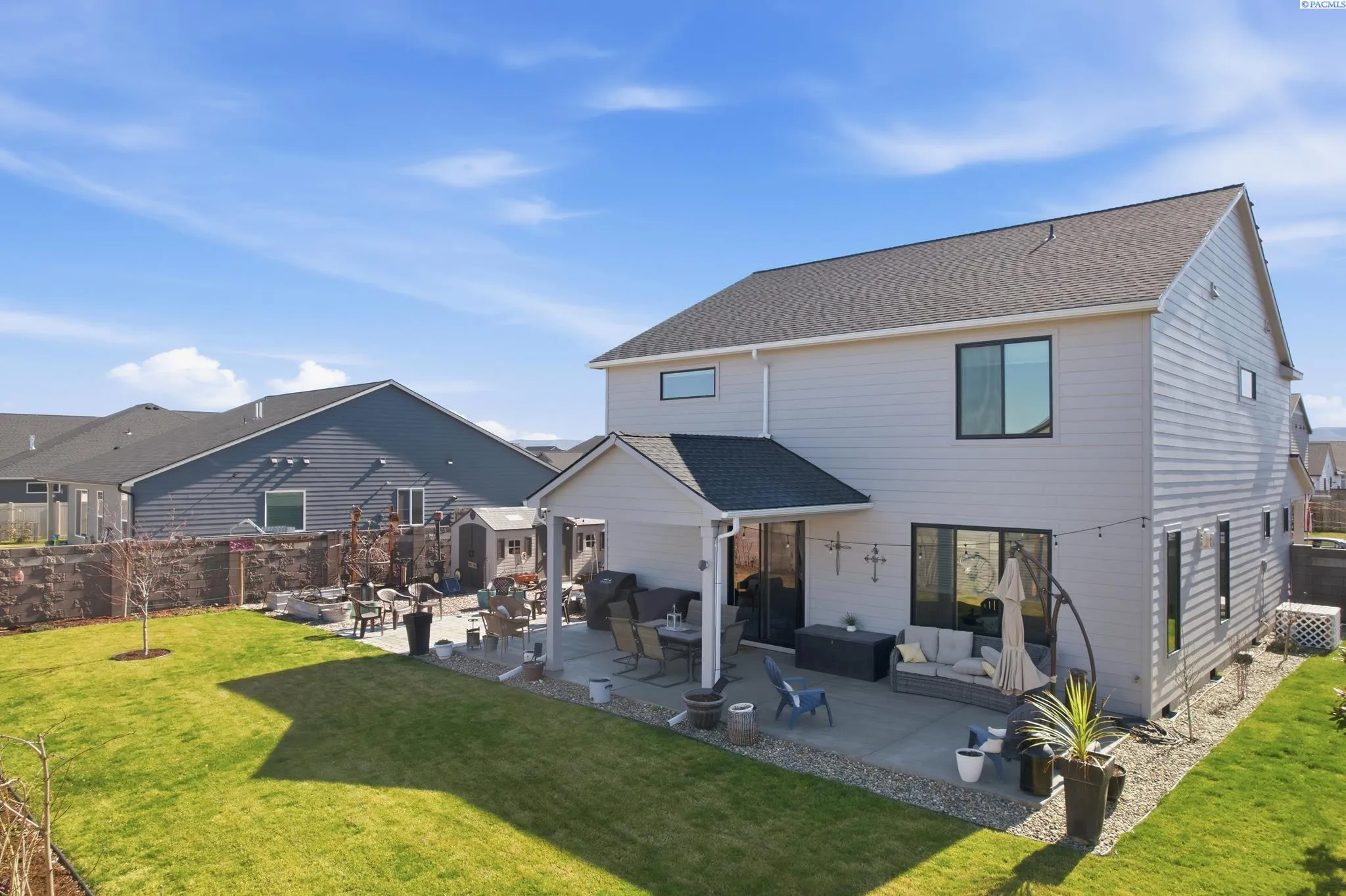 Welcome to this stunning 2,465 sq ft home built in 2022, offering immaculate condition and an amazing, thoughtfully designed layout that blends comfort, style, and functionality. From the moment you walk in, you’ll notice the large windows that fill the home with natural light and the beautiful neutral color palette that creates a warm and modern feel throughout. The home features numerous upgrades designed for both convenience and comfort. The kitchen offers additional drawers and storage, making organization effortless. You’ll also enjoy gas appliances, adding efficiency and performance for cooking and everyday living. A cozy fireplace creates the perfect focal point in the living area, providing warmth and a welcoming space to relax. Outside, the property truly shines with beautiful mature landscaping, including plants and trees throughout the yard supported by a full sprinkler system. The outdoor living space features a covered patio, an additional front patio, and extra concrete ready for a fire pit or even a future pool. The property is fully enclosed with fencing and gates, including a durable cylinder block fence, offering both privacy and security. There is also an RV parking pad, providing excellent space for recreational vehicles or additional parking. A separate storage shed adds even more functionality. Additional highlights include solar panels for improved energy efficiency, gutters and blinds installed throughout the home, and a garage equipped with a heater and LED lighting for year-round comfort and usability. Built in 2022, this home combines modern construction, thoughtful upgrades, and immaculate care, making it truly everything a homeowner could desire.