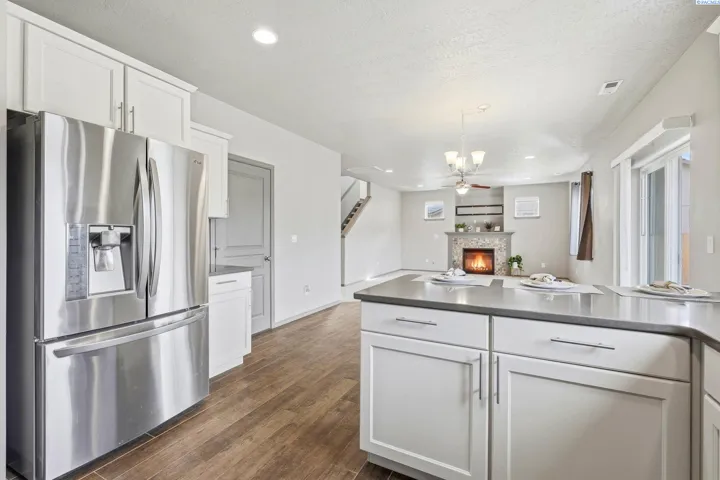 MLS# 291003 Welcome to 6853 W 4th Avenue! This Kennewick 2 story home offers a welcoming space for living and entertaining with 4 bedrooms, office/den, 2.5 bathrooms, and a .25-acre lot. Double French doors near the entryway lead to a flexible office/den room with a closet and extra storage. The open great room features a kitchen, dining area, and family room with a fireplace and convenient sliding glass door access to the backyard. The kitchen is complete with granite countertops, stainless appliances, abundant counter and cabinet space, and a large pantry with built-in countertop, shelving, and wine storage. The master suite offers space to relax and unwind with a walk-in closet and luxurious bathroom with double sinks, a large soaker tub, and separate shower. The upstairs layout features three additional bedrooms with oversized closets, a 2nd bathroom with tub/shower combo, and a large laundry room. The .25-acre lot is set up for outdoor living with a covered back patio, curbing, fenced yard, shed, and extra parking. Fantastic Kennewick location in close proximity to schools, restaurants, and shopping. Call today to schedule a showing, because this could be the house you call home!