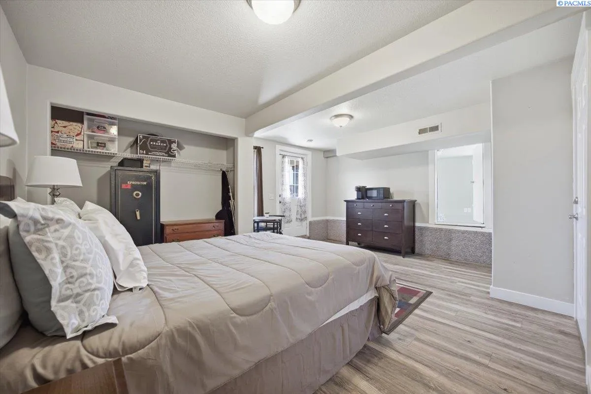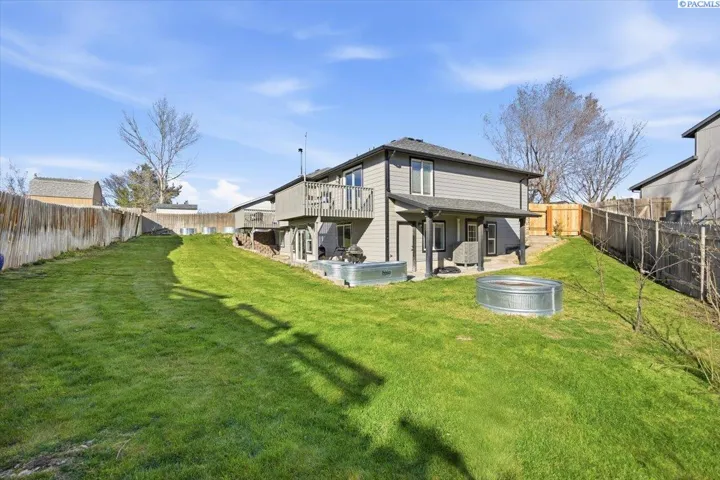 Welcome Home! 5 Bedrooms, 4 Bathrooms, 3,200+ Square Feet and Garage Spaces. Tucked away on a quiet South Kennewick cul de sac, this spacious home offers the perfect blend of privacy, comfort, and convenience while remaining close to schools, parks, and everyday amenities. Inside you will find a versatile floor plan featuring over 3,200 square feet of living space and a walk out lower level that opens the door to many lifestyle possibilities. The primary suite is impressively sized and includes direct access to the deck along with a private ensuite bathroom featuring a soaking tub, tile shower, and double vanity. One of the standout features of this home is the second large suite located on the lower level, creating a true dual master setup. This space includes a full bathroom and its own exterior entrance, making it ideal for multi generational living, extended guests, or even a private rental opportunity. The kitchen features granite countertops, newer appliances, and a center island that flows seamlessly into the dining and living areas, making it perfect for everyday living and entertaining. Major system upgrades provide peace of mind with a new furnace, air conditioning unit, and water heater all installed in 2023. Additional updates include new flooring throughout the lower level, fresh interior paint, a wood stove added within the last two years, and brand new blinds installed throughout the home in 2023. Outside, you will appreciate the recent improvements including new gutters with leaf guards, updated concrete at the front entry, and new gates that fully enclose the backyard. The outdoor living space is designed for enjoyment with a large upper deck, spacious fenced yard, and raised garden beds ready for your summer harvest. This one won’t last! Truly a Must See! Contact Your Favorite Realtor TODAY! For a Private Showing.