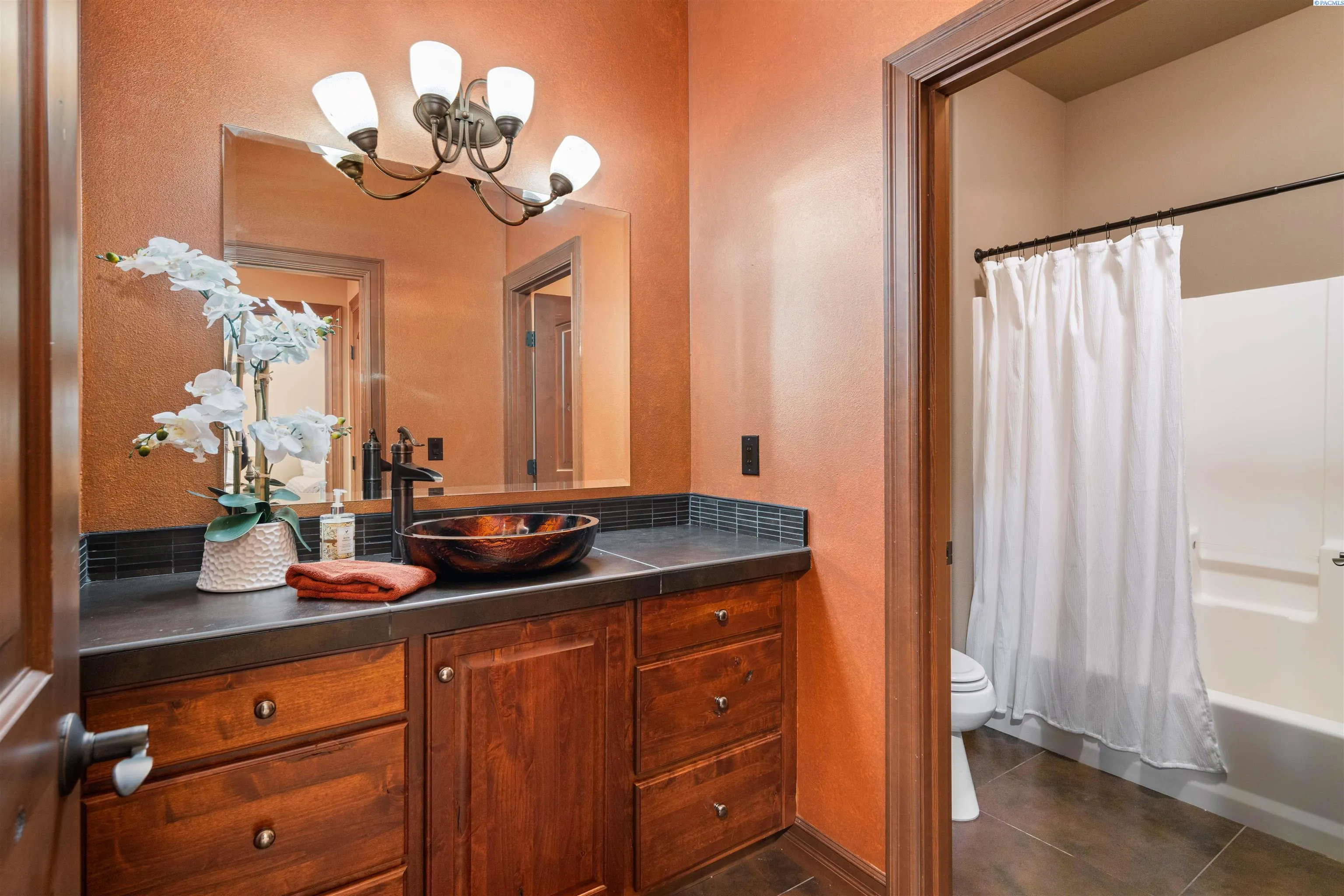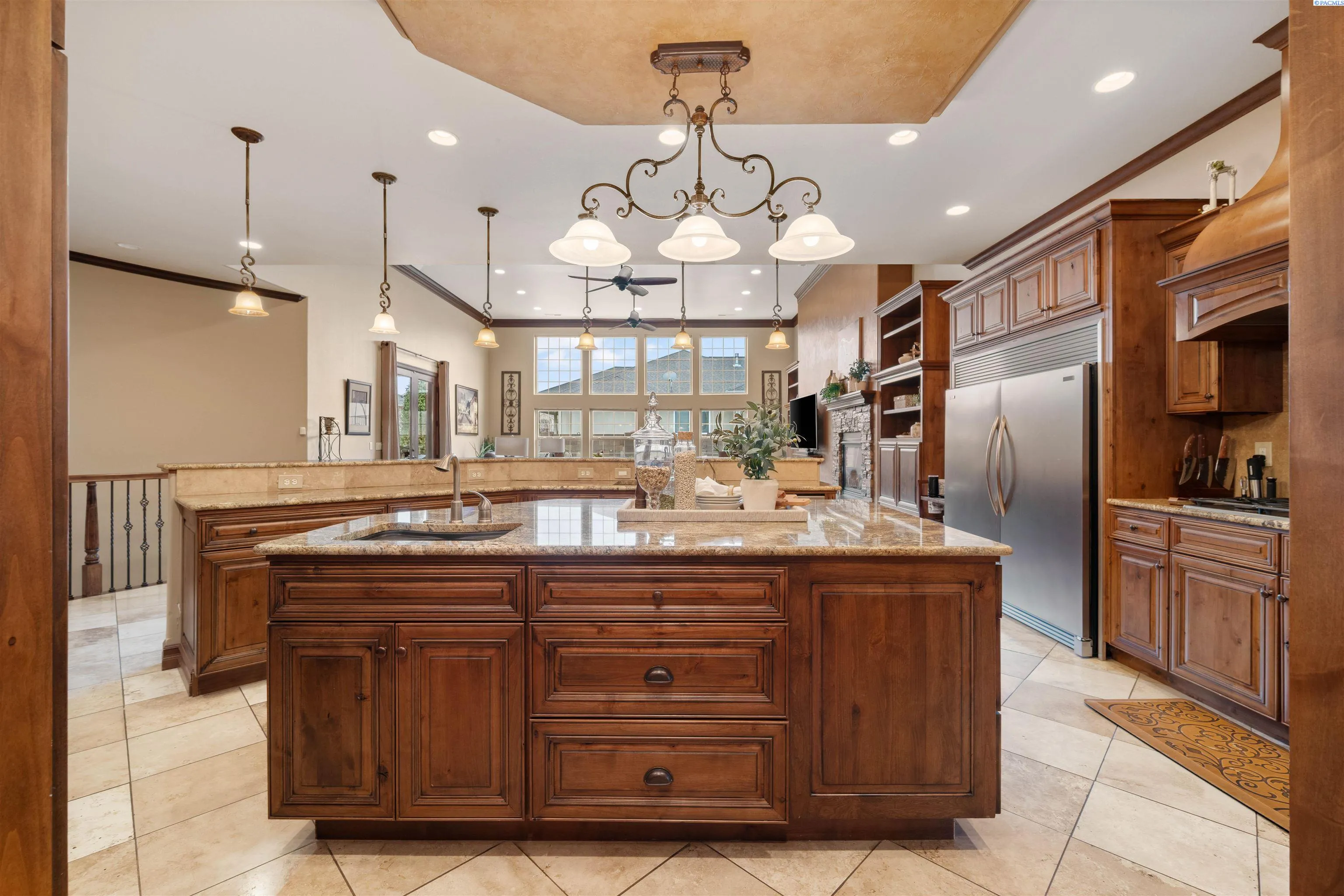 Welcome to luxury living in the Tri-Cities, where space, comfort, and a little bit of fun all come together in one unforgettable home. Located in Union West, also home to the highly sought-after Street of Dreams, this exceptional property places you in one of the Tri-Cities’ most prestigious neighborhoods, known for its upscale homes, thoughtful design, and elevated lifestyle. With an impressive 6,002 square feet, this beautifully designed 5-bedroom, 4-bathroom home with a dedicated office offers the space and flexibility today’s buyers are searching for. The main level features four bedrooms, creating an ideal layout for everyday living, while the full basement adds incredible versatility with a private guest bedroom and bathroom—perfect for visiting friends, extended family, or multi-generational living. At the heart of the home is a spacious chef’s kitchen built for gathering. A large island anchors the space, surrounded by abundant cabinetry with pull-out shelving, generous storage, and plenty of room for everything from casual breakfasts to full holiday spreads. If kitchens truly are the heart of the home… this one has a pretty strong heartbeat. Head downstairs and you’ll discover where this home really starts to party. The fully finished basement includes a second kitchen and a massive recreation room already set up for unforgettable nights in—complete with shuffleboard, poker table, pool table, and a projector screen for movie nights. It’s the kind of space that makes hosting effortless and leaving the house slightly unnecessary. And then there’s the backyard… which deserves its own moment. Step outside to a private outdoor retreat featuring a heated in-ground gunite pool and hot tub, complete with a sun deck designed for lounge chairs—because relaxing poolside should absolutely be part of your daily routine. Overlooking it all is an expansive 46’ x 22’ covered patio, creating the perfect space to entertain, dine, and enjoy those warm Tri-Cities summer evenings in style. Luxury homes in Kennewick rarely offer this kind of square footage, entertainment space, and resort-style outdoor living all in one place. Thoughtfully designed, beautifully finished, and built for both everyday comfort and unforgettable entertaining—this is the kind of home that doesn’t just impress… it invites you to stay awhile.