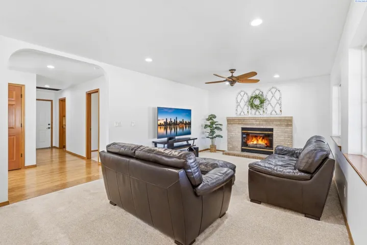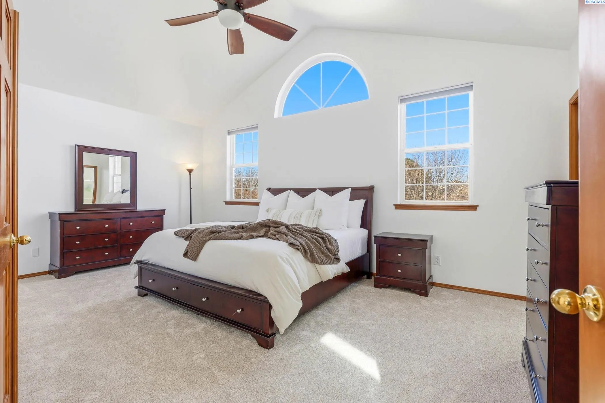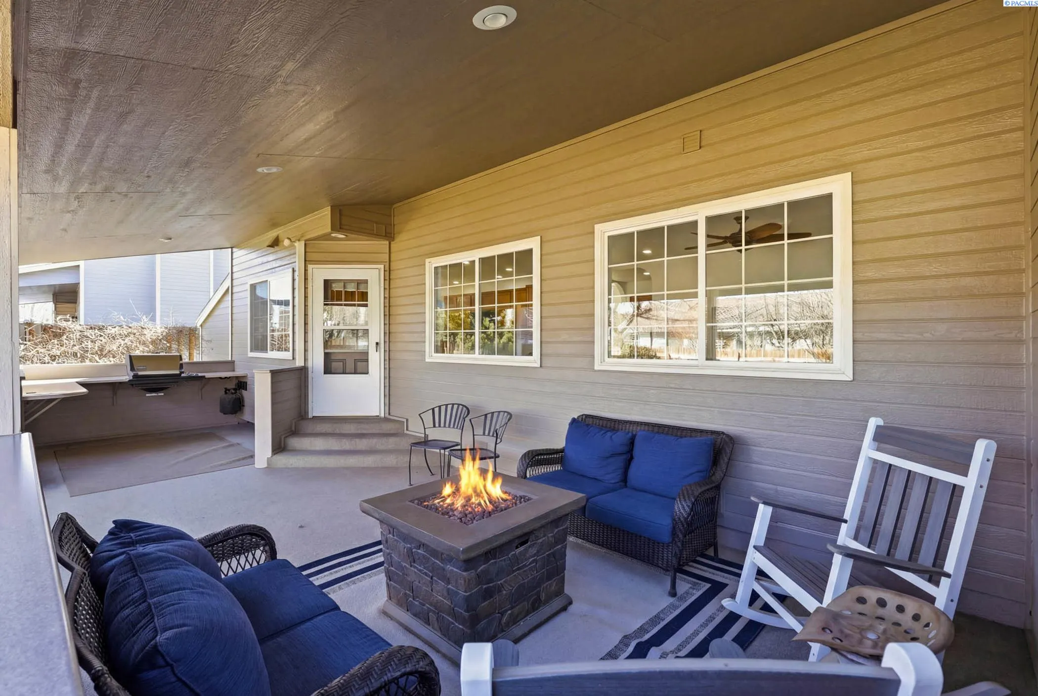 MLS# 291066 Welcome to this well-maintained home offering comfortable living spaces. Built on a quiet cul-de-sac, this home offers the perfect balance of space, charm, and convenience. Step inside to an open floor plan highlighted by soaring vaulted ceilings, a beautiful staircase, and abundant windows that fill the home with natural light. The spacious layout features two separate living areas, creating plenty of room for family gatherings, entertaining guests, or simply enjoying everyday life. The kitchen is both functional and welcoming, featuring pull-out shelves and drawers for easy organization, a large kitchen sink with updated faucet, and generous workspace for meal preparation. Nearby living areas include a cozy gas fireplace, creating a warm and inviting atmosphere. Upstairs in an oversized bedroom, you’ll find a charming window seat, perfect for reading or relaxing, along with thoughtful storage features. You will love the convenience of the laundry chute. Recent updates include fresh interior paint and brand-new carpet, giving the home a clean, refreshed feel and making it move-in ready. Outside, the covered backyard patio provides a great space for outdoor dining, relaxing evenings, or entertaining. In the springtime, the backyard truly shines with lush grass and blooming flowers, creating a peaceful outdoor setting. Additional highlights include a three-car garage with extra storage space, ideal for hobbies, tools, or recreational gear. An additional shed is tucked away for convenience but doesn’t take away from the beautiful backyard. Located in a quiet, established neighborhood close to parks, schools, shopping, and everyday amenities, this home offers both tranquility and convenience. A wonderful opportunity to enjoy spacious living in one of Southwest Kennewick’s most desirable neighborhoods.