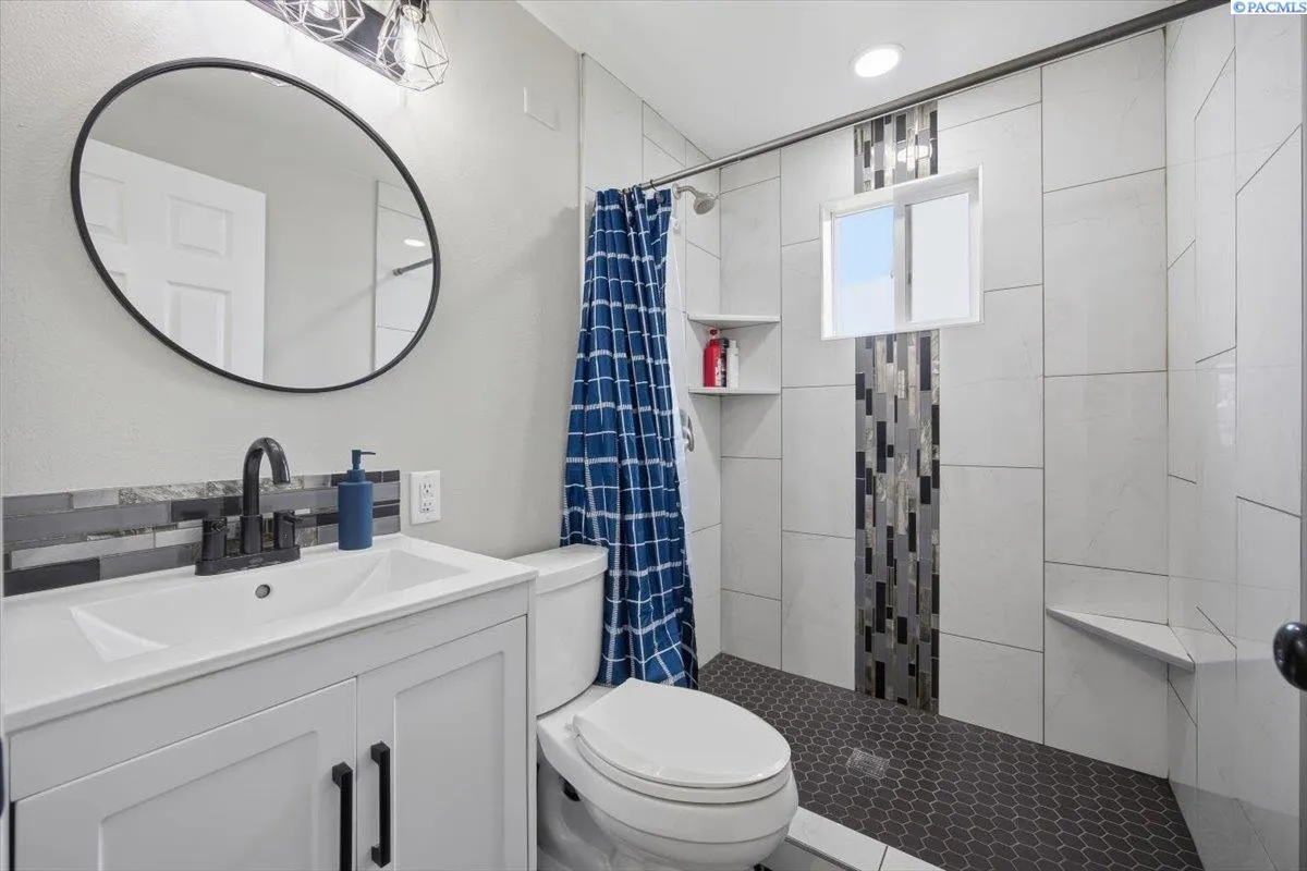 MLS# 291072 Well maintained home featuring central air and heat pump heating and cooling for year round comfort. The property is fully fenced and offers a detached garage for additional storage or parking. Inside, the home has been updated with modern recessed lighting and an updated bathroom with tile to ceiling backsplash and a stylish vanity. The refrigerator, washer, and dryer are included, making this a move in ready opportunity.