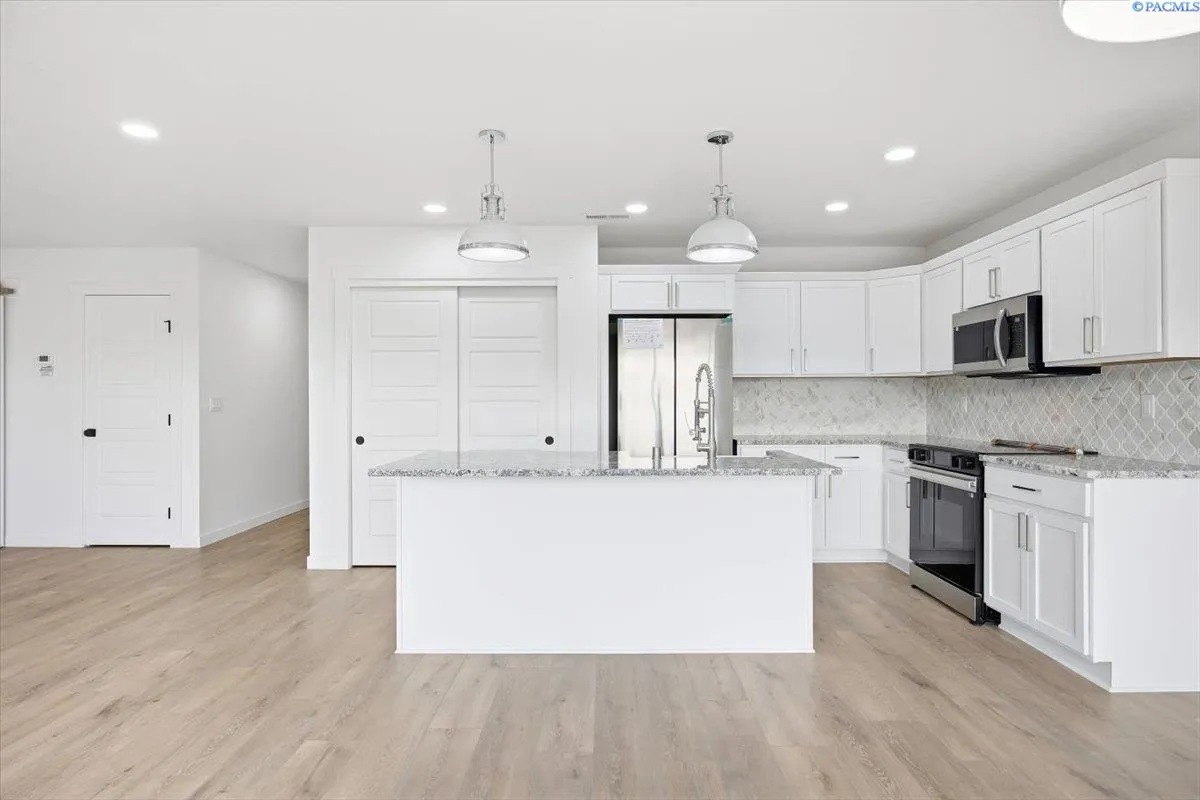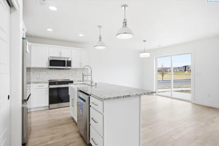 MLS# 291127 Welcome to your brand-new home in West Kennewick, built with pride by Muzzy Construction. This home is perfectly located directly across the street from the Desert Hills Middle School playfields, giving you a wonderful sense of open space and easy access to outdoor fun. Inside, you will find a great layout with 3 bedrooms and 2 bathrooms (contained within 1447 square feet). The kitchen features gorgeous quartz countertops and custom cabinets that give plenty of storage. High-quality LVP flooring runs through the main living areas, providing a modern look that is also very easy to clean. The home includes a large 2-car garage, for those cars and extra gear (or just a lot of storage and leave the cars outside). When you want to head out back, you can relax on the covered back patio that stays shaded and comfortable throughout the day. This home is currently under construction (pictures are of another home completed recently in the same neighborhood – shows what great finishes are put into this home), which means you get to be the very first person to live in it. It combines a great location with high-end finishes that make it stand out from the rest. Don’t miss your chance to own a quality home in a fantastic neighborhood. Welcome home to Talon Heights!