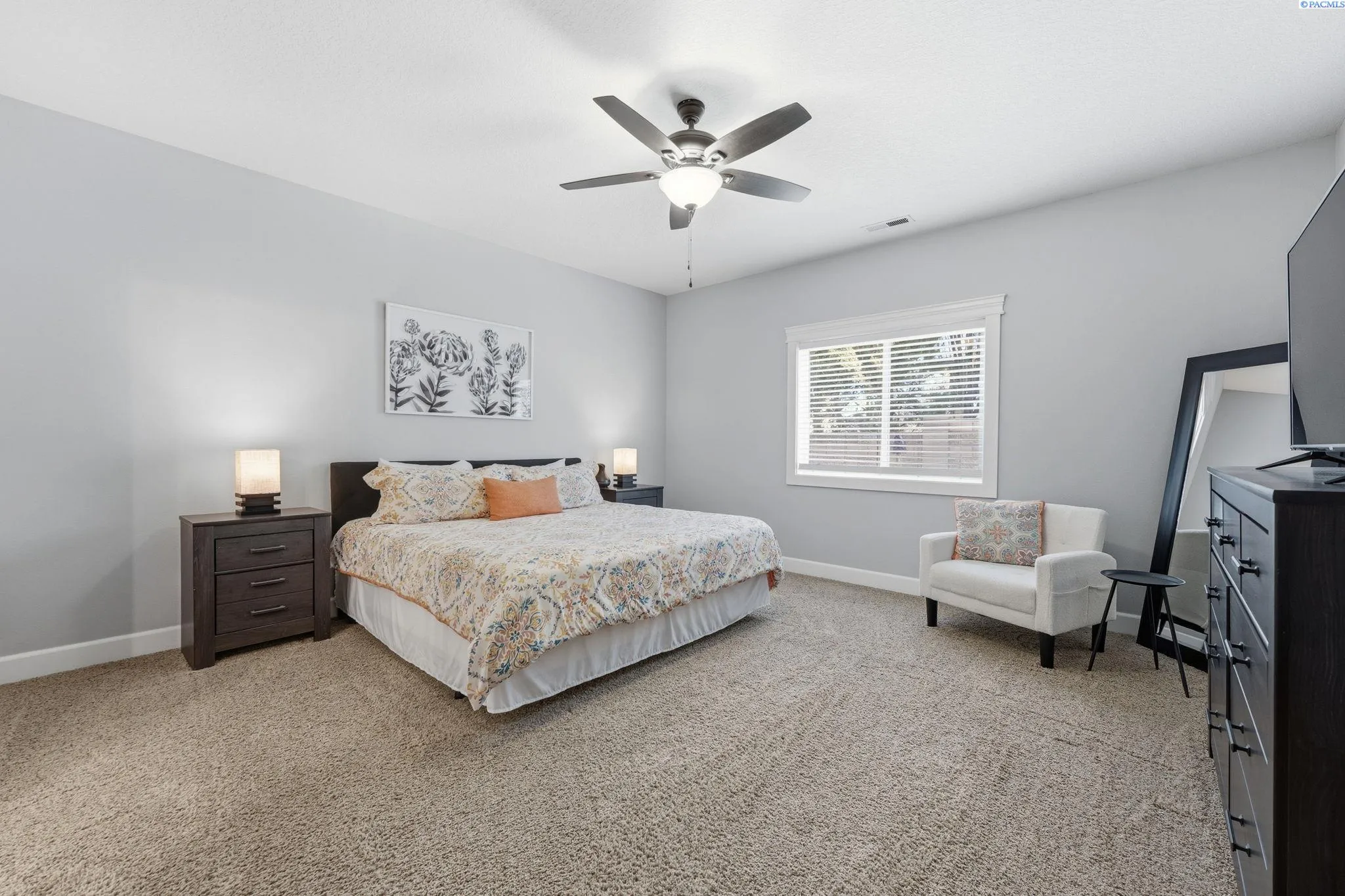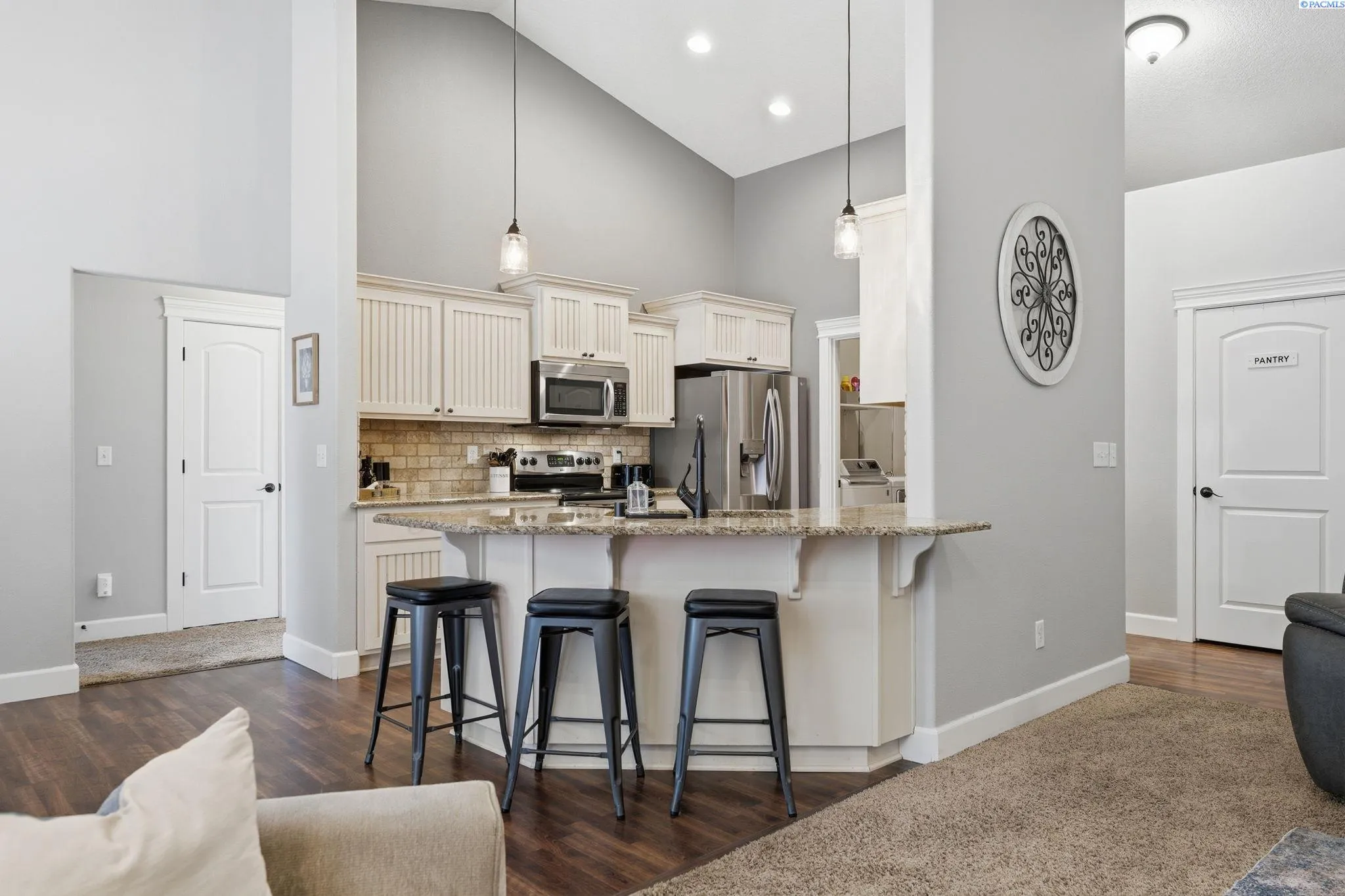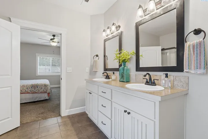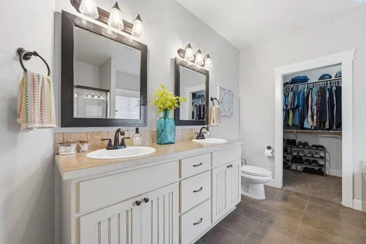 You’ll immediately notice the care and quality in this beautifully maintained home in Creekstone. With durable Hardieplank siding and upgraded wood-wrapped windows, the craftsmanship is evident from the moment you arrive. Inside, 10-foot ceilings create a bright, open feel. The great room is designed for comfort and connection, featuring a gas fireplace and ceiling fan. The kitchen is thoughtfully appointed with solid wood cabinetry, granite countertops, and a full-height backsplash that adds timeless character. Upgraded cabinetry continues into the spacious bathrooms, and solid wood shelving is featured throughout every closet, including the generous walk-in pantry. The split-bedroom layout offers privacy and flexibility. The fourth bedroom provides versatile space that can easily function as a home office, hobby room, or guest space to fit your needs. The primary suite offers a spacious retreat with double vanities, a soaking tub, separate shower, and a large walk-in closet with ample storage. Step outside to a fully-landscaped yard complete with a patio, professional curbing, and mature plants and trees making an inviting space for entertaining or simply enjoying the outdoors. The large side yard is equipped with a garden area. A brand new block fence too! The home is also wired for a security system. Creekstone residents enjoy access to neighborhood parks, paths, gazebos and a playground. Conveniently located in West Kennewick, this home combines quality construction, functional design, and access to community amenities in one exceptional opportunity.