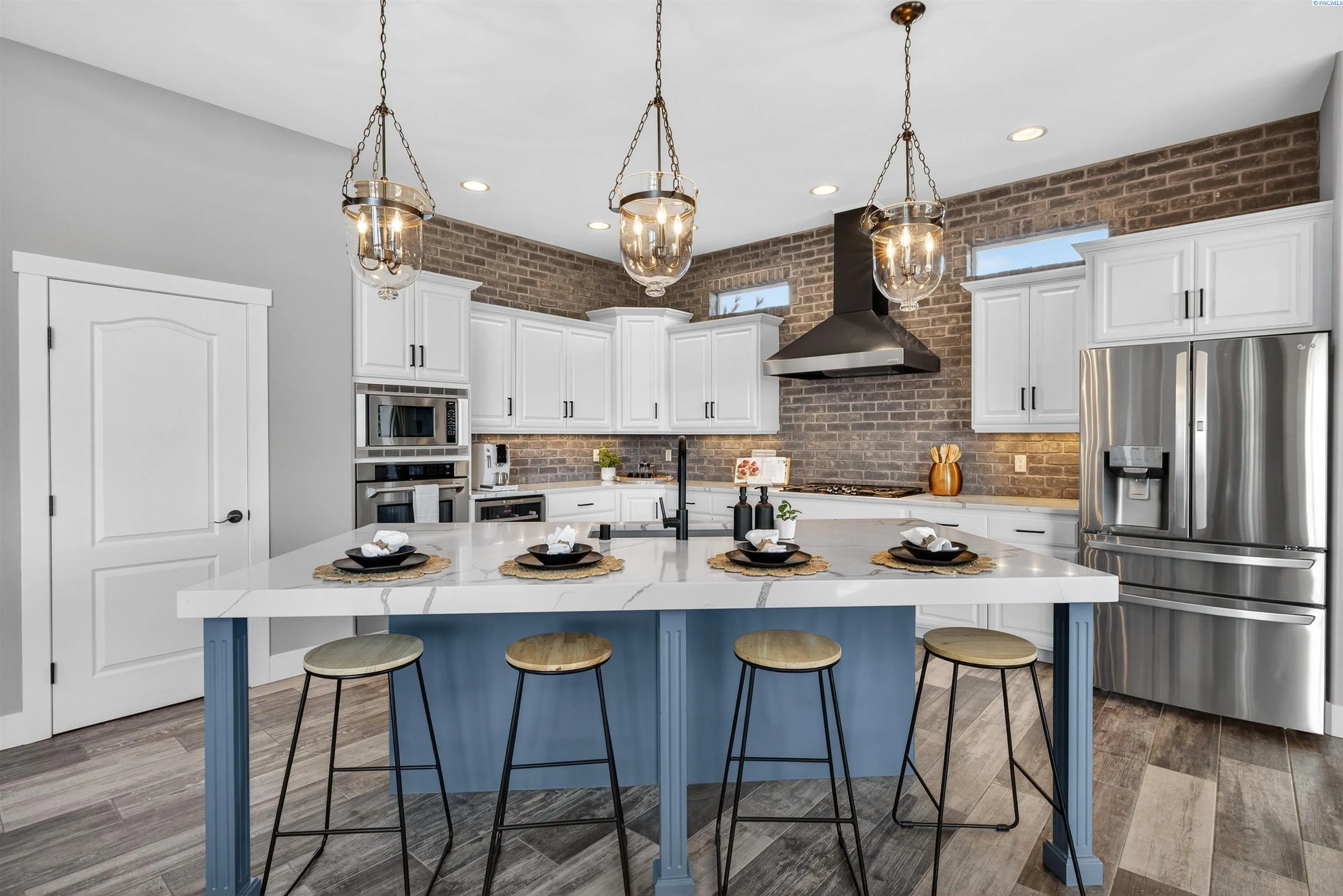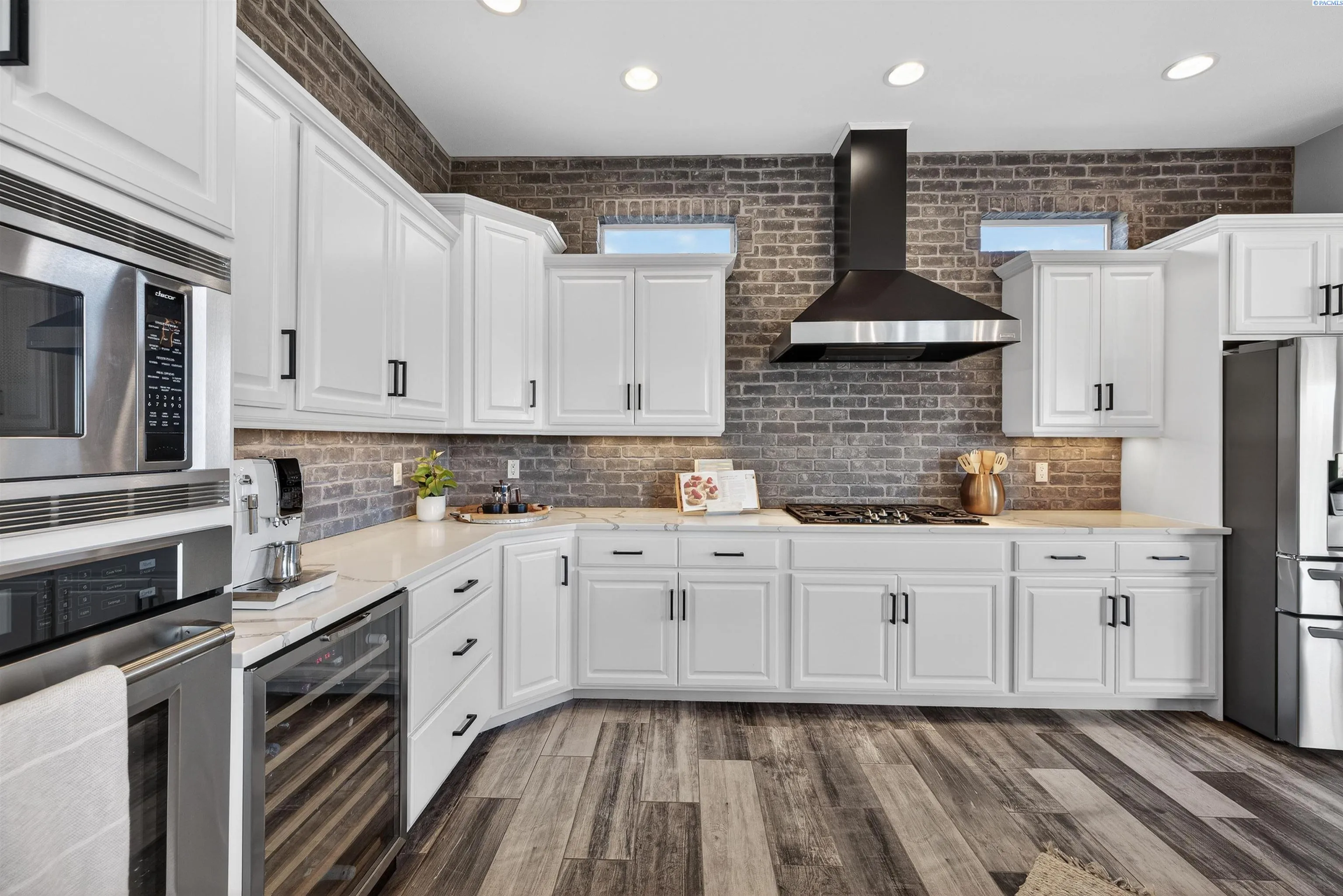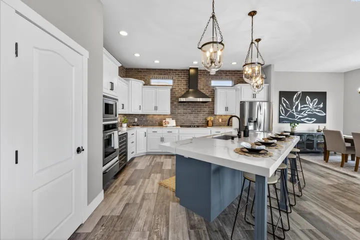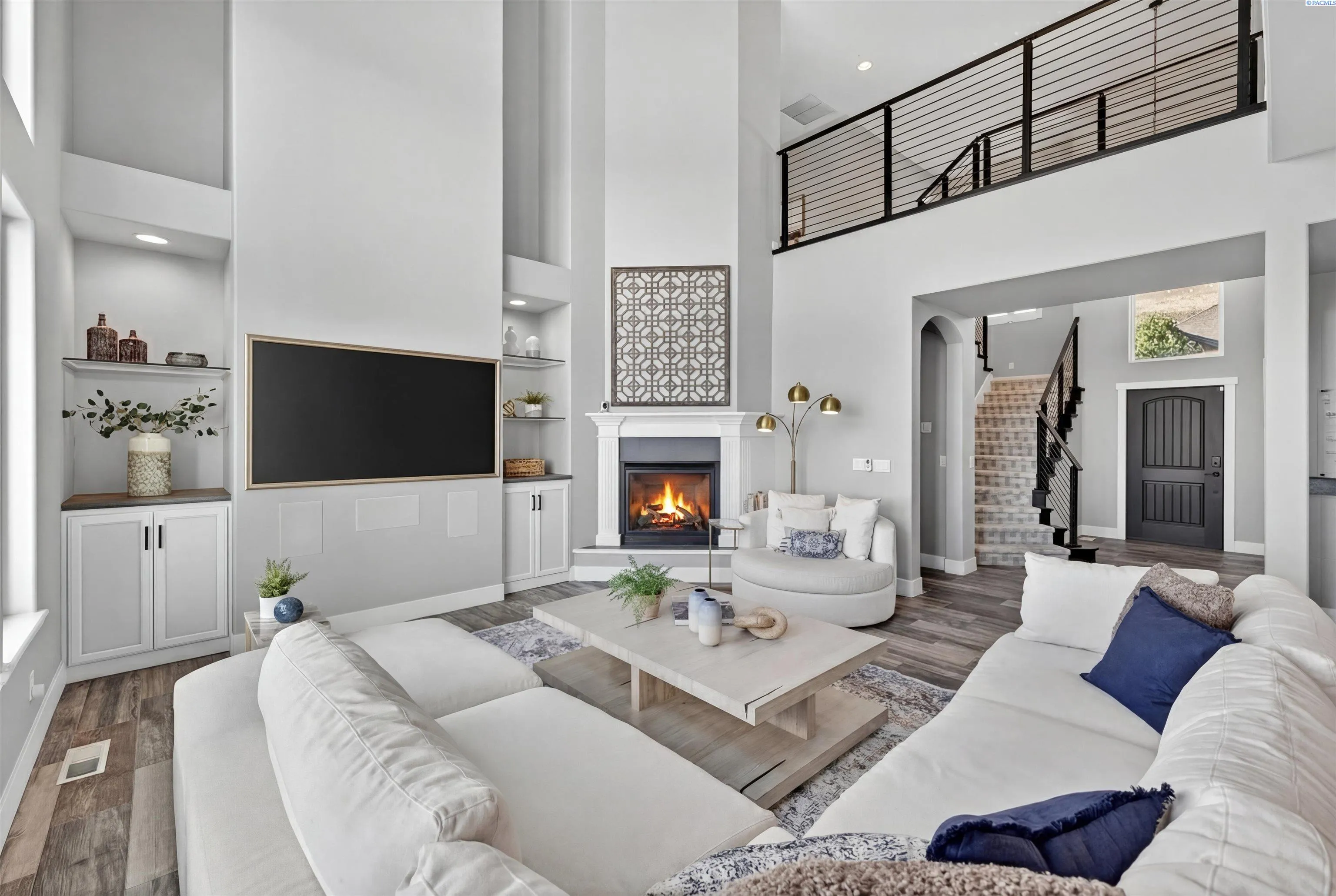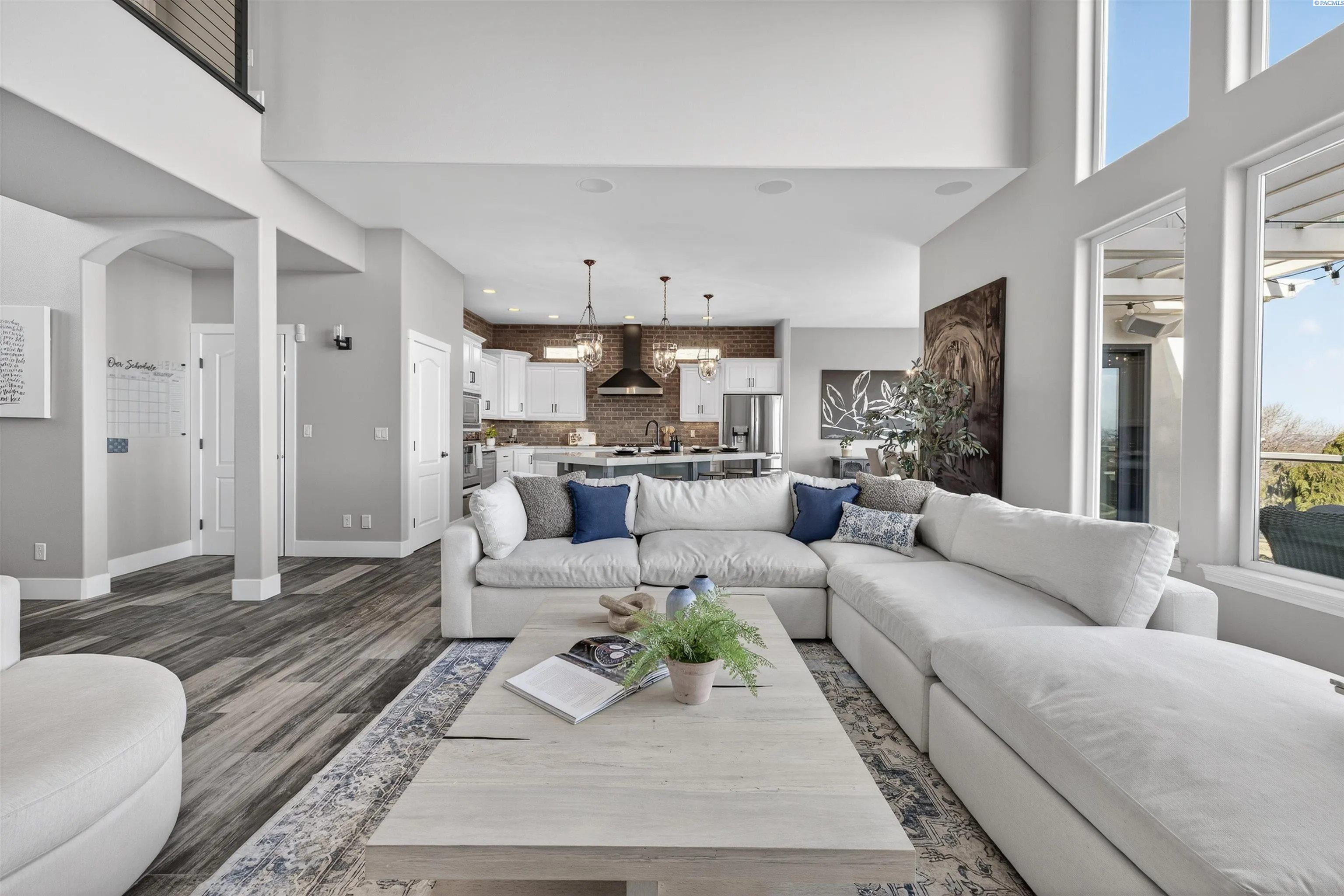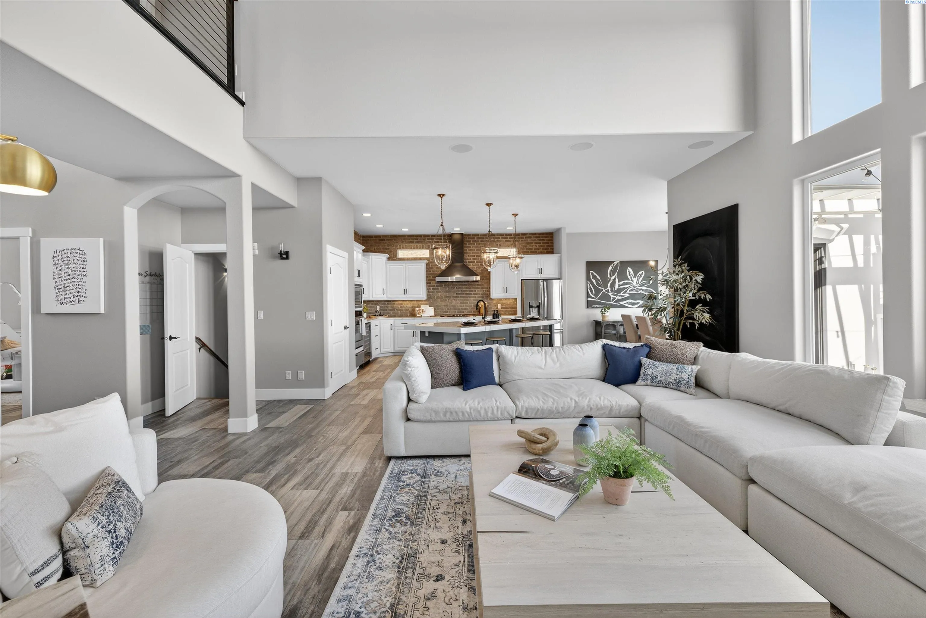 MLS# 291176 Welcome to an extraordinary view home in Inspiration Estates, one of the Tri-Cities’ most coveted neighborhoods. This is where luxury, lifestyle, and thoughtful design come together in a home truly built for living well. Set on a beautifully landscaped 1/3-acre lot, this stunning residence captures panoramic views and unforgettable sunsets from every level, including the expansive upper deck and walk-out lower patio designed for seamless indoor-outdoor living. Step inside to a statement entry with soaring ceilings and abundant natural light, opening into an open-concept great room, kitchen, and dining area designed for both everyday comfort and effortless entertaining. The updated kitchen blends modern style with practical function, featuring a gas cooktop with hood, beverage fridge, ZLINE Oven, Dacor microwave and warming drawer, and large island with seating – all perfectly positioned to connect to the deck for sunset dinners and summer gatherings. The main-level primary suite is a sanctuary with beautiful views and a spa-inspired ensuite bathroom with soaking tub, large tiled shower, dual vanities, and walk-in closet. Just off the entryway, a dedicated main-level office with French doors and natural light providing the perfect setting for working from home or creative projects. Upstairs, the home continues to impress with three additional bedrooms, including a second ensuite, a large bonus room ideal for a media room, game room, home office, or flexible fifth bedroom, and a full bathroom. With two ensuite bedrooms, the layout offers excellent flexibility for multi-generational living or extended guests. The walk-out lower level was designed with entertaining in mind. This expansive space is perfect for billiards, movie nights, game day gatherings, and hosting year-round, complete with a bar and a custom climate-controlled wine cellar that beautifully displays and protects your collection. Additional storage space offers room for a home gym, hobbies, or future expansion. Outside, the backyard transforms into your own private resort-style retreat. Enjoy a covered patio, outdoor kitchen, hot tub, two fire pit areas, and your very own putting green. This home offers the rare combination of views, convenience, and fun! All just minutes from grocery stores, restaurants, golf, movie theaters, and local favorite Wheat Head Brewing + under 20 minutes to Costco and Target. This is more than a home, it’s a place designed for enjoying the best of Tri-C
