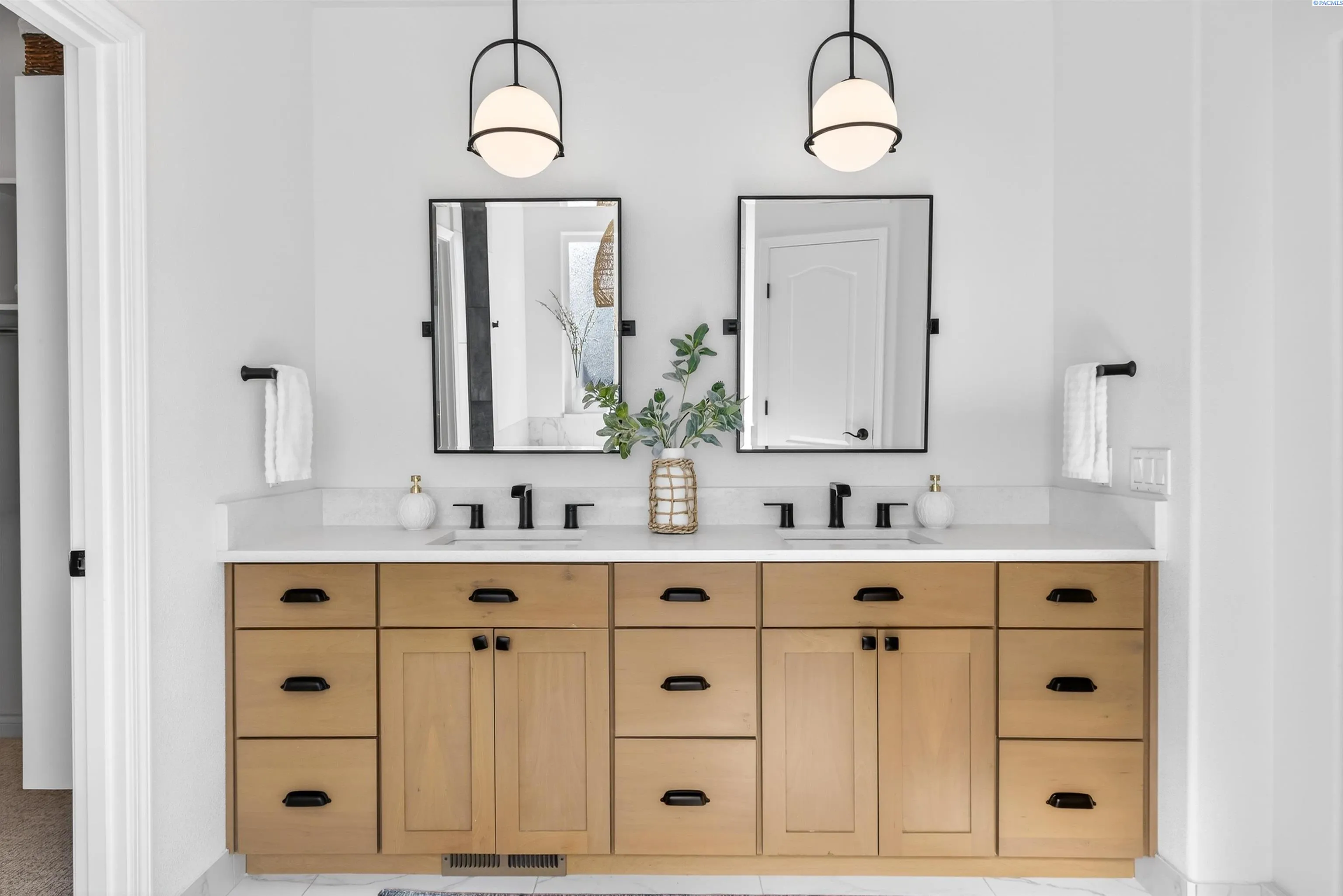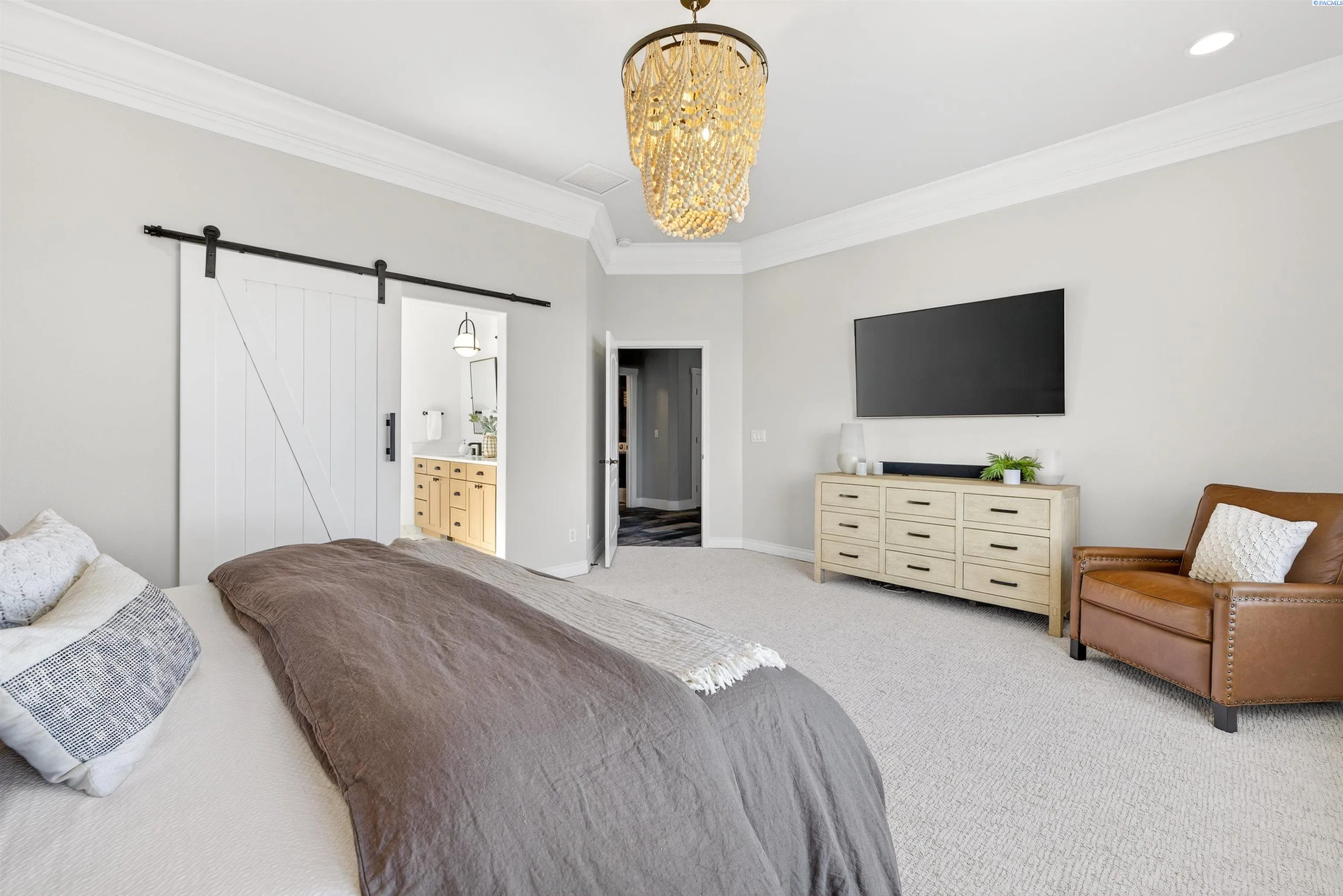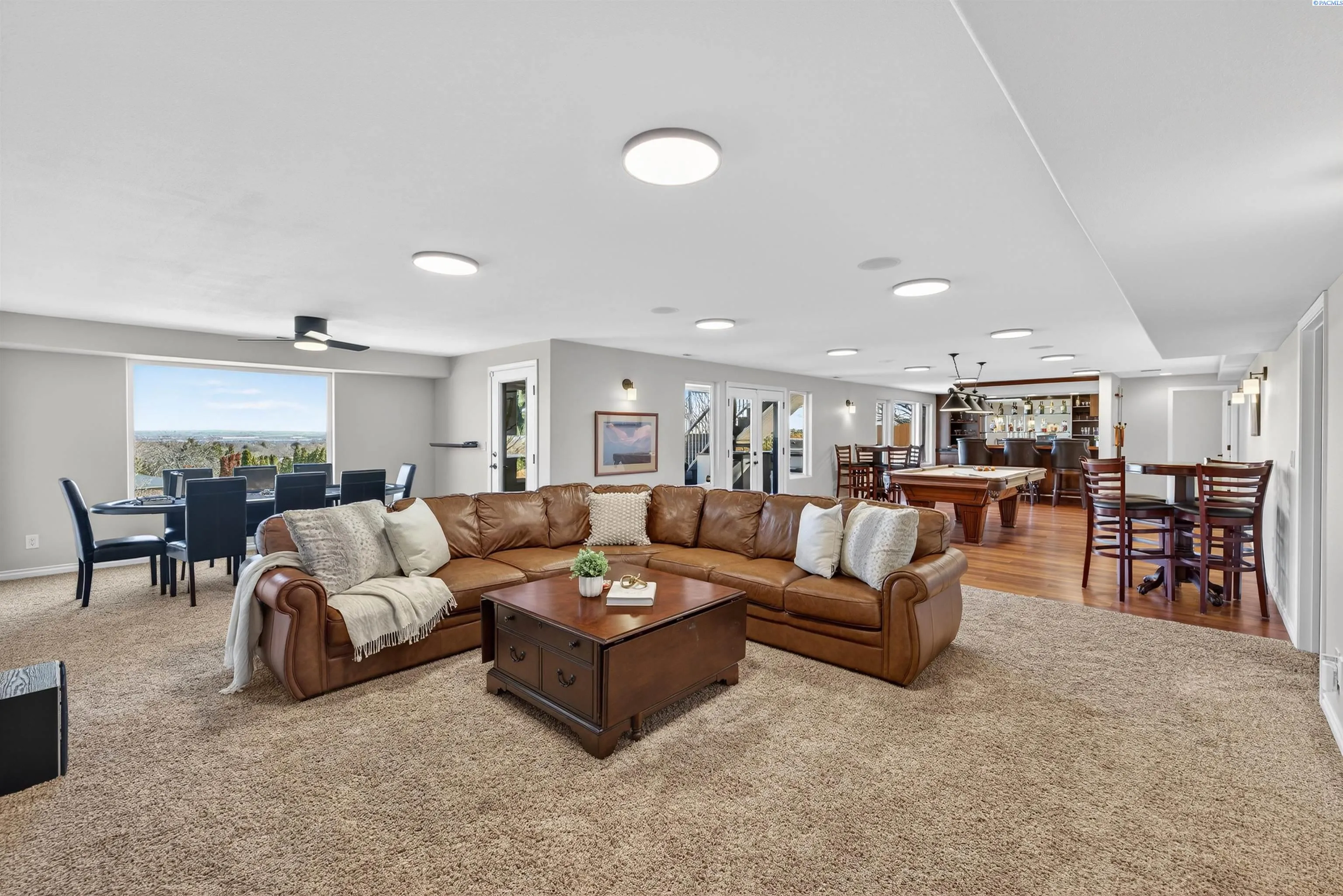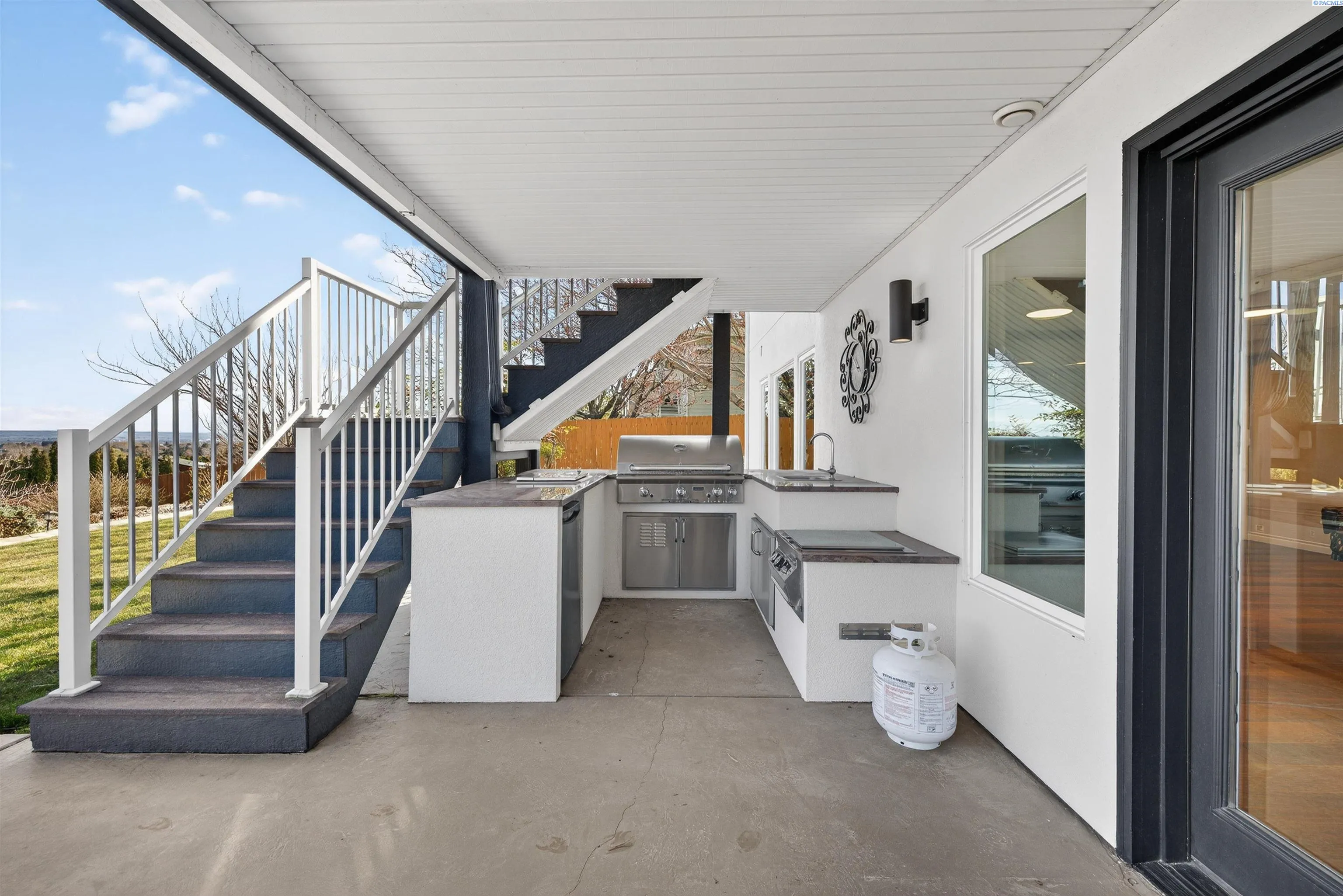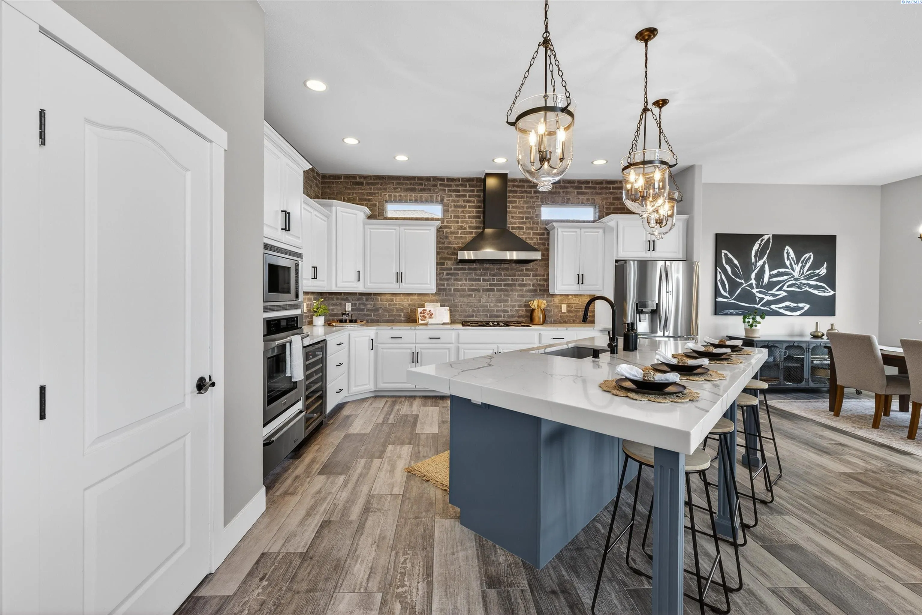 MLS# 291176 Welcome to an extraordinary view home in Inspiration Estates, one of the Tri-Cities’ most coveted neighborhoods. This is where luxury, lifestyle, and thoughtful design come together in a home truly built for living well. Set on a beautifully landscaped 1/3-acre lot, this stunning residence captures panoramic views and unforgettable sunsets from every level, including the expansive upper deck and walk-out lower patio designed for seamless indoor-outdoor living. Step inside to a statement entry with soaring ceilings and abundant natural light, opening into an open-concept great room, kitchen, and dining area designed for both everyday comfort and effortless entertaining. The updated kitchen blends modern style with practical function, featuring a gas cooktop with hood, beverage fridge, ZLINE Oven, Dacor microwave and warming drawer, and large island with seating – all perfectly positioned to connect to the deck for sunset dinners and summer gatherings. The main-level primary suite is a sanctuary with beautiful views and a spa-inspired ensuite bathroom with soaking tub, large tiled shower, dual vanities, and walk-in closet. Just off the entryway, a dedicated main-level office with French doors and natural light providing the perfect setting for working from home or creative projects. Upstairs, the home continues to impress with three additional bedrooms, including a second ensuite, a large bonus room ideal for a media room, game room, home office, or flexible fifth bedroom, and a full bathroom. With two ensuite bedrooms, the layout offers excellent flexibility for multi-generational living or extended guests. The walk-out lower level was designed with entertaining in mind. This expansive space is perfect for billiards, movie nights, game day gatherings, and hosting year-round, complete with a bar and a custom climate-controlled wine cellar that beautifully displays and protects your collection. Additional storage space offers room for a home gym, hobbies, or future expansion. Outside, the backyard transforms into your own private resort-style retreat. Enjoy a covered patio, outdoor kitchen, hot tub, two fire pit areas, and your very own putting green. This home offers the rare combination of views, convenience, and fun! All just minutes from grocery stores, restaurants, golf, movie theaters, and local favorite Wheat Head Brewing + under 20 minutes to Costco and Target. This is more than a home, it’s a place designed for enjoying the best of Tri-C