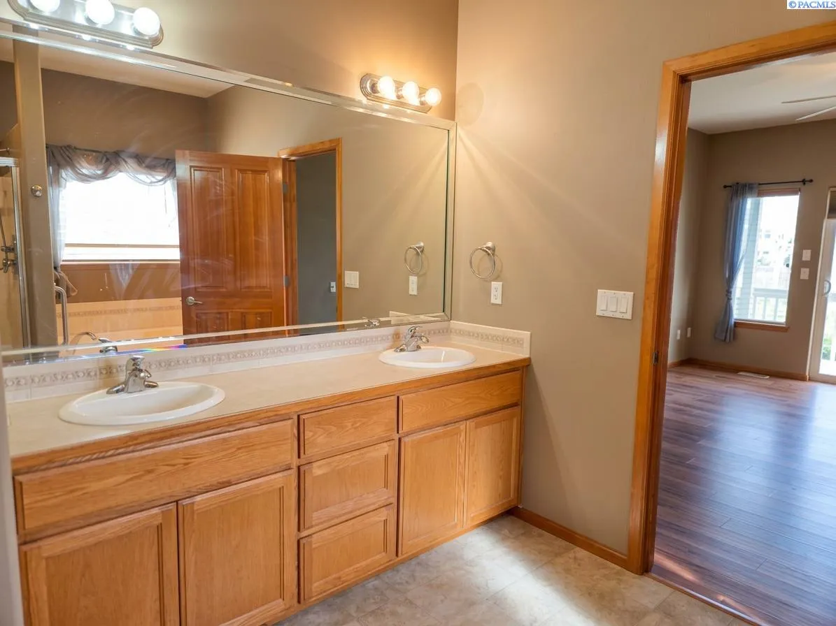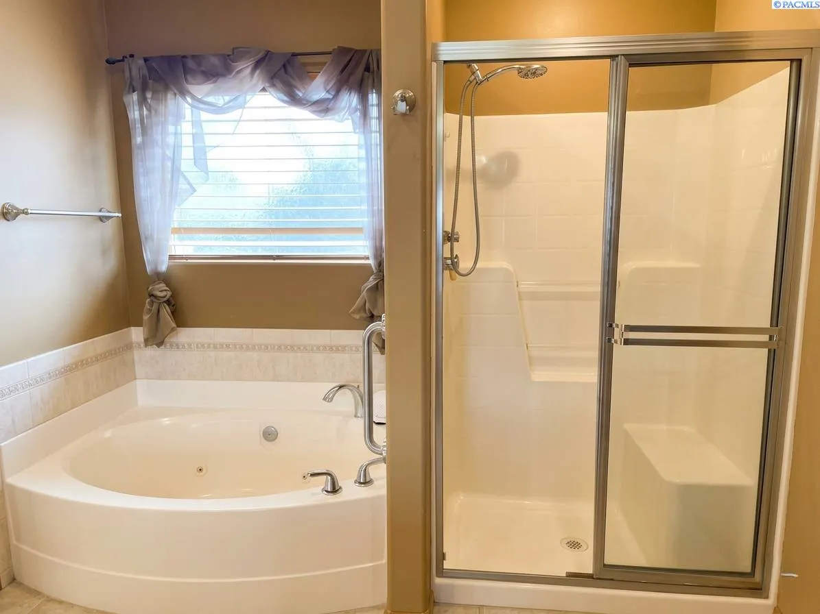MLS# 291213 Enjoy the ease of main-level living in this beautifully maintained home where all of your everyday essentials are conveniently located on the first floor, including the kitchen, living spaces, laundry, bathroom, and the spacious primary suite. The primary bedroom on the main floor offers a relaxing retreat with a walk-in closet, soaking tub, and a private slider leading to a walk-out deck. Upon entry, you’re welcomed by a sweeping curved staircase that adds character and leads to a second-floor sitting area, two additional bedrooms, and a full bathroom, perfect for guests, hobbies, or additional living space. The main level opens to a recently extended covered patio overlooking a serene, fully landscaped backyard with custom curbing, brand new block fencing, and mature landscaping on a large corner lot. A storage shed provides extra space for tools and outdoor equipment. Inside, the home features new luxury vinyl flooring, wood blinds on beautifully wood-wrapped windows throughout, a reverse osmosis water system, and a whole-home sound system withspeakers both inside and outside; perfect for entertaining. Additional updates include new HVAC and fresh exterior paint. The front of thehome showcases beautiful landscaping, excellent curb appeal, and a spacious 3-car garage. This home is a must-see!