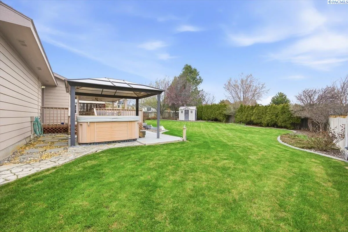 MLS# 291270 This fantastic single-level rambler offers 1,711 sq ft of comfortable living with 3 bedrooms, 2 bathrooms, and 3-car garage. Inside, enjoy an open kitchen with updated countertops and appliances. Spacious living areas designed for easy everyday living. The insulated third garage bay is perfect for hobbies, projects, or extra workspace. Outside is where this home truly shines a huge, landscaped yard, expansive deck with both covered and open spaces, and a relaxing hot tub under a gazebo create the perfect setting for entertaining or unwinding after a long day. Bring your RV — there’s dedicated parking with power hookup and dump station already in place. Plus, a storage shed and additional side access rooms provide plenty of space for all your needs. Located in a well established neighborhood, this home is clean, well cared for, and completely move-in ready.