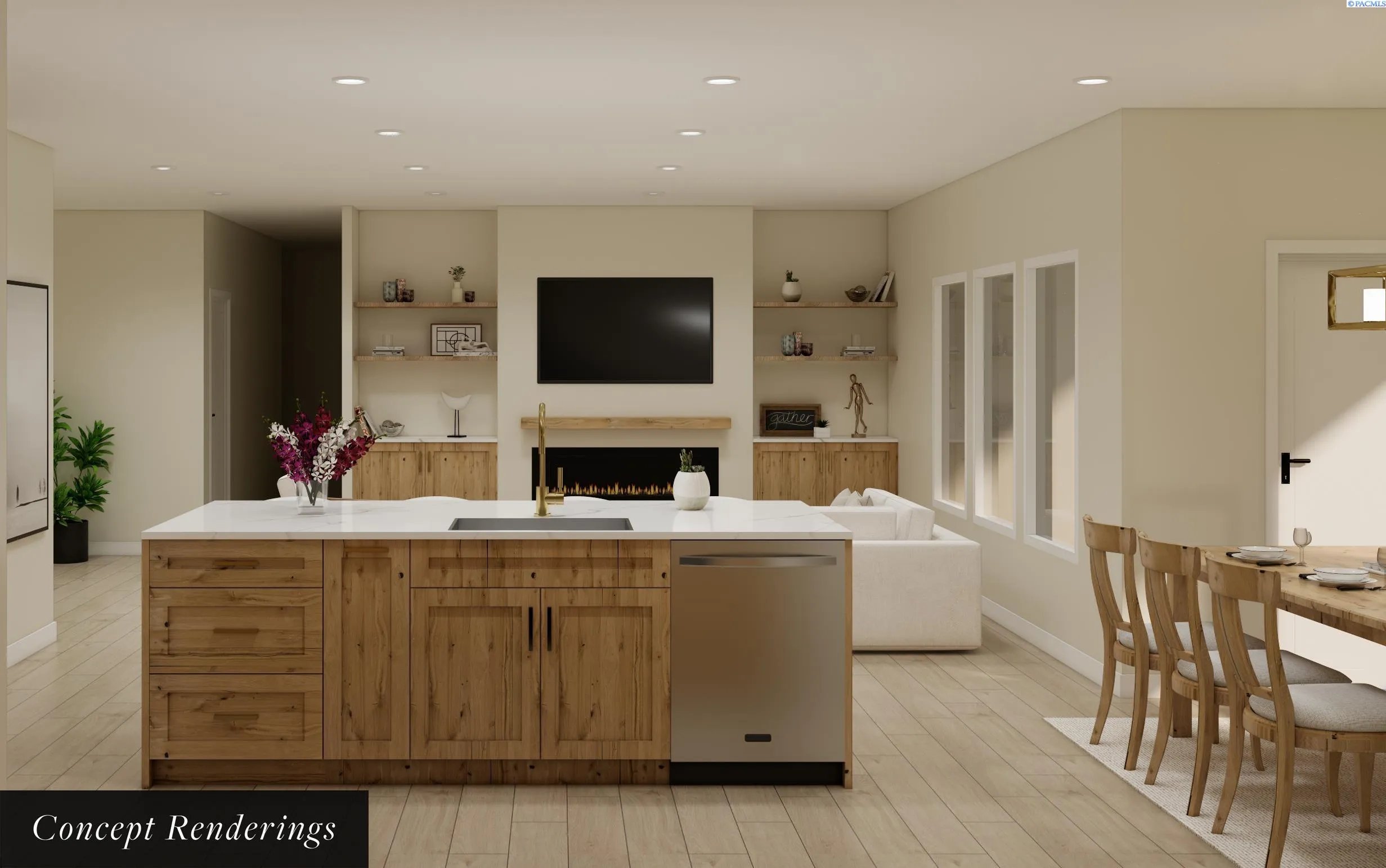 MLS#291274 Welcome to 4329 S Conway Place in Cherry Creek Estates, a beautifully finished new construction home offering space, functionality, and thoughtful design throughout. With 2,686 square feet of living space, this 5-bedroom, 3-bath home features a versatile layout that works for a wide range of lifestyles. The main level is anchored by an open-concept living area with 9-foot ceilings, a modern electric fireplace, and custom built-ins topped with quartz. The kitchen brings together shaker-style cabinetry with soft-close doors and drawers, quartz countertops, a large island, pantry, and a full Frigidaire appliance package. Brushed champagne hardware and matching plumbing fixtures add a warm, upscale finish throughout the home. The primary suite is conveniently located on the main floor and features a tile shower with ceiling-mounted rain head, dual vanity, and walk-in closet. A second bedroom on the main level offers flexibility for guests or a home office. Downstairs, the finished daylight basement expands the living space with additional bedrooms, a large family room, and a theater or bonus room, perfect for movie nights, hobbies, or hosting friends and family. Additional details include a custom entry bench with cubbies and hooks, quartz surfaces throughout the home, wired surround sound, and a fully finished 3-car garage. Outdoor living is just as inviting with a covered Trex deck and balcony overlooking the backyard. Built by Alpha Homes Tri Cities, this home combines modern finishes with practical design in a desirable Kennewick neighborhood close to schools, parks, and everyday amenities. Builder is offering up to $12,000 towards buyer closing costs or rate buy down. Preferred Lender offering additional incentive for qualified buyers. Schedule your private showing and come experience everything this brand new home has to offer.