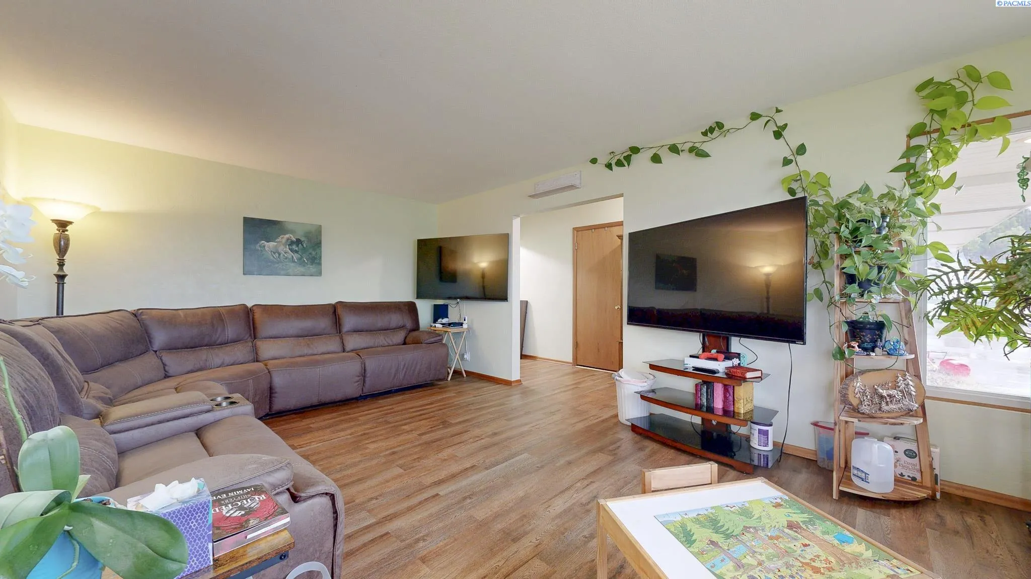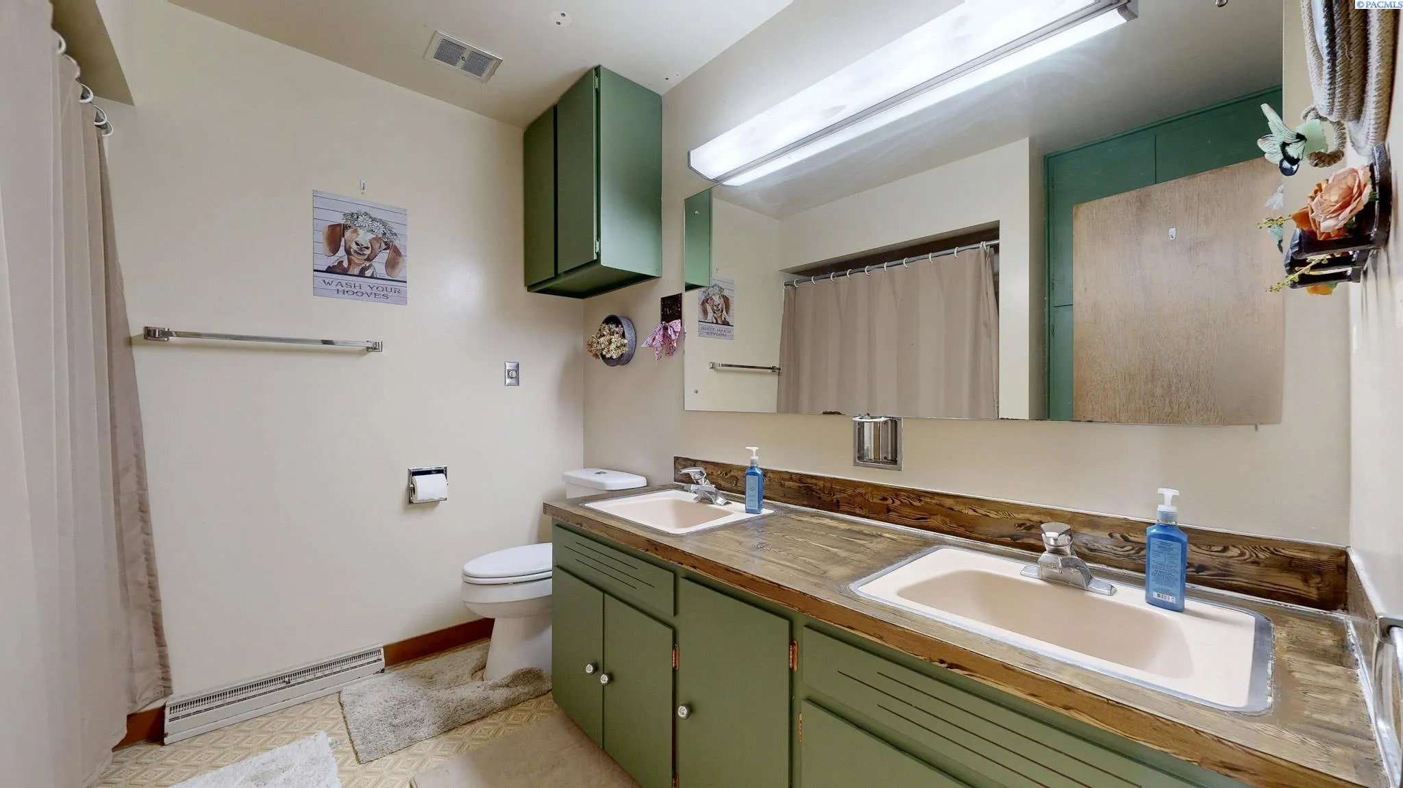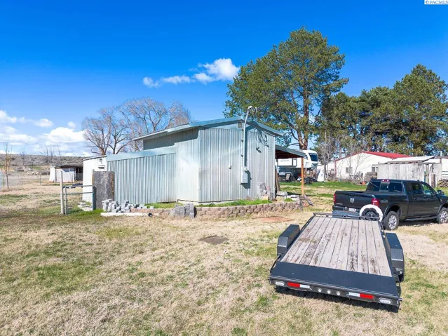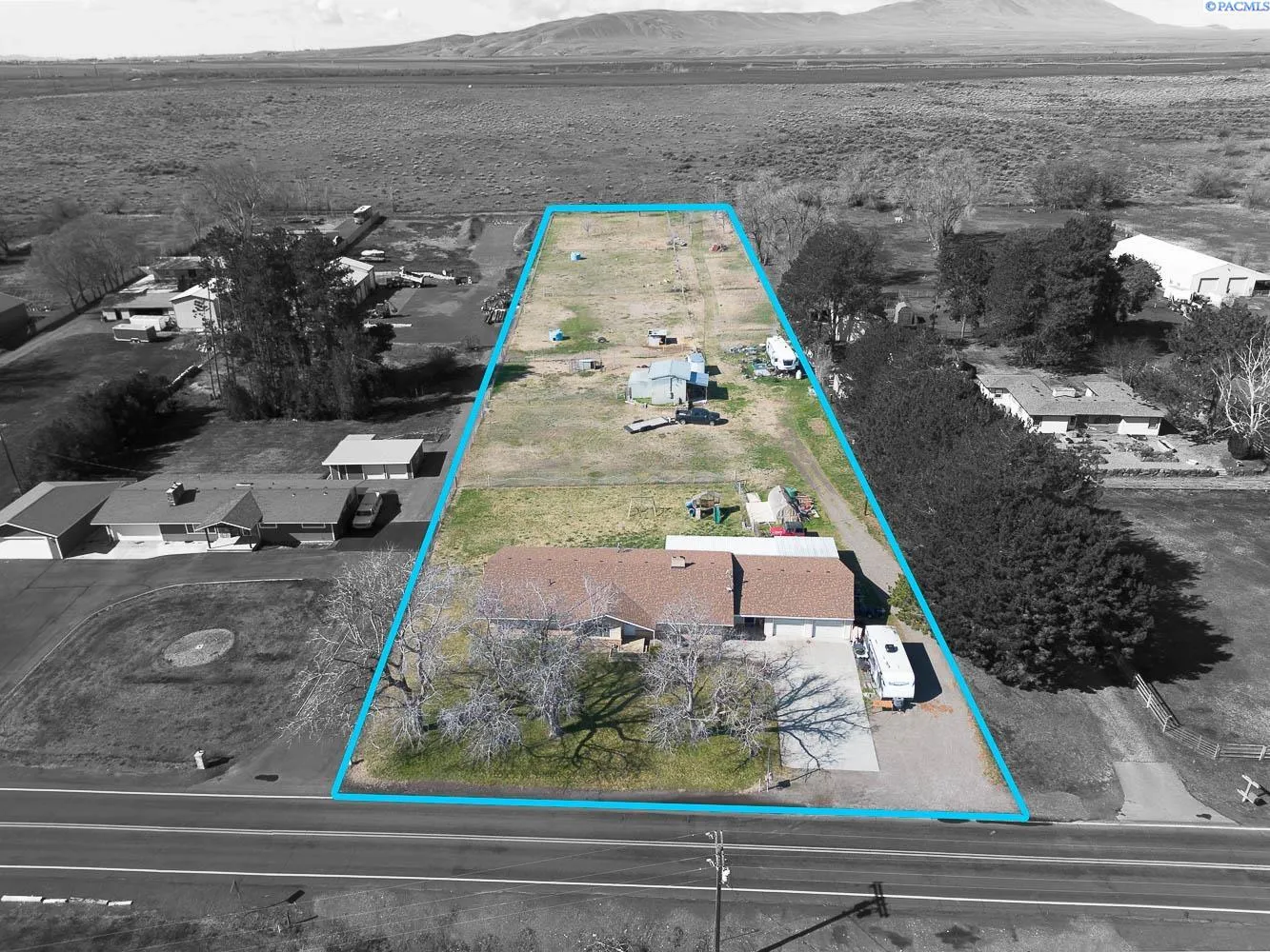 Discover the possibilities with this unique 3.02-acre property in desirable West Richland, offering space, functionality, and a touch of nostalgic charm. This 4 BD 2 BA ranch-style rambler retains its original 1958 character, highlighted by charming retro details and multiple built-ins throughout, including a display case, bookcase, and dresser that add both personality and practical storage. The home features a traditional formal living room along with a spacious family room anchored by a classic masonry fireplace—perfect for gathering and relaxing. The kitchen embraces its vintage roots with original 1958 metal cabinetry, a rare and charming nod to mid-century design. All four bedrooms are generously sized, including a primary suite with a private attached ¾ bath. Updated luxury vinyl plank flooring runs through the main living room, hallway, and two bedrooms, offering a blend of durability and modern style. An enclosed breezeway connecting the home and garage provides valuable bonus space, ideal for extended pantry storage or everyday organization. The dedicated laundry, utility, and mudroom includes utility sink hookups and adds to the home’s practical layout. Step outside to enjoy the covered patio overlooking the fenced backyard, complete with a play structure and swing set. The property’s true value lies in its expansive acreage and agricultural-ready setup. Outbuildings include a barn/shop, and the fenced pasture features four separate pens designed for easy rotation of grazing animals. A full-property sprinkler system is connected throughout, with power and irrigation billed at an agricultural discount rate and the benefit of grandfathered irrigation rights. Additional improvements include a recently drilled well with a new well head and pump, plus a brand new roof. RV enthusiasts will appreciate the open RV parking with both power and water hookups, along with a convenient camp dump connection to sewer. This is a rare opportunity to own acreage in West Richland with room to grow, farm, or simply enjoy wide open space while embracing the charm of a classic mid-century home.