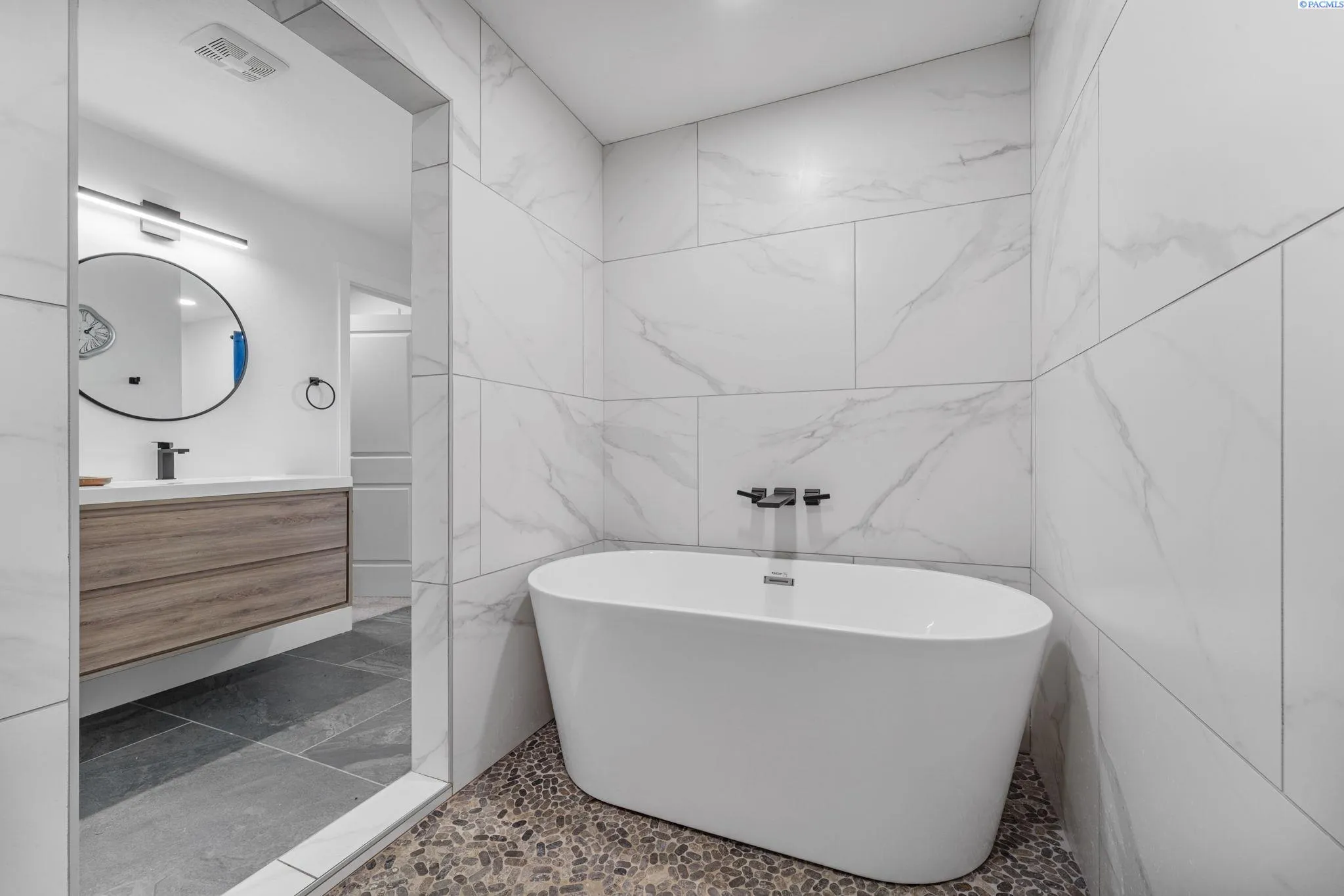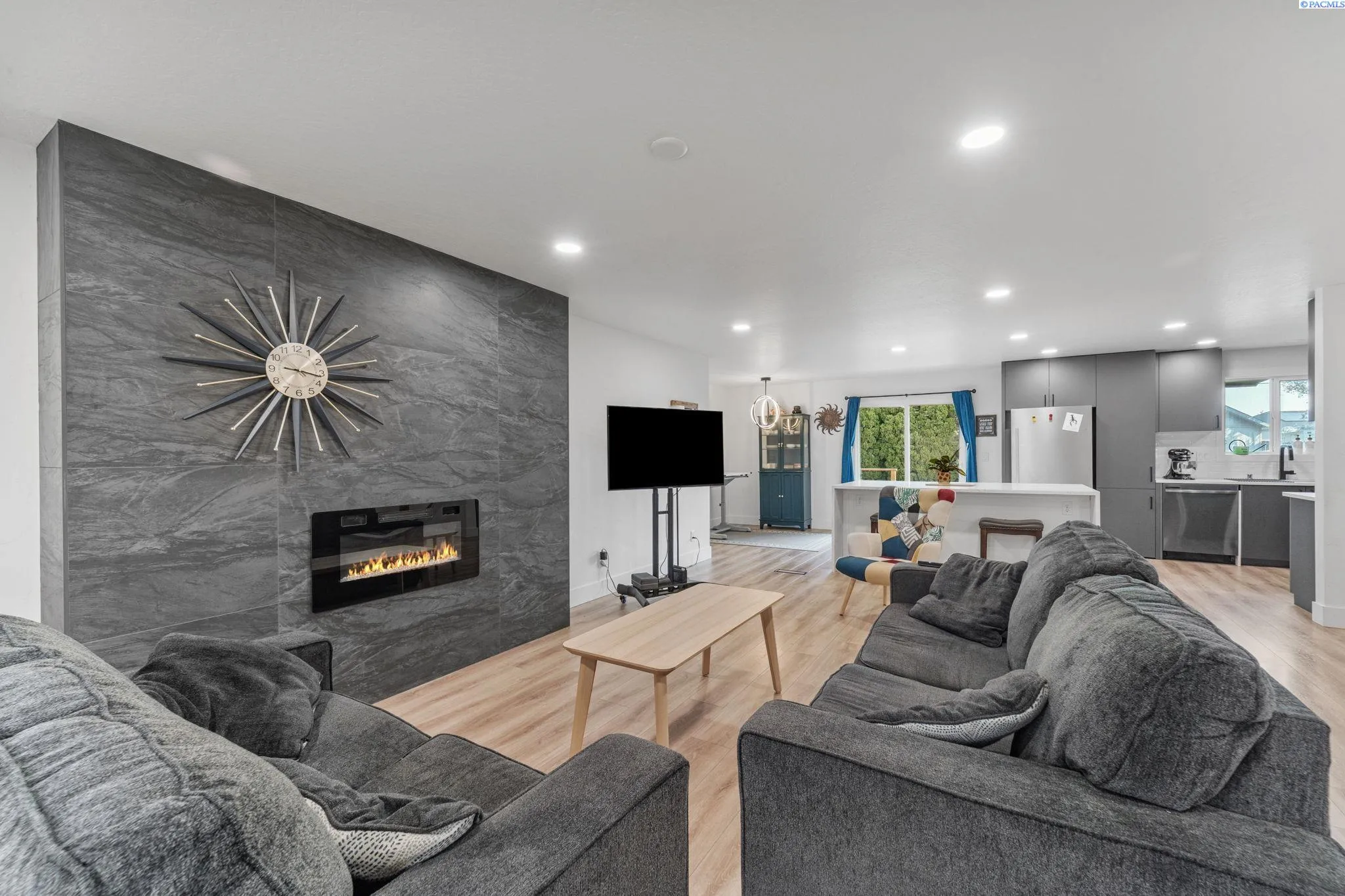 MLS# 287598 Beautifully renovated home from the studs up (2022) with all new plumbing, electric and finishes, seamlessly blending modern comforts with the style and character of midcentury modern construction. You will fall in love with its character as soon as you pull up, with its stylish combination of stained wood and metal siding. This house was designed to turn heads. When you step inside your eye is immediately drawn to the show stopping electric fireplace with its floor to ceiling tile. The fireplace insert adds ambiance and warmth while staying friendly to the environment. The gorgeous wood flooring runs throughout the home tying the space together. The kitchen is as beautiful as it is practical with its oversized island and plenty of built in storage. Whether you are you a culinary savant or just love cooking gadgetry, you will appreciate the walk-in pantry. Just down the hall from the living room are two bedrooms, including the large primary with an oversized ensuite, featuring a walk-in shower with dual rain heads, and modern soaking tub. Downstairs, you’ll find a second living area complete with a kitchenette, laundry, office, two additional bedrooms, and a spacious great room with a wood-burning fireplace. With its dedicated entrance, the lower level is perfect for multigenerational living or rental income. Sitting on an oversized .35 acre lot, the backyard is ready to be transformed into your personal oasis, with plenty of space for a garage-mahal, inground pool or mini-homestead this flat lot with easy access is just waiting for your touch. This home is a true one of a kind gem with modern finishes, timeless character, endless possibilities and only blocks from the river and park system.