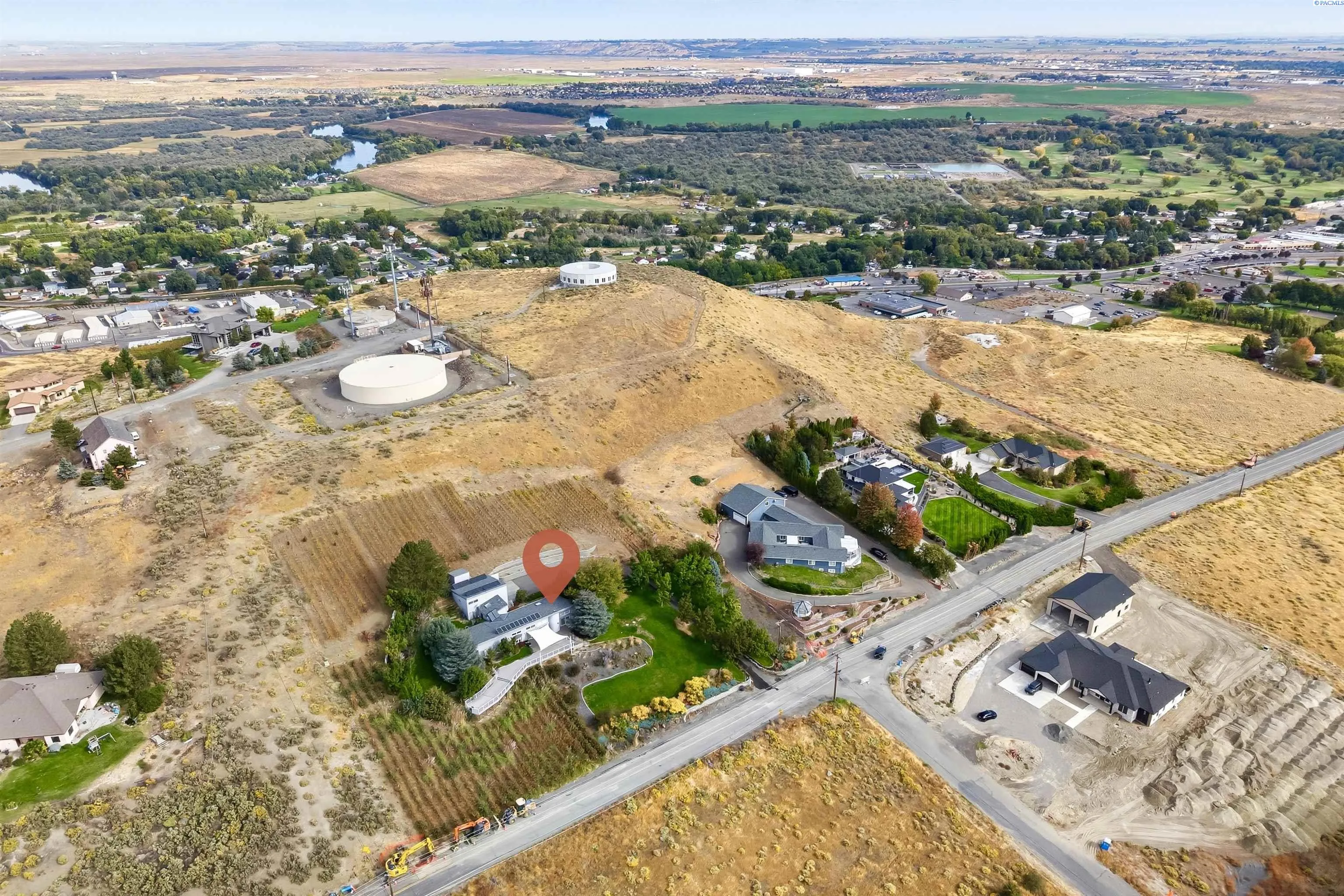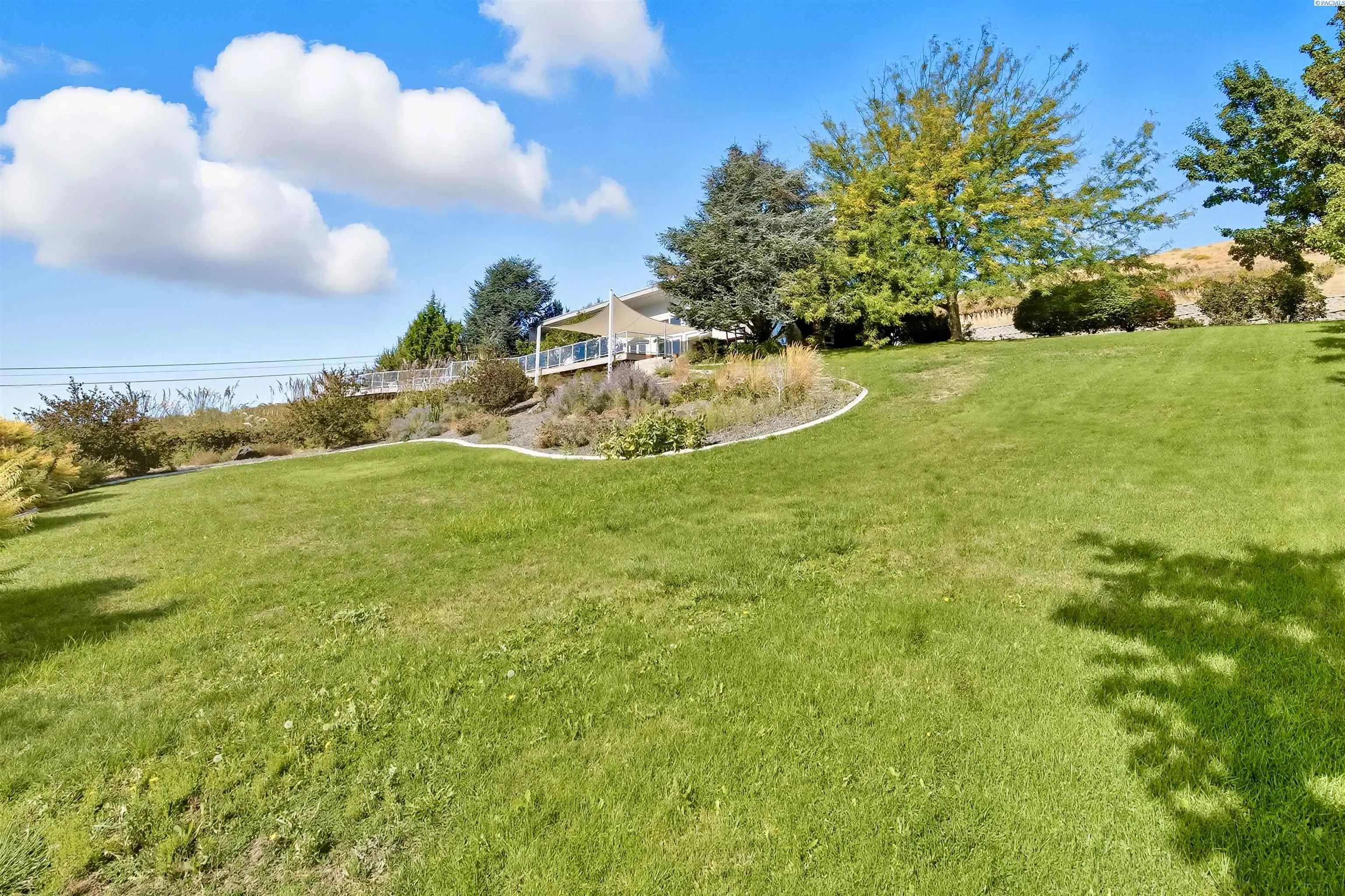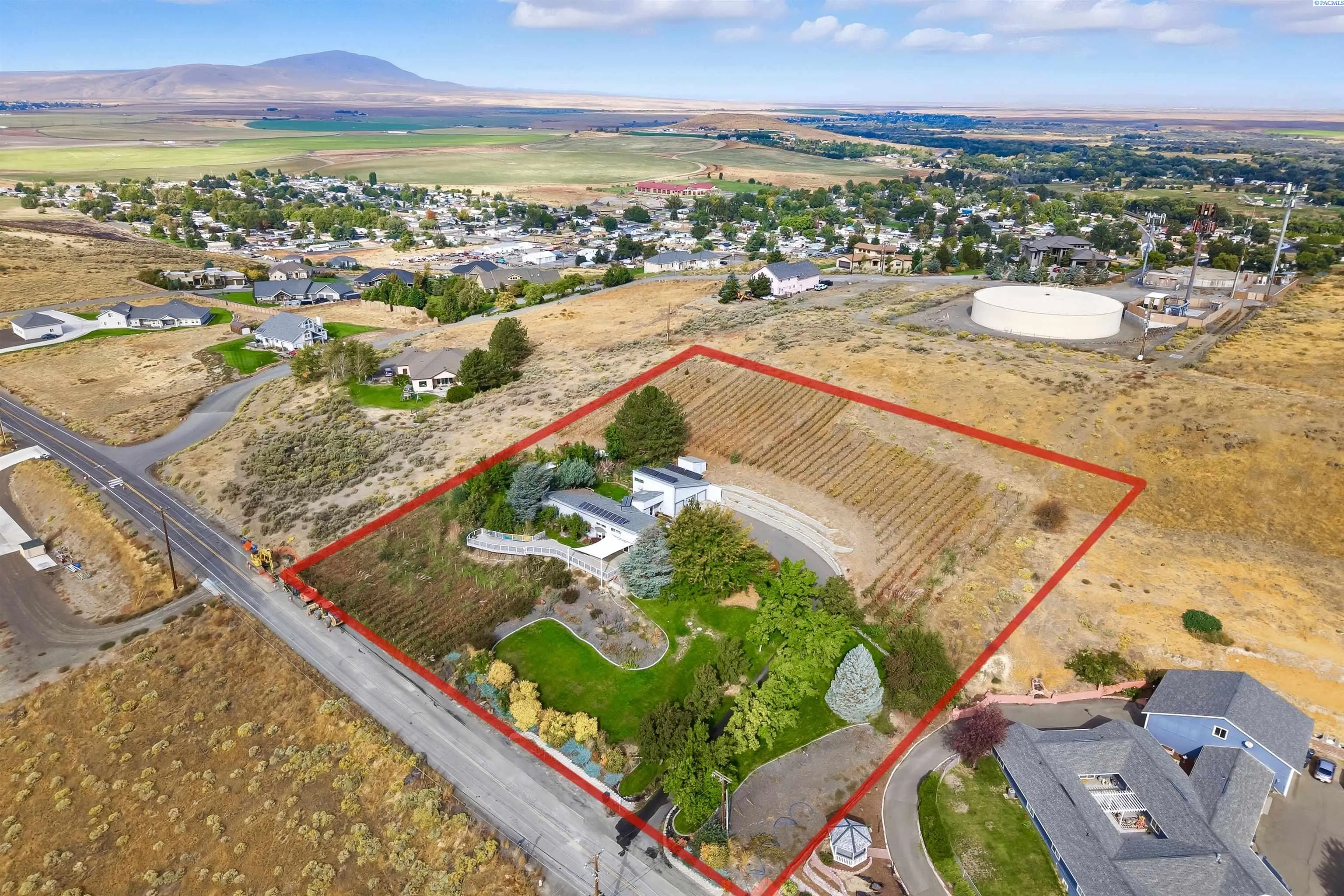MLS# 288105 Welcome to one of West Richland’s most coveted lifestyle properties, where refined living meets the timeless beauty of wine country. Set on 2.5 acres with sweeping panoramic views, this 3,354 sq. ft. luxury rambler is more than a home, it’s a private retreat designed for those who value space, elegance, and connection to the land.Inside, you’ll find four bedrooms and three baths, including dual primary suites thoughtfully placed at opposite ends of the home, perfect for multi-generational living or long-term guests. The interiors are beautifully updated with Dansk engineered hardwood floors, designer paint, motorized blinds, and a full stainless steel appliance package featuring a 5-burner propane cooktop. The great room, anchored by a high-efficiency gas fireplace framed in custom brickwork, invites conversation and comfort with stunning views at every angle. Upstairs, a 500+ sq. ft. bonus space adds flexibility for an office, media room, or private lounge.Step outside and you’ll discover over 1,600 sq. ft. of wraparound decking, designed for entertaining, relaxing, or simply watching the sunset over the vineyards. This property even comes with its own established, producing vineyard—a rare opportunity to embrace the lifestyle that makes the Tri-Cities so unique. A solar installation provides yearly energy savings, making this estate as efficient as it is beautiful. Motivated Sellers are offering up to three percent in closing cost.