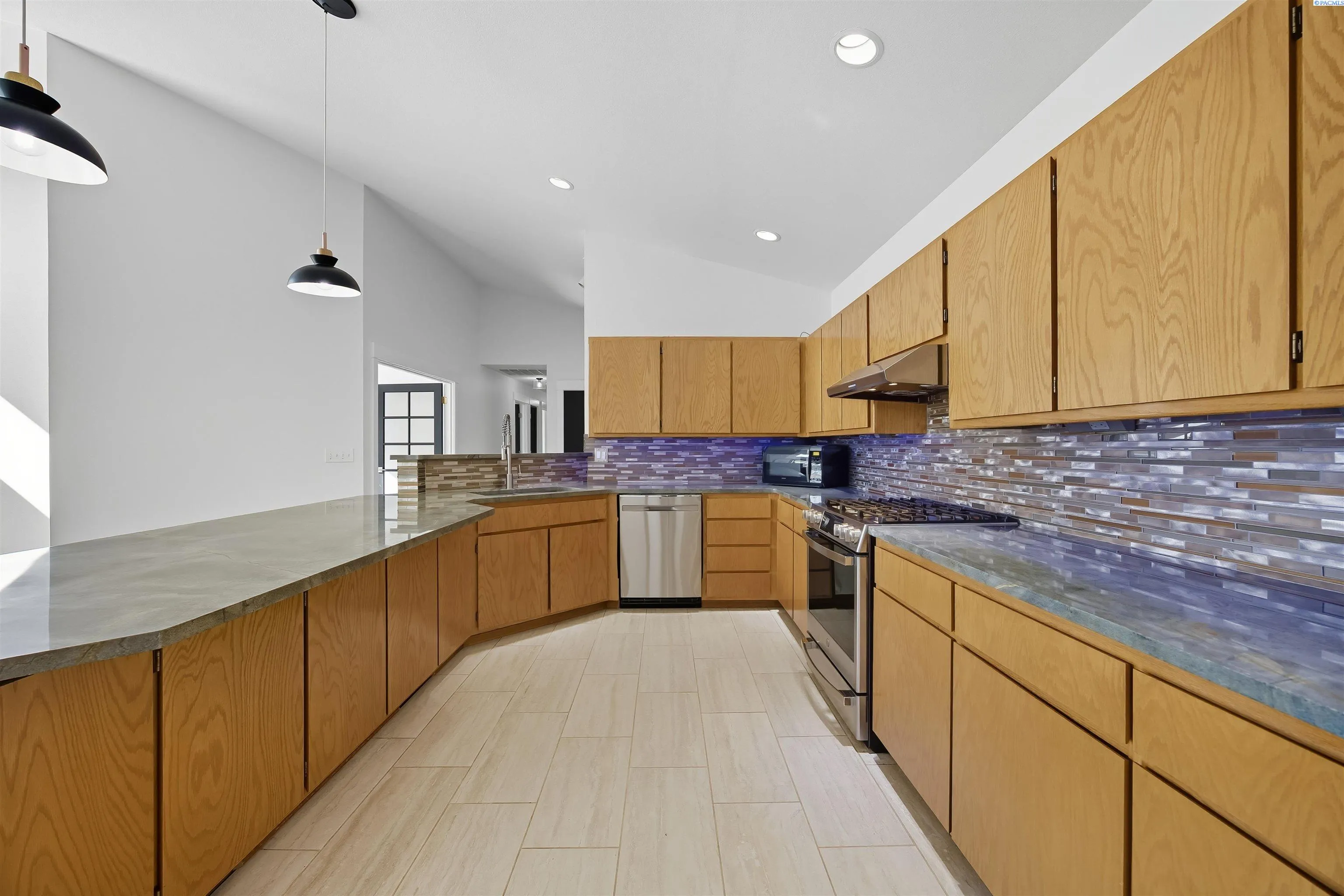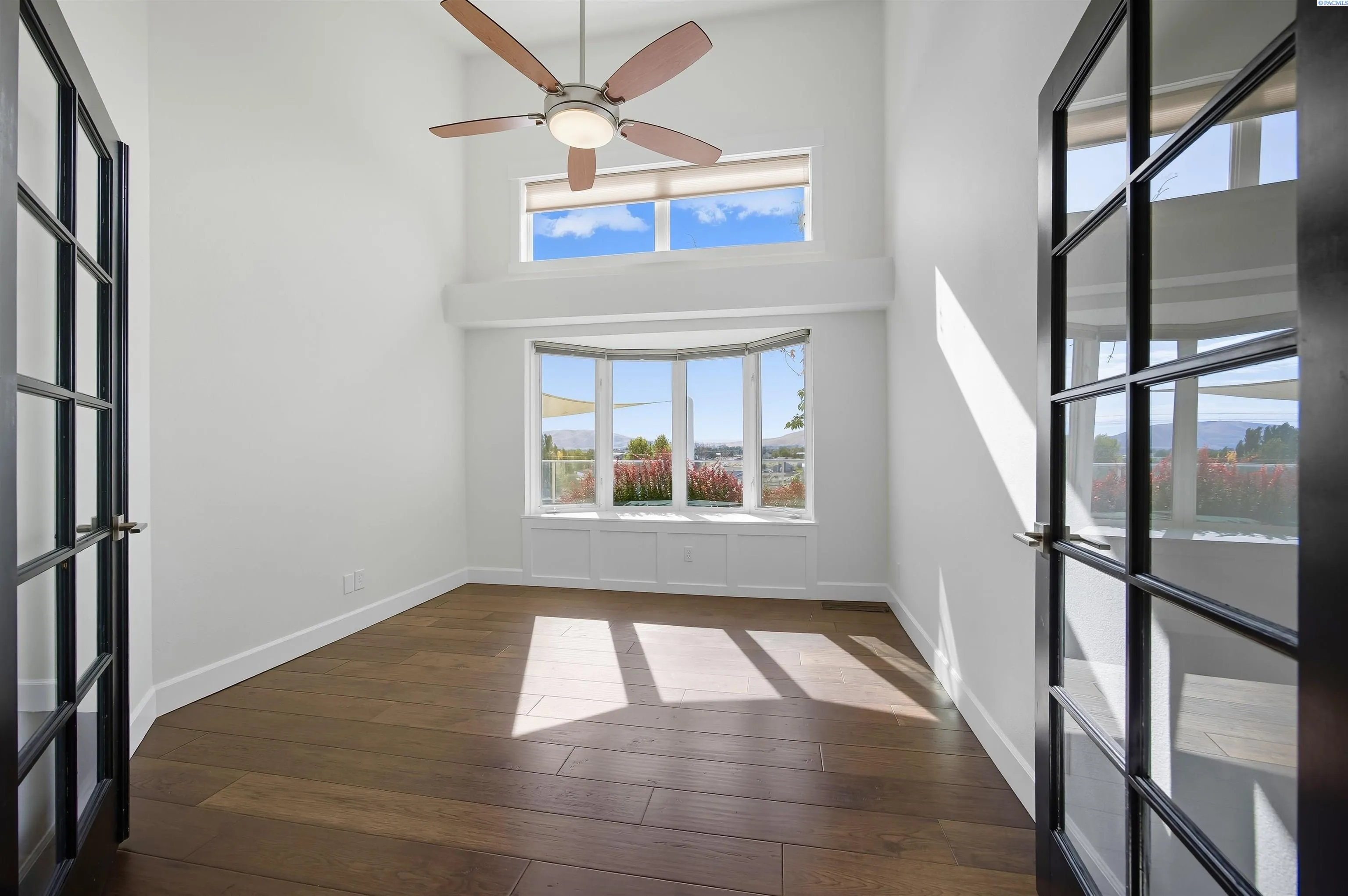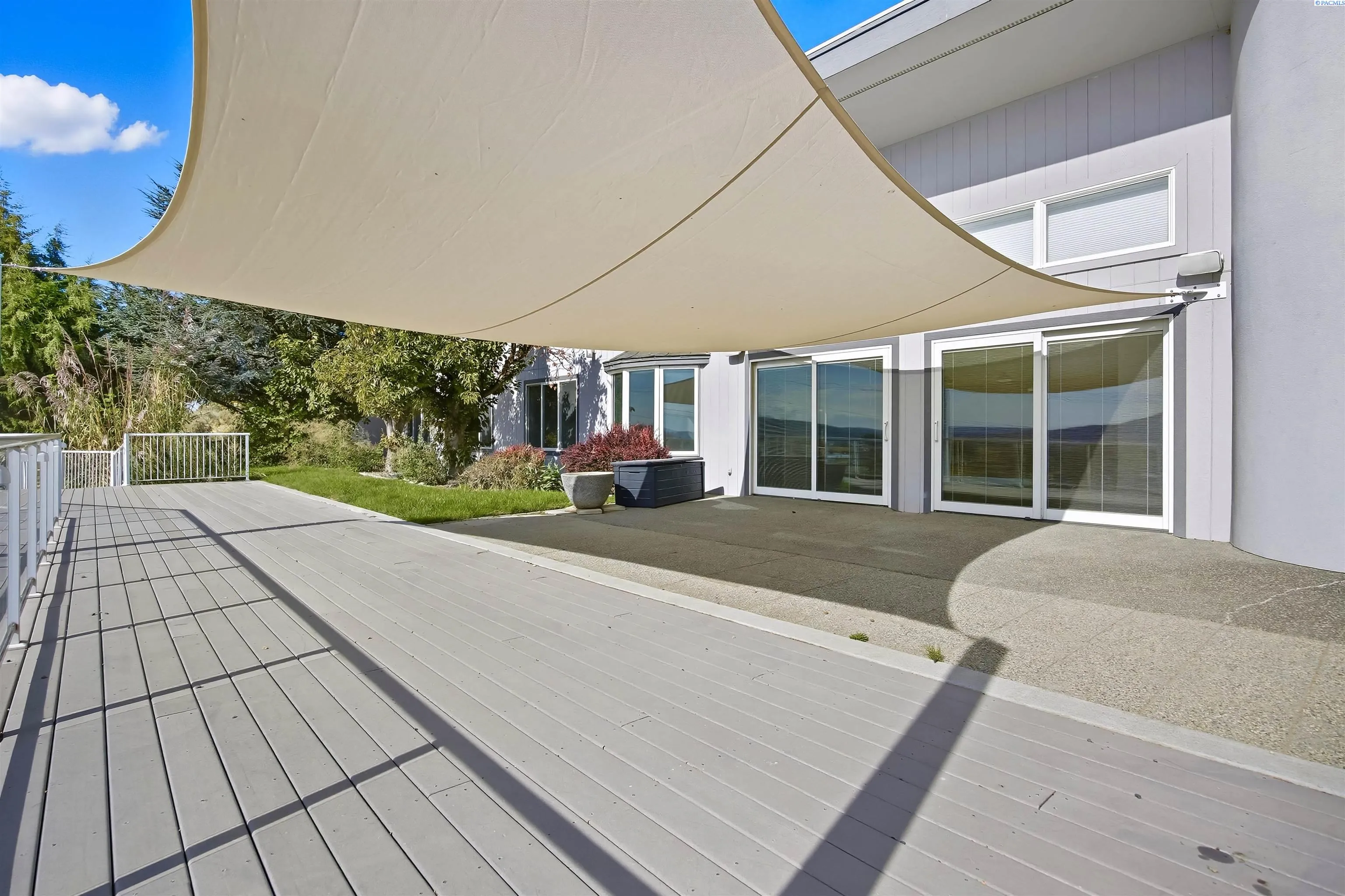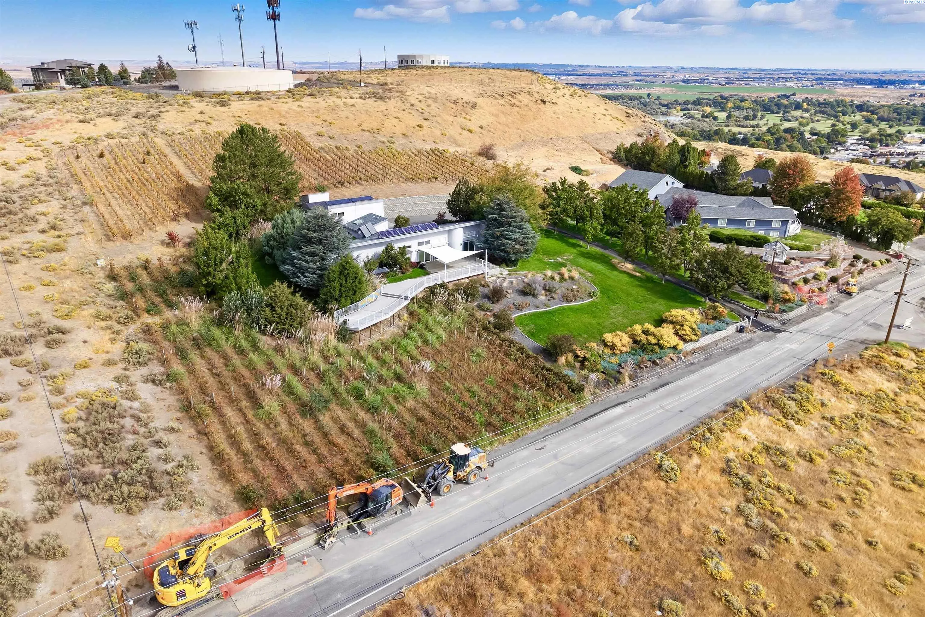 MLS# 288105 Welcome to one of West Richland’s most coveted lifestyle properties, where refined living meets the timeless beauty of wine country. Set on 2.5 acres with sweeping panoramic views, this 3,354 sq. ft. luxury rambler is more than a home, it’s a private retreat designed for those who value space, elegance, and connection to the land.Inside, you’ll find four bedrooms and three baths, including dual primary suites thoughtfully placed at opposite ends of the home, perfect for multi-generational living or long-term guests. The interiors are beautifully updated with Dansk engineered hardwood floors, designer paint, motorized blinds, and a full stainless steel appliance package featuring a 5-burner propane cooktop. The great room, anchored by a high-efficiency gas fireplace framed in custom brickwork, invites conversation and comfort with stunning views at every angle. Upstairs, a 500+ sq. ft. bonus space adds flexibility for an office, media room, or private lounge.Step outside and you’ll discover over 1,600 sq. ft. of wraparound decking, designed for entertaining, relaxing, or simply watching the sunset over the vineyards. This property even comes with its own established, producing vineyard—a rare opportunity to embrace the lifestyle that makes the Tri-Cities so unique. A solar installation provides yearly energy savings, making this estate as efficient as it is beautiful. Motivated Sellers are offering up to three percent in closing cost.