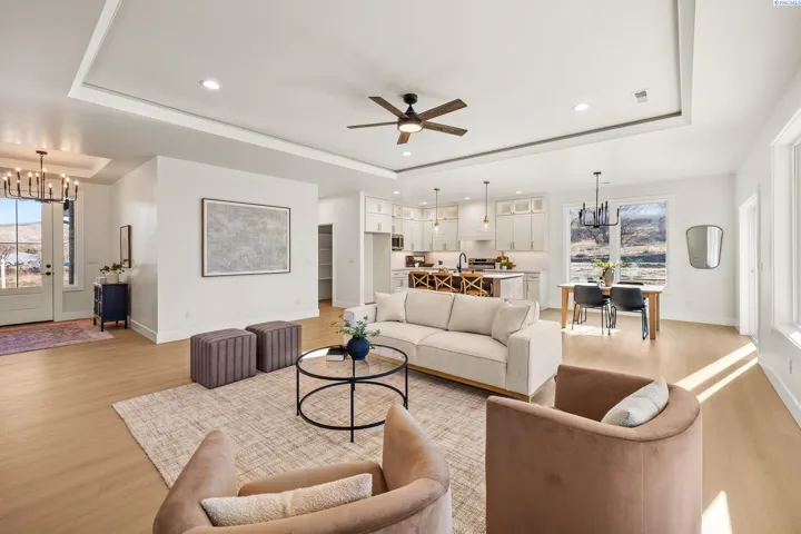 Welcome home! This new construction home built by a local distinguished builder is perfectly located on a .66 acre lot in a serene, rural neighborhood, surrounded by the beautiful Kiona Hills and vineyards. Wake up to the breathtaking rolling hills, scenic views, and tranquility! This home includes 4 bedrooms + den/office, 3 full bathrooms, 3-car garage, and a fully sized attached 14ft by 50ft RV Bay/Shop! Need room for your RV, boat, and extra toys? This is the home for you! Special features include: expansive and open great area, electric fireplace, walk-in pantry, luxurious master suite and master bathroom, bonus room, fully sized RV bay/shop, and an oversized backyard covered patio- perfect for family gatherings and summer BBQs! The kitchen showcases sleek stainless-steel appliances, a large island, soft-close cabinets, a walk-in pantry, modern countertops, and luxurious glass pendants. Discover warmth, comfort, and elegance within the details and design of this home! Perfectly located in a quiet neighborhood, this home is close to schools, shopping, dining, and quick freeway access. Contact your favorite realtor today!