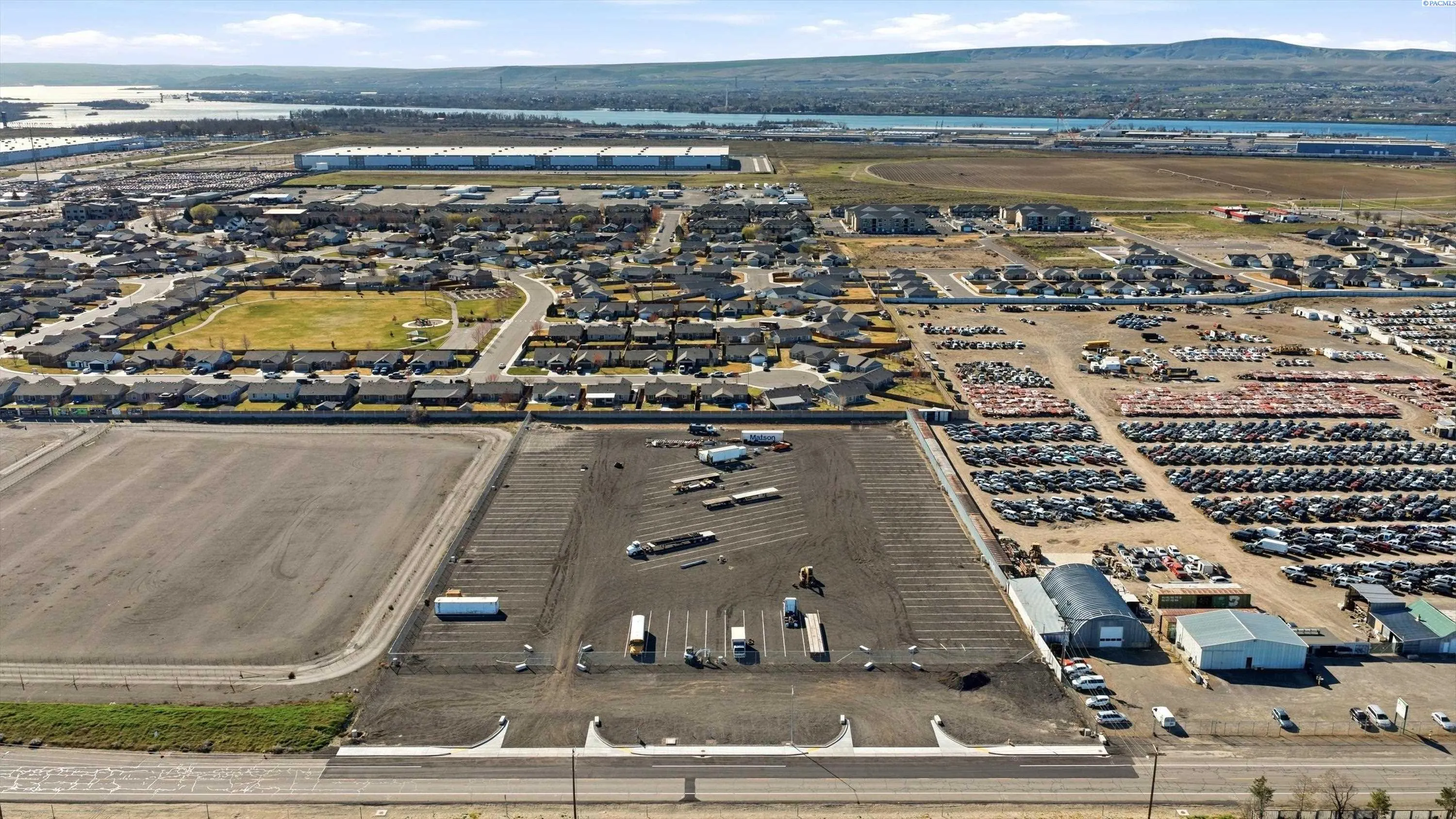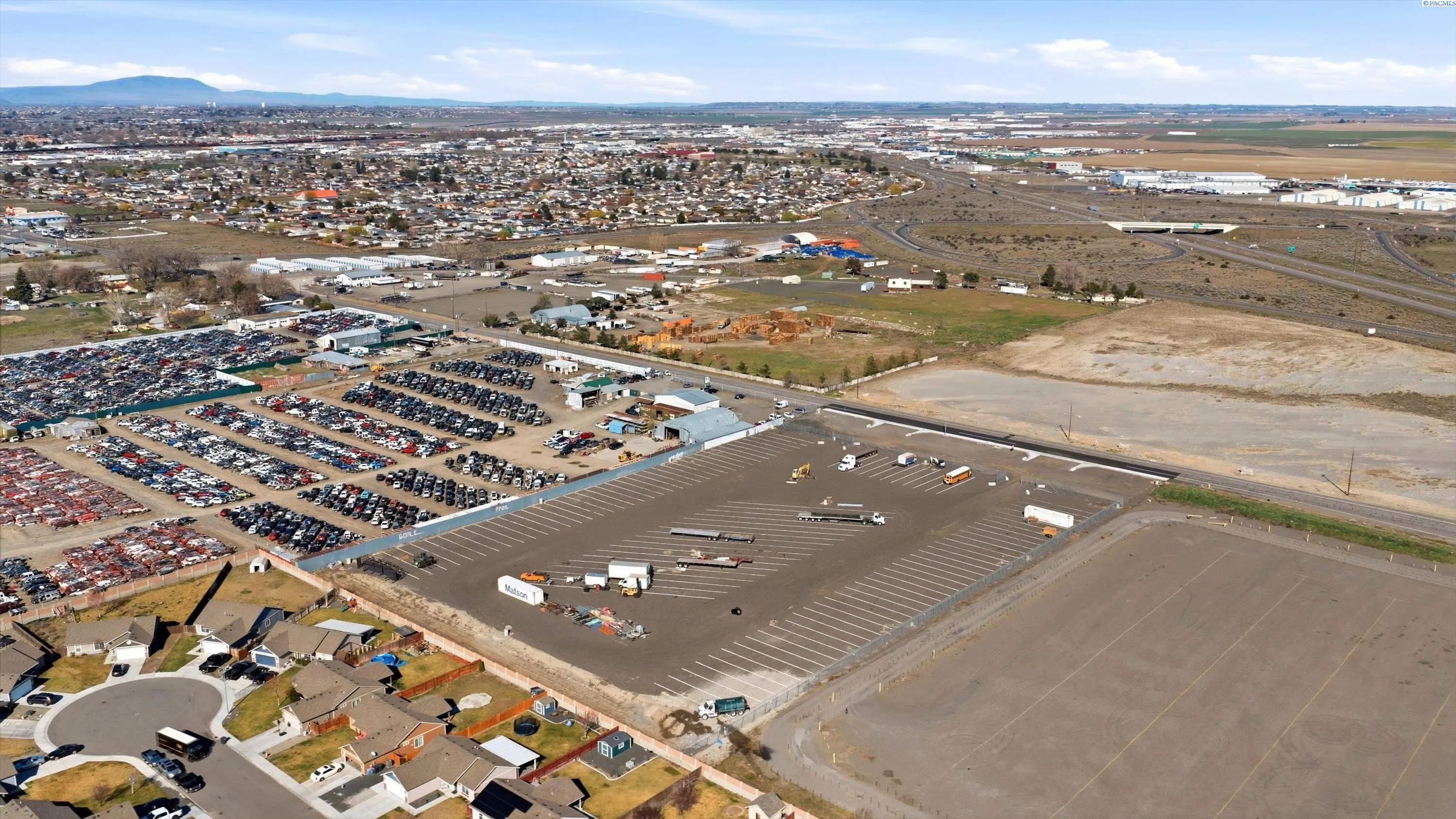 Great commercial property located in high industrial growth area. Property is graded, graveled, fenced, lit, all road improvements are completed and utilities to the property. Perfect site for trucking company looking to build office/shop with parking ready to go or build a truck parking business. Cannot be used for overnight inhabited truck parking within 250′ of residential, but property is deep enough to allow it on the northern portion. Zoned C-3. Road connection to Road 40 E (Amazon DC’s road) will be completed by the City of Pasco this year. Two parcels included in this sale.