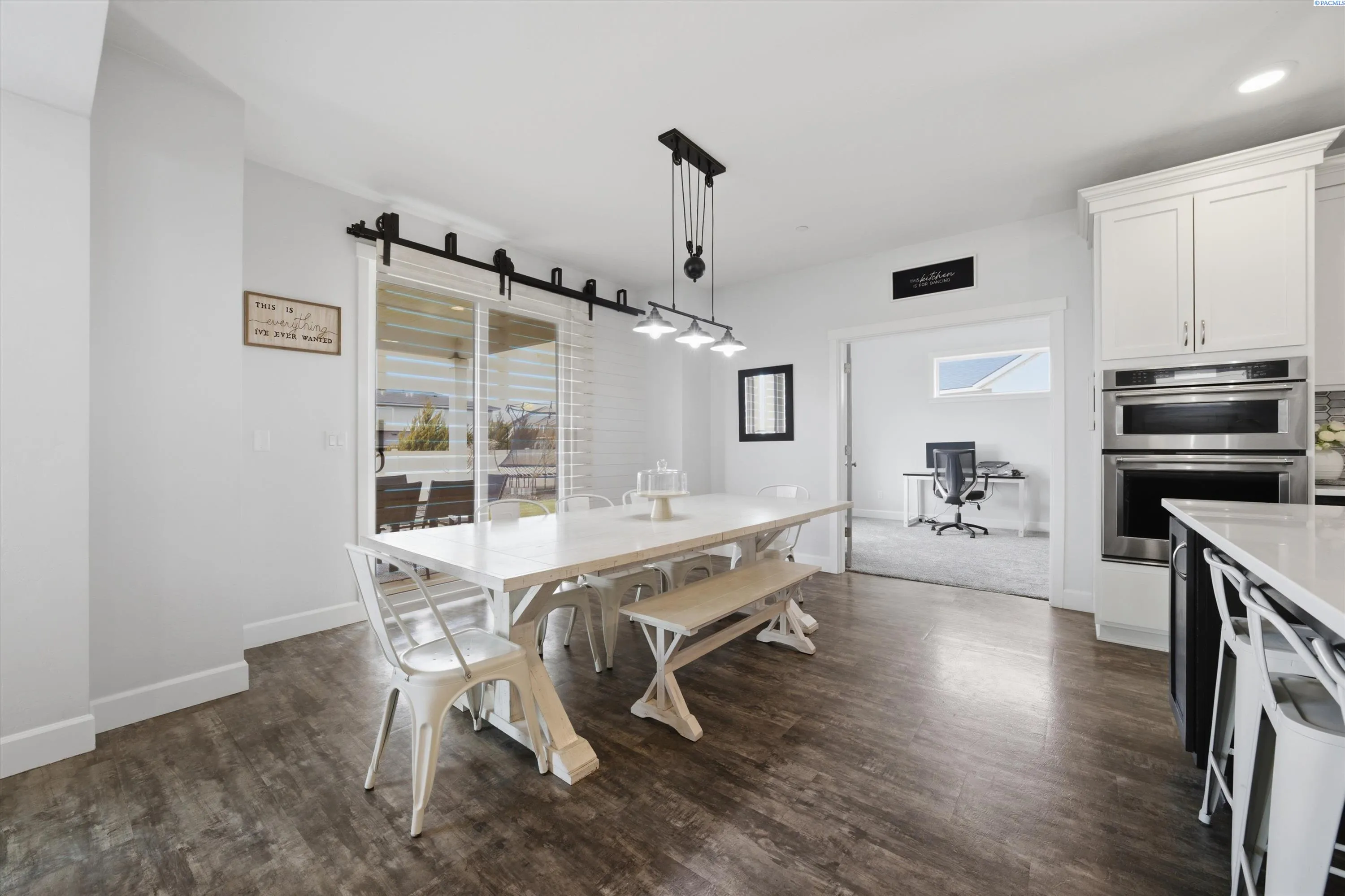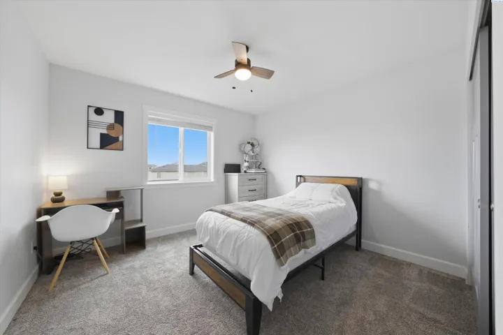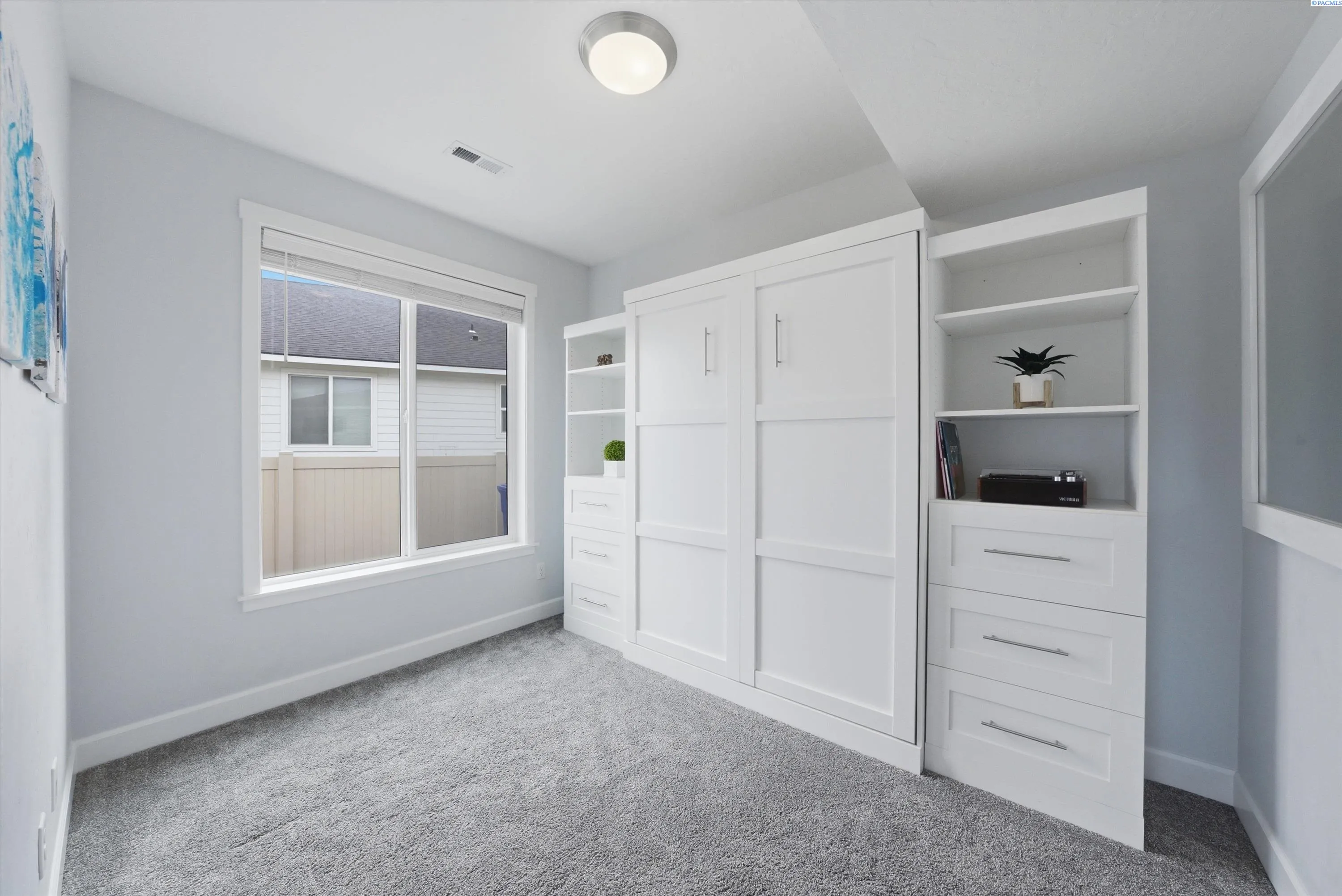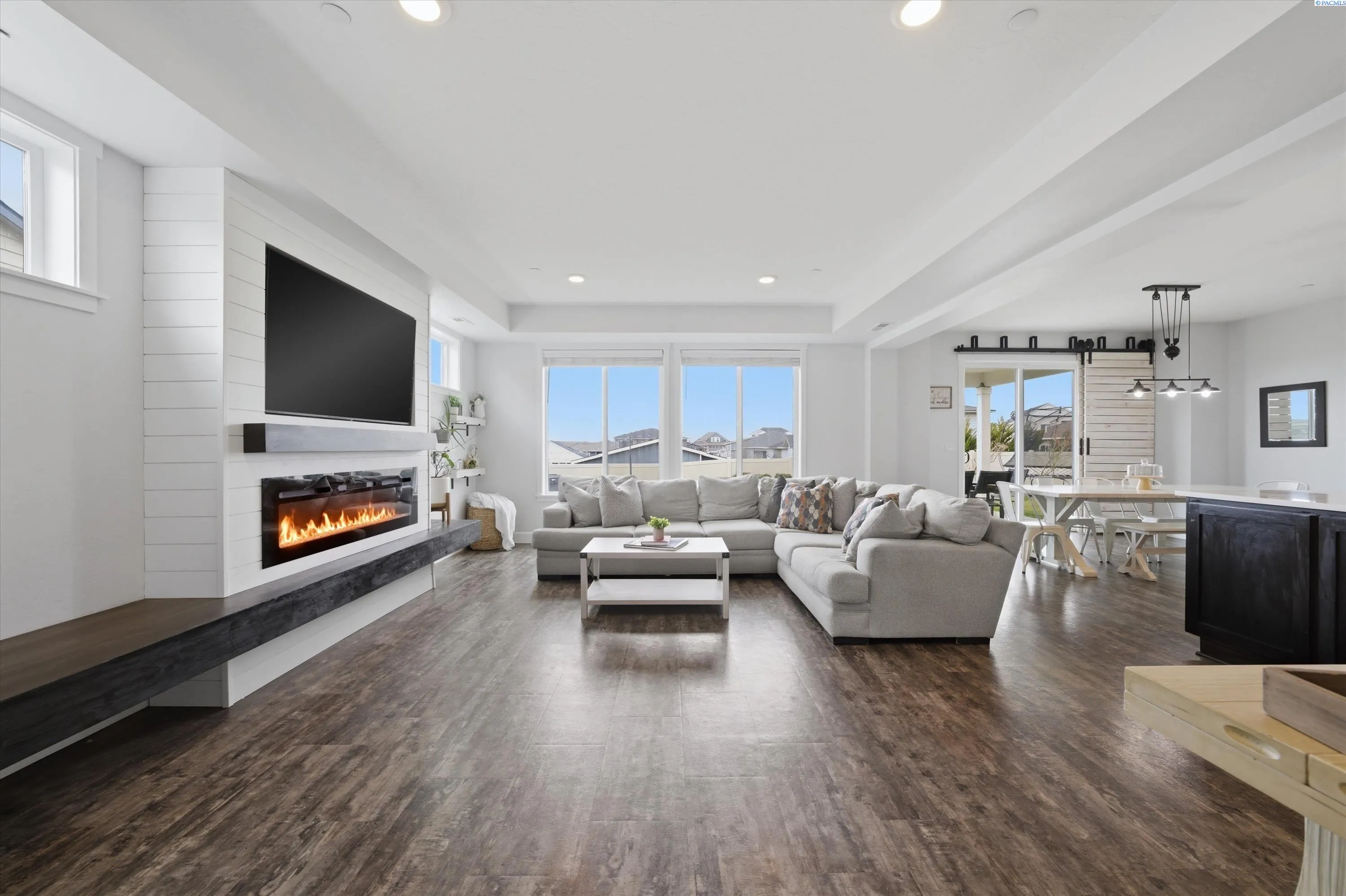 MLS# 291368 Better than new! This beautifully maintained 4-bedroom home built in 2020 offers the style and efficiency of new construction with the valuable upgrades already complete — including backyard fencing, professional landscaping with custom firepit, blinds, and thoughtfully designed living spaces- including a possible 5th bedroom/multi gen option with Murphy Bed! Inside, you’ll find warm luxury vinyl plank flooring, high ceilings, and abundant natural light throughout the open great room anchored by an electric fireplace with custom hearth bench. The spacious kitchen is designed for gathering with solid surface countertops, induction cooktop, double wall ovens, stainless steel appliances, soft-close cabinetry, a walk-in pantry, tile backsplash, and large island with bar seating. Sliding doors lead to a covered patio for seamless indoor-outdoor entertaining. Two main-level flex spaces offer versatility for a home office, den, playroom, or gym or multi-gen living. Upstairs features four spacious bedrooms, including a generous primary suite with soaking tub, floor-to-ceiling tiled shower, dual sinks, and walk-in closet, plus a conveniently located laundry room. The backyard is built for relaxing and entertaining with covered patio, grassy area, custom hardscaping, hot tub, and a sunken fire pit with glass tile and accent lighting. Energy-efficient features include solar panels, tankless water heater, smart thermostat, Hardiplank siding, and double-pane windows with black trim. Located in a desirable neighborhood with walking paths and convenient access to new shopping and dining currently under construction nearby, this move-in-ready home also offers a 3-car garage and zero-entry design. Paid off SOLAR PANELS, hot tub, trampoline and all appliances are included! Don’t wait – call today!