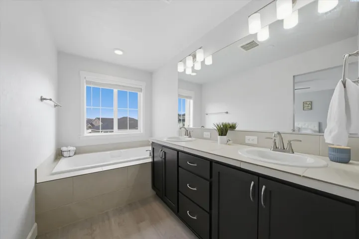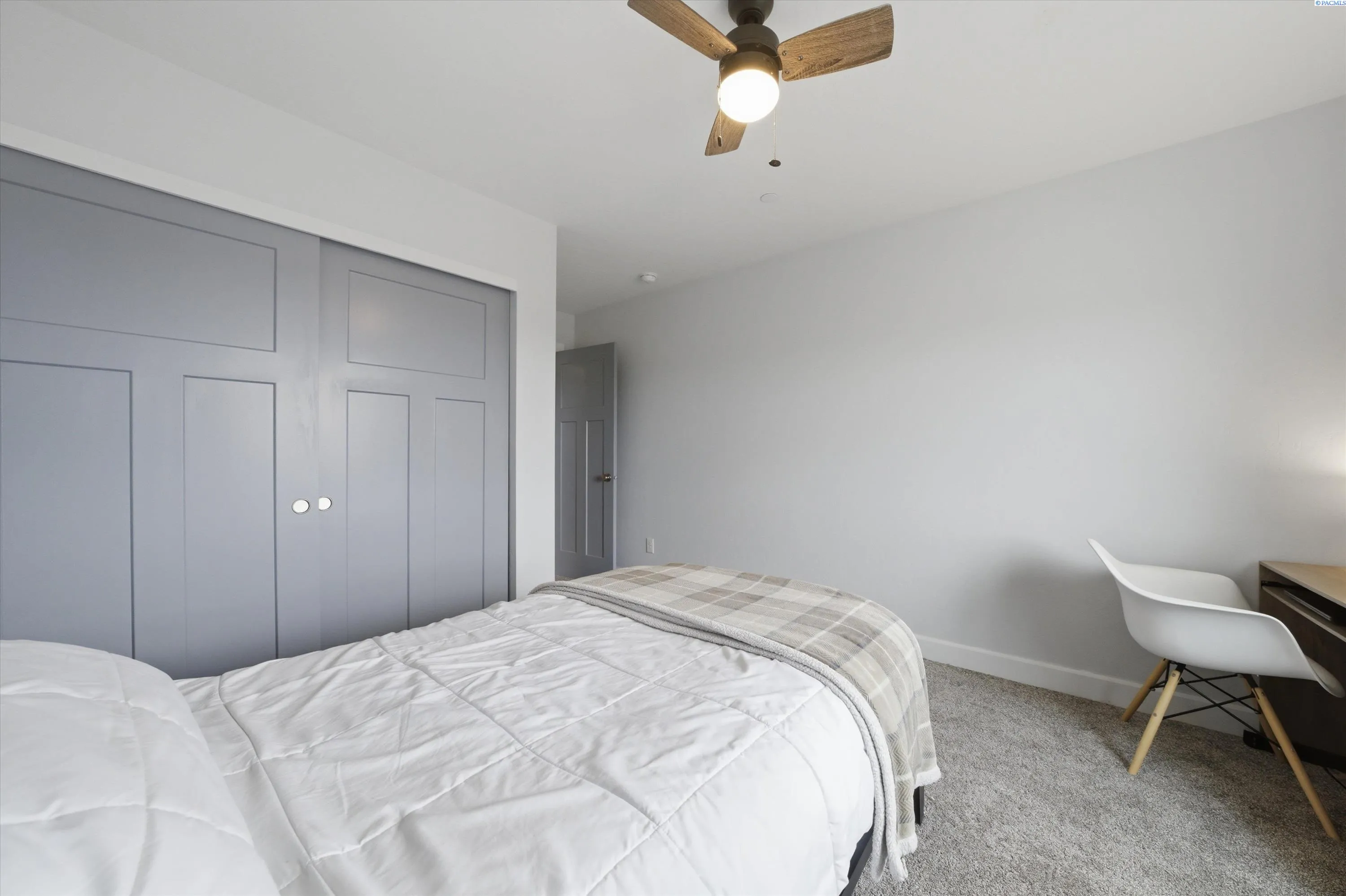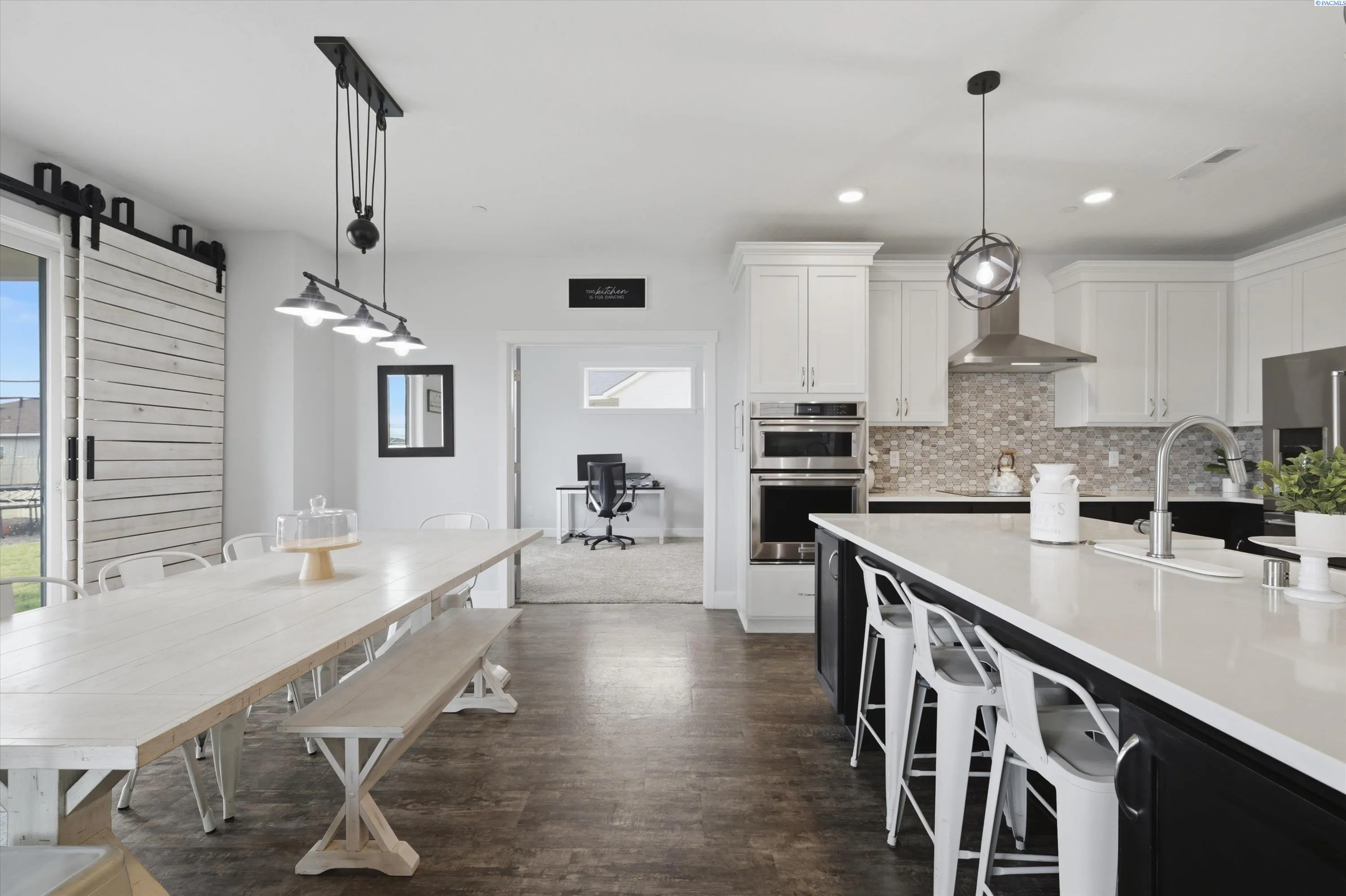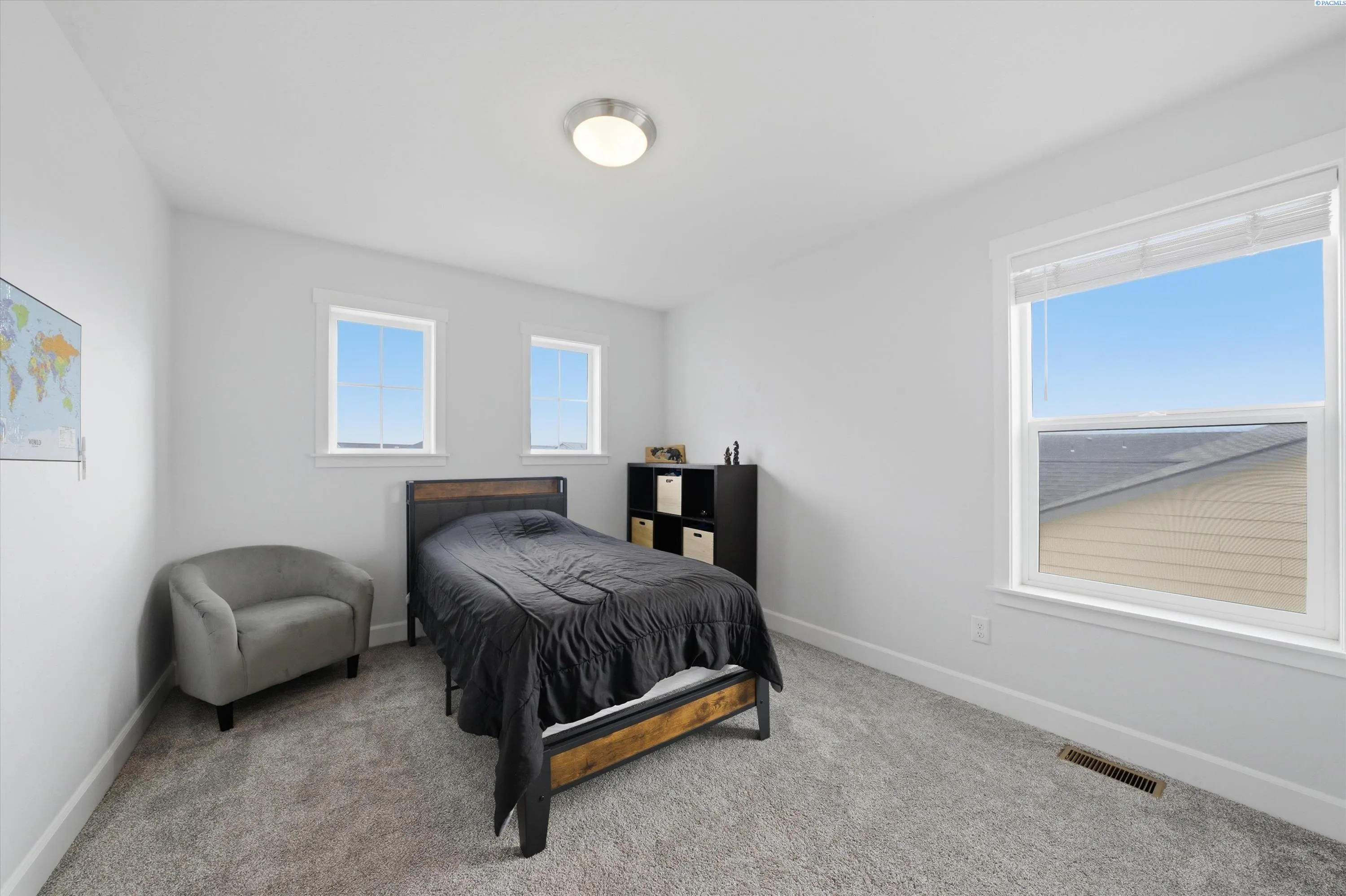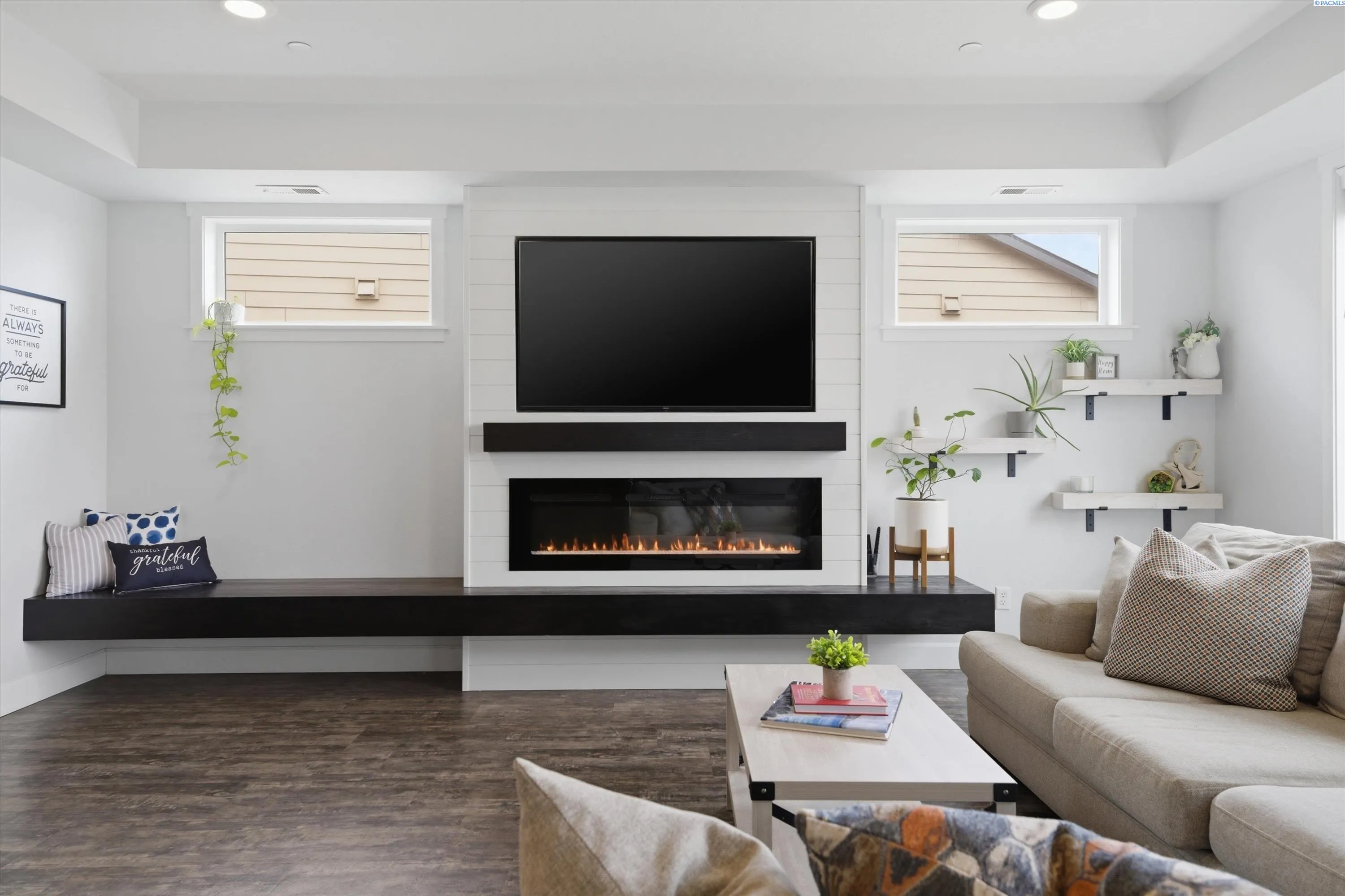 MLS# 291368 Better than new! This beautifully maintained 4-bedroom home built in 2020 offers the style and efficiency of new construction with the valuable upgrades already complete — including backyard fencing, professional landscaping with custom firepit, blinds, and thoughtfully designed living spaces- including a possible 5th bedroom/multi gen option with Murphy Bed! Inside, you’ll find warm luxury vinyl plank flooring, high ceilings, and abundant natural light throughout the open great room anchored by an electric fireplace with custom hearth bench. The spacious kitchen is designed for gathering with solid surface countertops, induction cooktop, double wall ovens, stainless steel appliances, soft-close cabinetry, a walk-in pantry, tile backsplash, and large island with bar seating. Sliding doors lead to a covered patio for seamless indoor-outdoor entertaining. Two main-level flex spaces offer versatility for a home office, den, playroom, or gym or multi-gen living. Upstairs features four spacious bedrooms, including a generous primary suite with soaking tub, floor-to-ceiling tiled shower, dual sinks, and walk-in closet, plus a conveniently located laundry room. The backyard is built for relaxing and entertaining with covered patio, grassy area, custom hardscaping, hot tub, and a sunken fire pit with glass tile and accent lighting. Energy-efficient features include solar panels, tankless water heater, smart thermostat, Hardiplank siding, and double-pane windows with black trim. Located in a desirable neighborhood with walking paths and convenient access to new shopping and dining currently under construction nearby, this move-in-ready home also offers a 3-car garage and zero-entry design. Paid off SOLAR PANELS, hot tub, trampoline and all appliances are included! Don’t wait – call today!