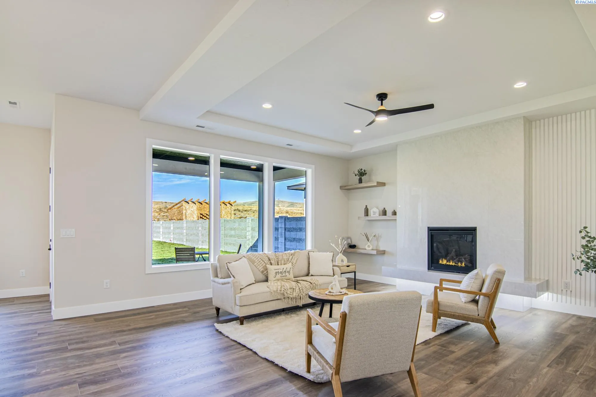 MLS# 291397 Unlock Your Dream Home with $10,000 in Buyer Closing Cost Savings! Step into the epitome of luxury living with the Grandeur Plan by Creekstone Homes, where every detail has been meticulously crafted to elevate your lifestyle. This stunning residence greets you with a grand entrance, boasting soaring ceilings and elegant crown molding, perfectly designed to offer an inviting first impression. Imagine the seamless flow of the open-concept layout, where durable LVP flooring and exquisite porcelain tile unite the main living spaces. The chef’s kitchen is a culinary dream, featuring opulent quartz countertops, a striking waterfall-edge island, and a full-height tile backsplash that adds a touch of sophistication. Cook like a pro with a five-burner gas stove, built-in microwave, and illuminated under-cabinet LED lighting, while a spacious walk-in pantry and a cozy dining nook ensure effortless entertaining.The living room is a haven of elegance, highlighted by a stunning gas fireplace adorned with ceiling-height tile, complemented by custom floating shelves and large windows that bathe the space in natural light. Step outside to enjoy the breathtaking territorial views. The ridgeline directly behind the home, will be a permanent green space that guarantees your privacy and serenity for years to come. (Future building will be 100 yards back from top of the ridge.)Indulge in the spa-like primary bathroom, featuring a deep soaker tub, a glass shower with exquisite tile finishes, built-in shelves, and a luxury dual vanity. The custom walk-in closet adds a touch of convenience to your everyday routine. The exterior of this luxury stucco home is equally impressive, showcasing a three-car garage with elegant windows that enhance both functionality and curb appeal. Thoughtfully designed, the garage offers ample space for vehicles while enhancing the home’s aesthetic charm. Exterior lighting highlights the architectural details, creating a warm and inviting ambiance in the evening. Located just minutes from shopping and amenities in a vibrant community filled with parks and walking paths, this home is perfect for future enjoyment. Don’t miss your chance to claim this dream home, complete with preferred lender and builder incentives. Call today to learn more and receive a detailed feature list!