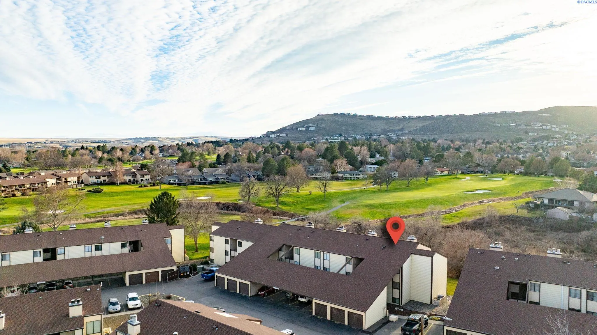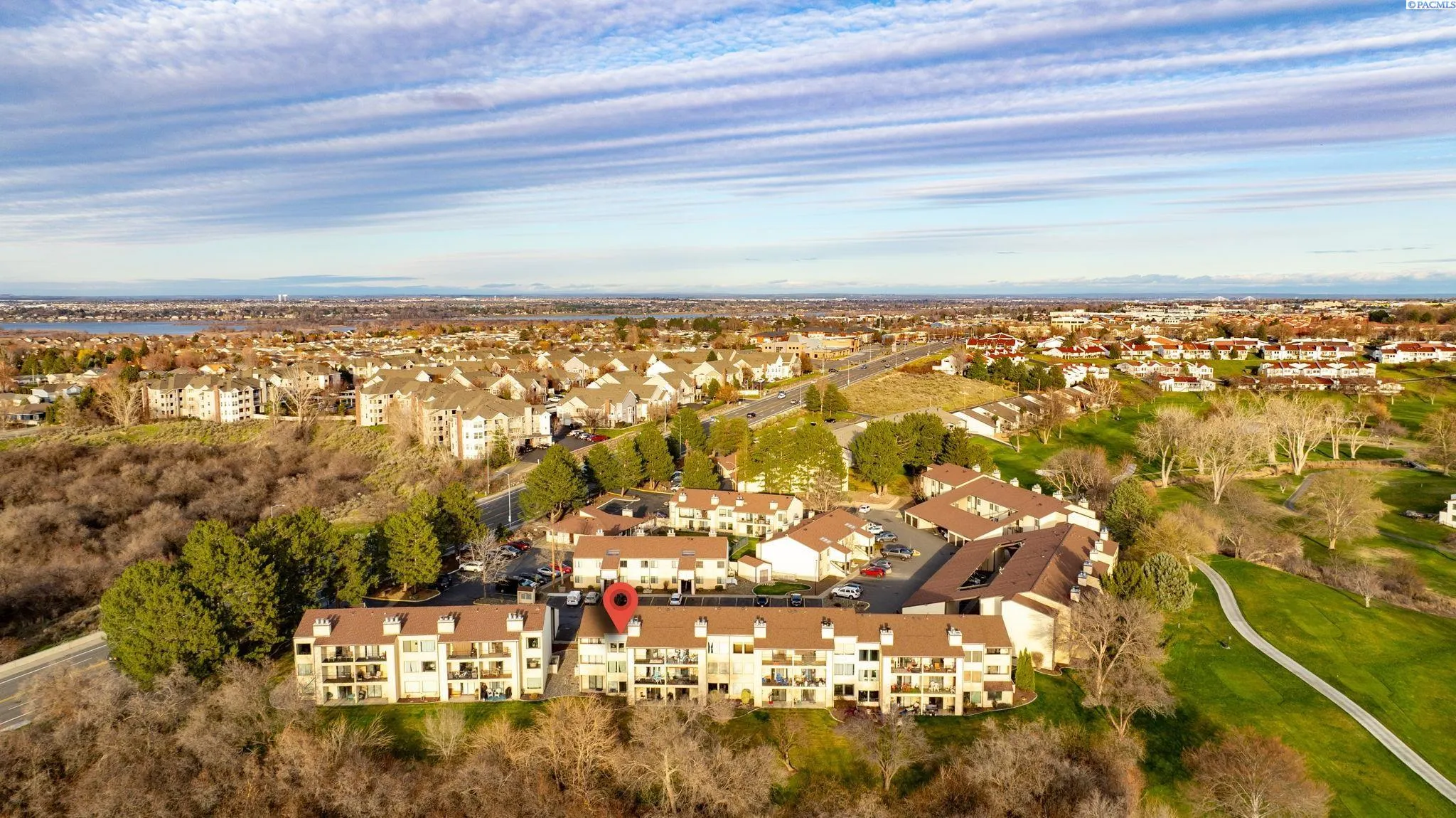 MLS# 291398 Updated 3 bed, 2 full bath third floor condo with oversized 1 car garage in a desirable Richland location near shopping and dining. Enjoy creek and golf course views from two private balconies. Open living area with wood burning fireplace flows into a bright kitchen and dining space. Spacious primary suite with vanity, tile bath, and large closet. Two additional bedrooms and full bath. HOA covers landscaping, exterior maintenance, roof, drive areas, pool, and more. Tenant occupied with potential lease renewal opportunity.