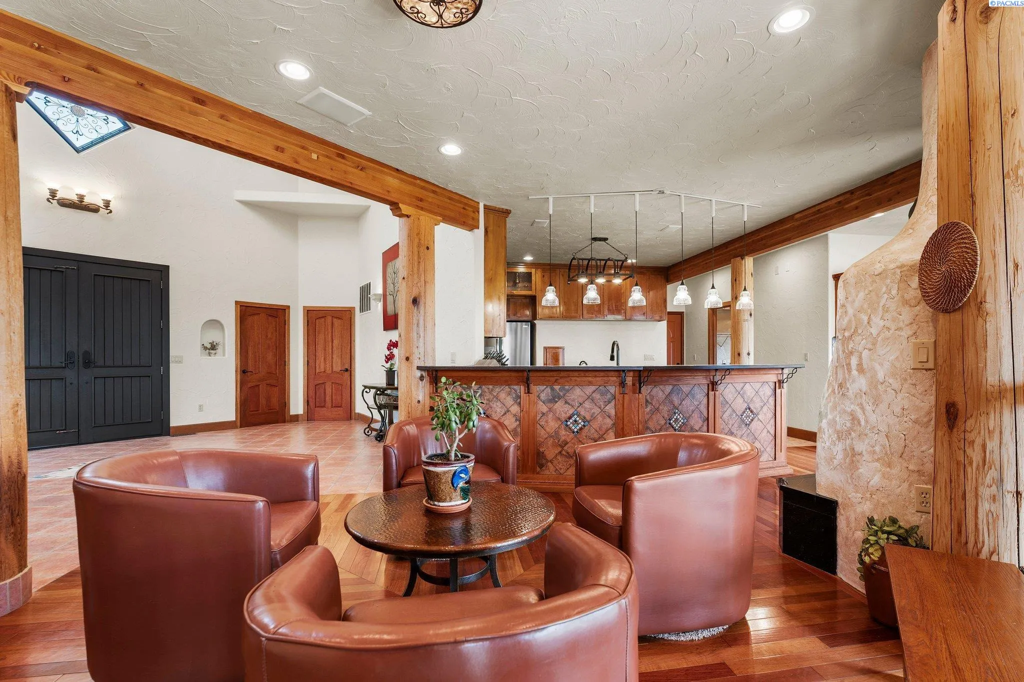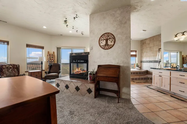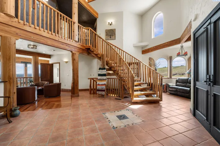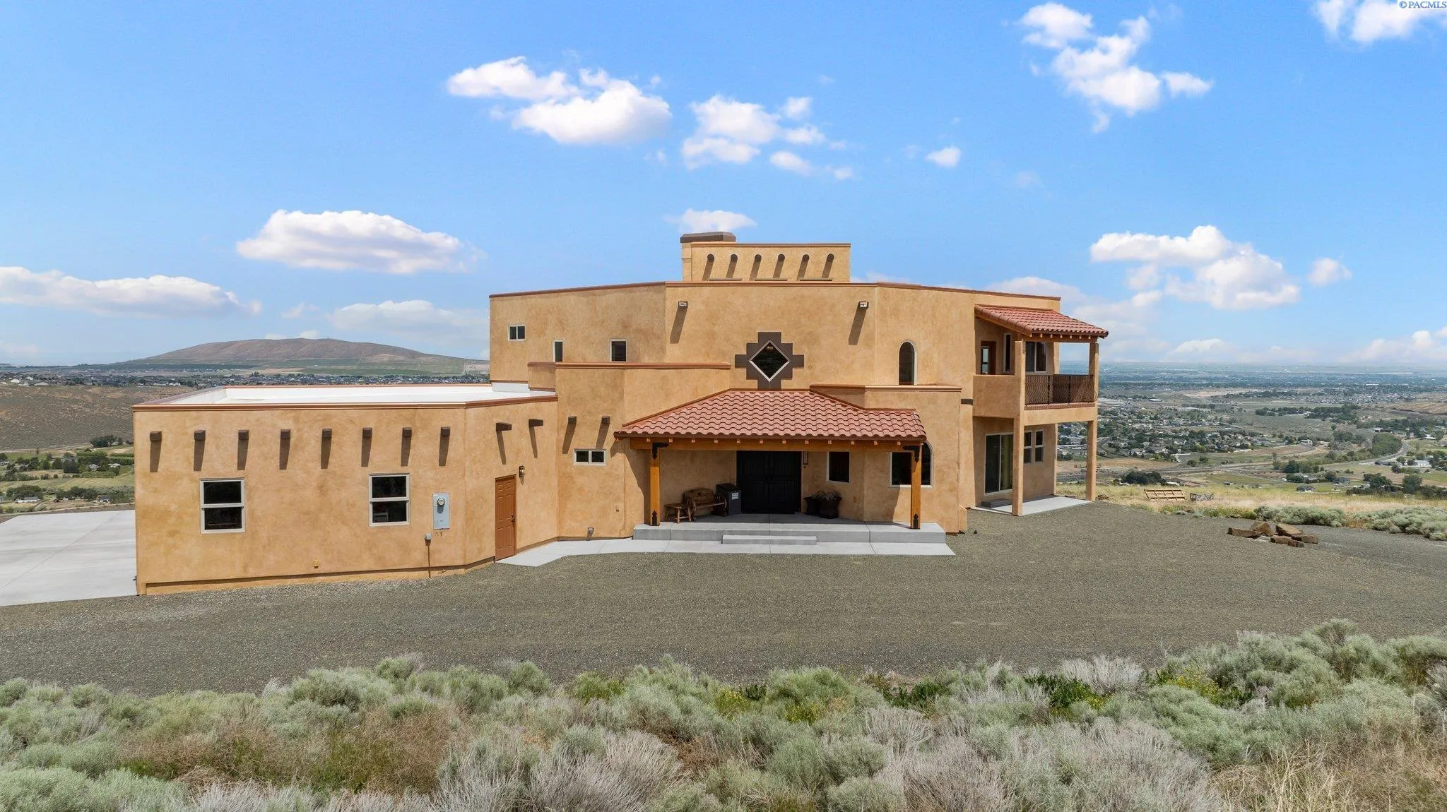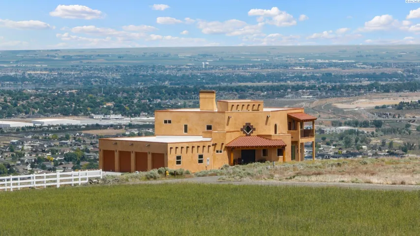 Discover the epitome of luxury living in this custom-crafted Home offering majestic panoramic views just 10 minutes away from the conveniences of the city. Located in the beautiful Horse Heaven Hills, this estate is situated on a premium lot elevated 1,000 feet above the Mid-Columbia Valley. The expansive 3.53 acres provide ample space for your dream shop and infinity pool, making it an oasis of relaxation and recreation. This exquisite home features six spacious bedrooms, five of which boast en-suite bathrooms and spectacular views. Each of the upper-level bedrooms has its own private balcony—perfect for enjoying tranquil mornings or breathtaking sunsets. The property showcases Southwest lodge details throughout, including rustic custom Honduran inlaid mahogany doors, freshly painted hand-troweled plaster walls, and stunning curved split log cedar staircases. Impressive entryway with Brazilian cherry hardwood floors, and vaulted ceilings that showcase the floor-to-ceiling windows, allowing natural light to flood the home. The kitchen is a chef’s dream come true, featuring granite countertops, a gas range, three ovens, copper sink, and an oversized pantry/laundry room. The luxurious primary suite offers an outdoor balcony, expansive windows for stunning views from the comfort of your jetted tub, copper sinks, and a cozy fireplace. It also includes a large river rock shower and a walk-in closet with a washer/dryer hookup, as well as a private staircase leading down into the kitchen. The lower level is a perfect space for social gatherings, centered around a cozy wood fireplace, featuring a second kitchen, living/family room, two bedrooms (one with an attached en-suite), and plentiful storage space. This property has undergone extensive renovations from top to bottom totaling nearly $490,000. Ensuring the homes structural integrity while maintaining its unique character. A detailed list of all renovations completed is available in the associated documents. Whether you’re seeking a personal retreat, multi-generational living, or envisioning a luxury Airbnb, this spectacular estate is ready to be tailored to your aspirations. With its combination of elegance, comfort, and breathtaking surroundings, this home is more than just a property; it’s a lifestyle waiting to be embraced.