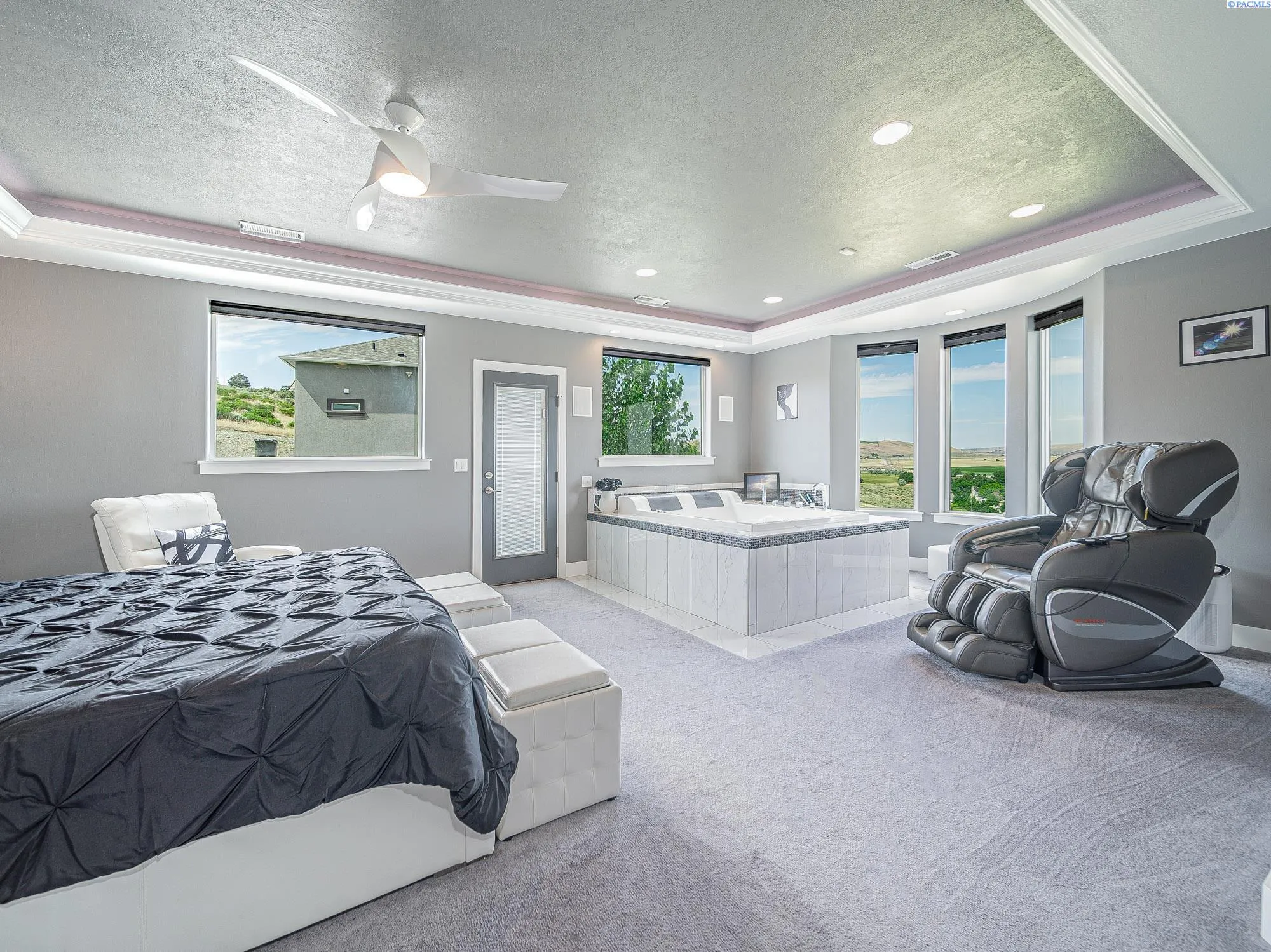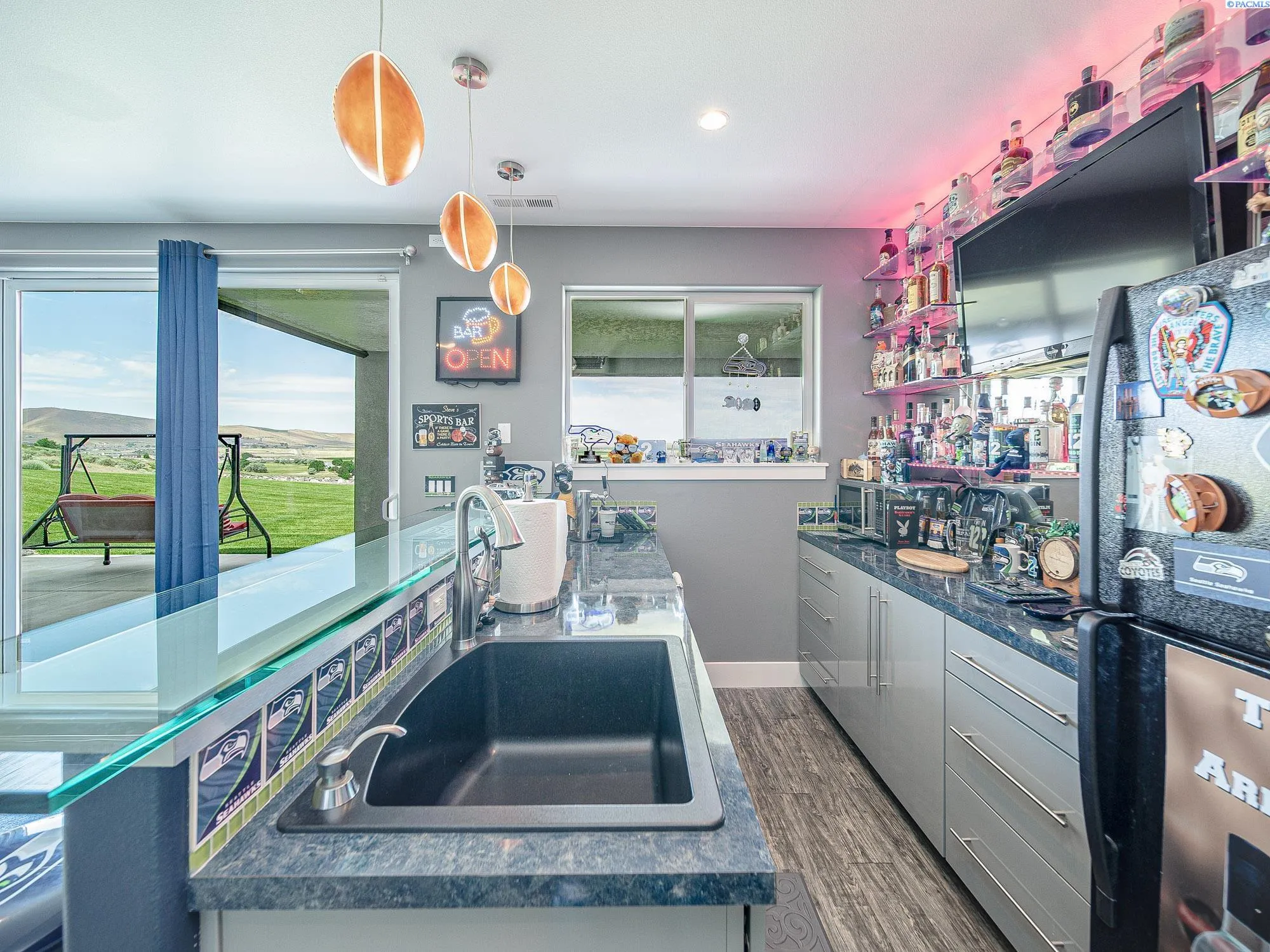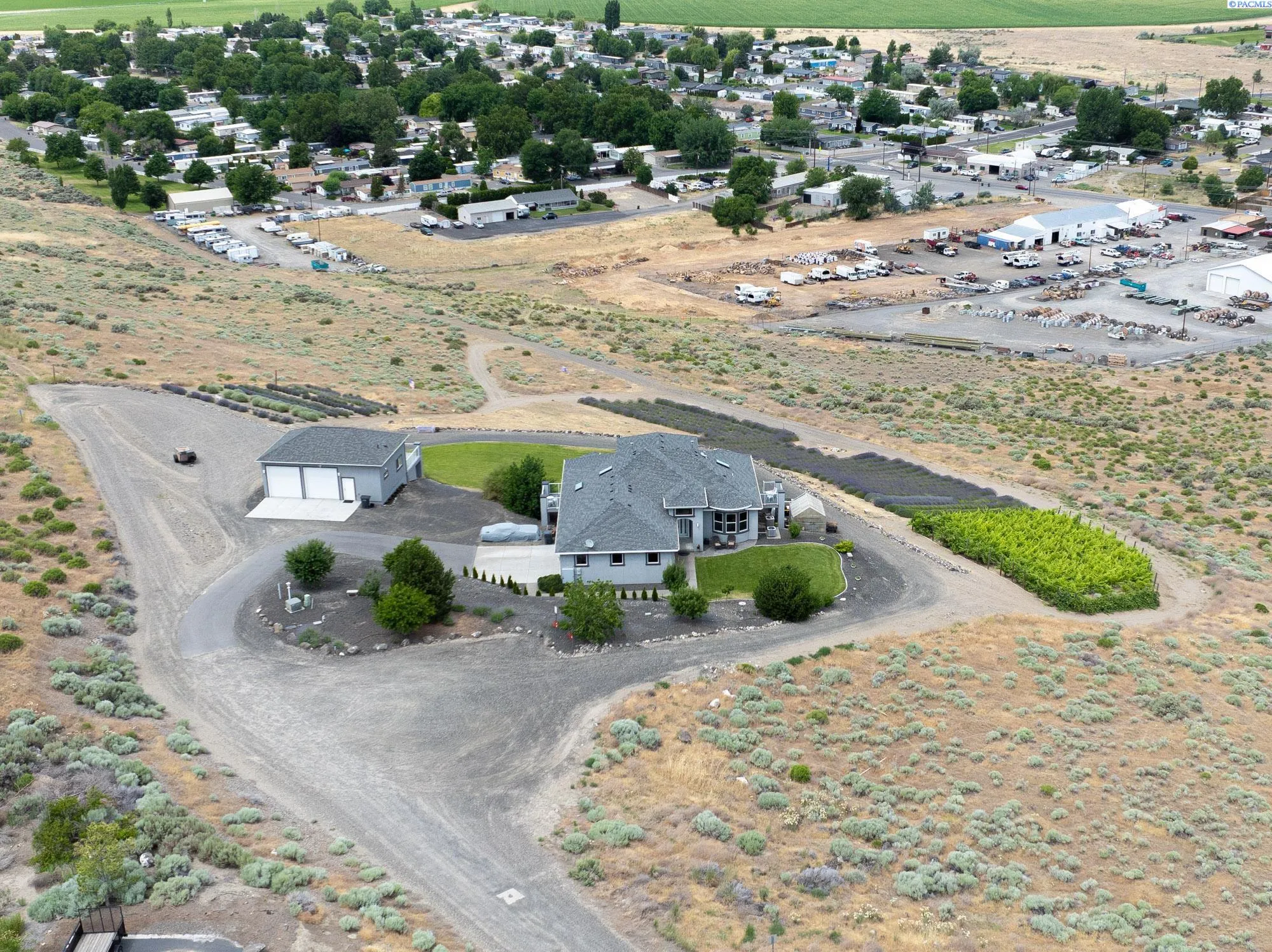 MLS# 285159 Perched on 2.5 scenic acres in the sought-after Willamette Heights neighborhood of West Richland, this exceptional custom-built home offers a one-of-a-kind living experience surrounded by a flourishing lavender farm and private vineyard of 250 Syrah vines. With breathtaking panoramic views of the Tri-Cities and Rattlesnake Mountain, every inch of this 3,450 sq ft residence is designed to impress. The thoughtfully designed 1-story layout with a fully finished walk-out basement blends modern elegance with rural tranquility. Step inside to a vaulted entryway, tile floors, and a light-filled living space anchored by a stylish fireplace and expansive windows that frame stunning natural vistas. The dining area provides an ideal setting for both everyday meals and entertaining guests while showcasing the ever-changing landscape. The kitchen is a chef’s dream featuring sleek white cabinetry, a full tile backsplash, granite countertops, a large island with breakfast bar, wine bar with beverage fridge, pantry, and stainless steel appliances including a gas range with hood. Offering 4 bedrooms and 3 luxurious bathrooms, the primary suite is a private retreat complete with a fireplace, custom lighting, spa-like bath, dual vanity, tiled walk-in shower, and a spacious custom closet. The lower level offers a large rec room with a full bar, ample space for entertaining, walk-out access to a patio, and a fourth bedroom currently outfitted as a home theater. Outdoor living is just as spectacular, with expansive decks and patios offering front-row seats to unforgettable sunsets. In addition to the attached garage, a 24×36 detached shop includes a bathroom, full commercial kitchen, and large deck — perfect for projects, events, classes and running your own agri-business. A previously established business presents the perfect opportunity using 13 various types of lavender plants. This property combines luxury living with productive land and income potential — a rare opportunity to own a serene estate in the heart of wine country. This property has a business incorporated called Sunkissed Lavender Farms which originated in 2017. This is an established built in business opportunity! Seek further info from LA on what all the business entails.