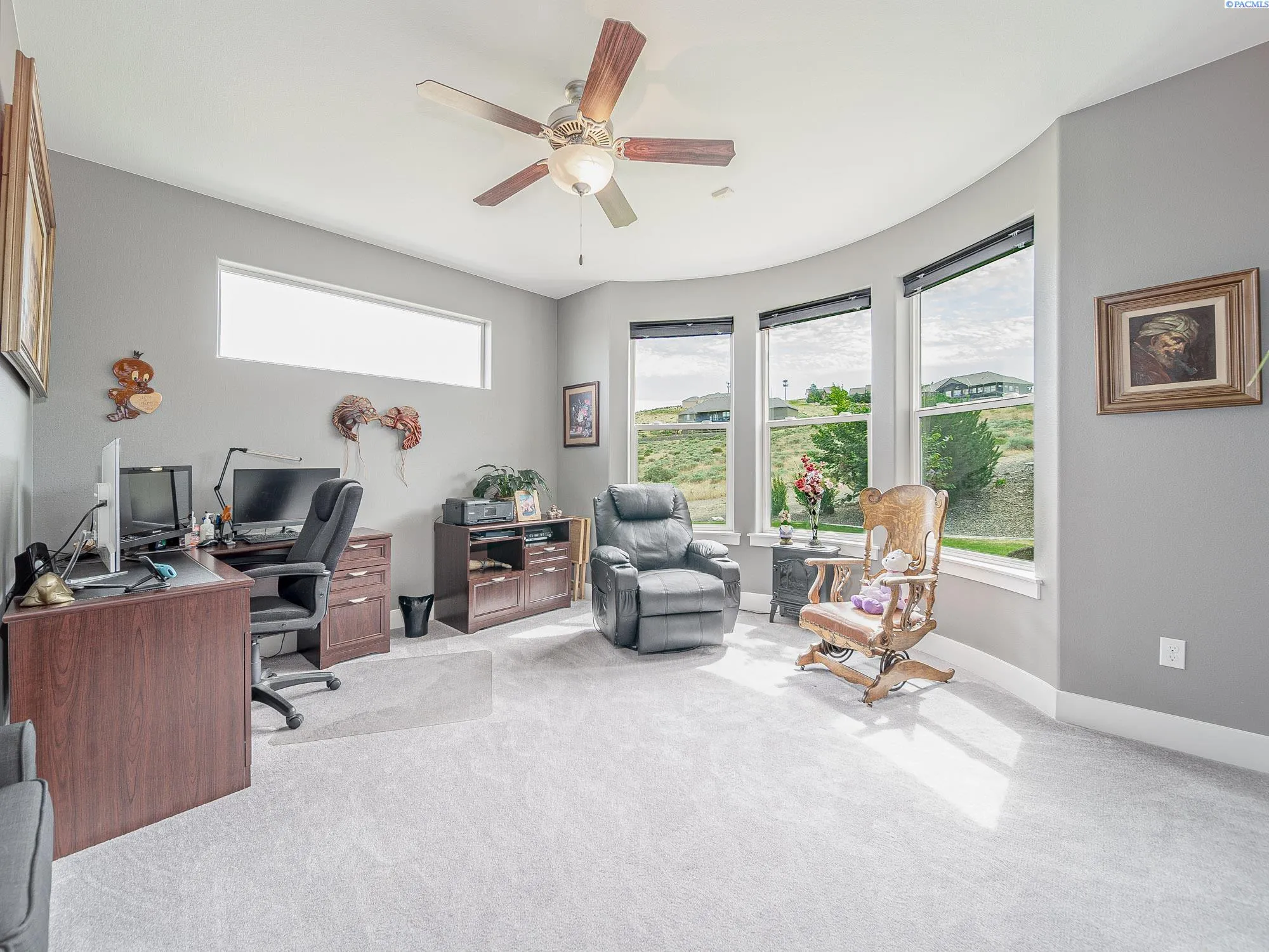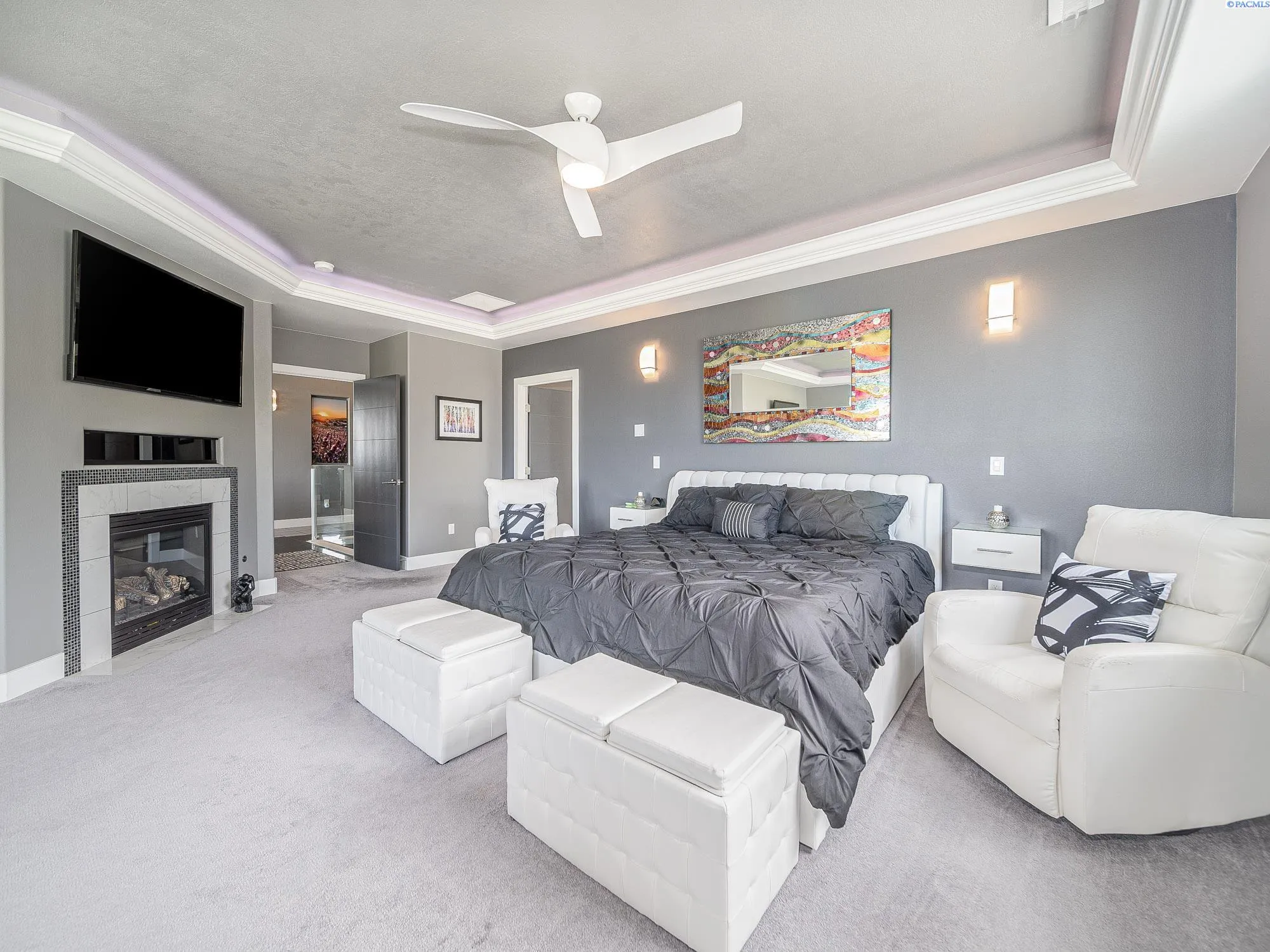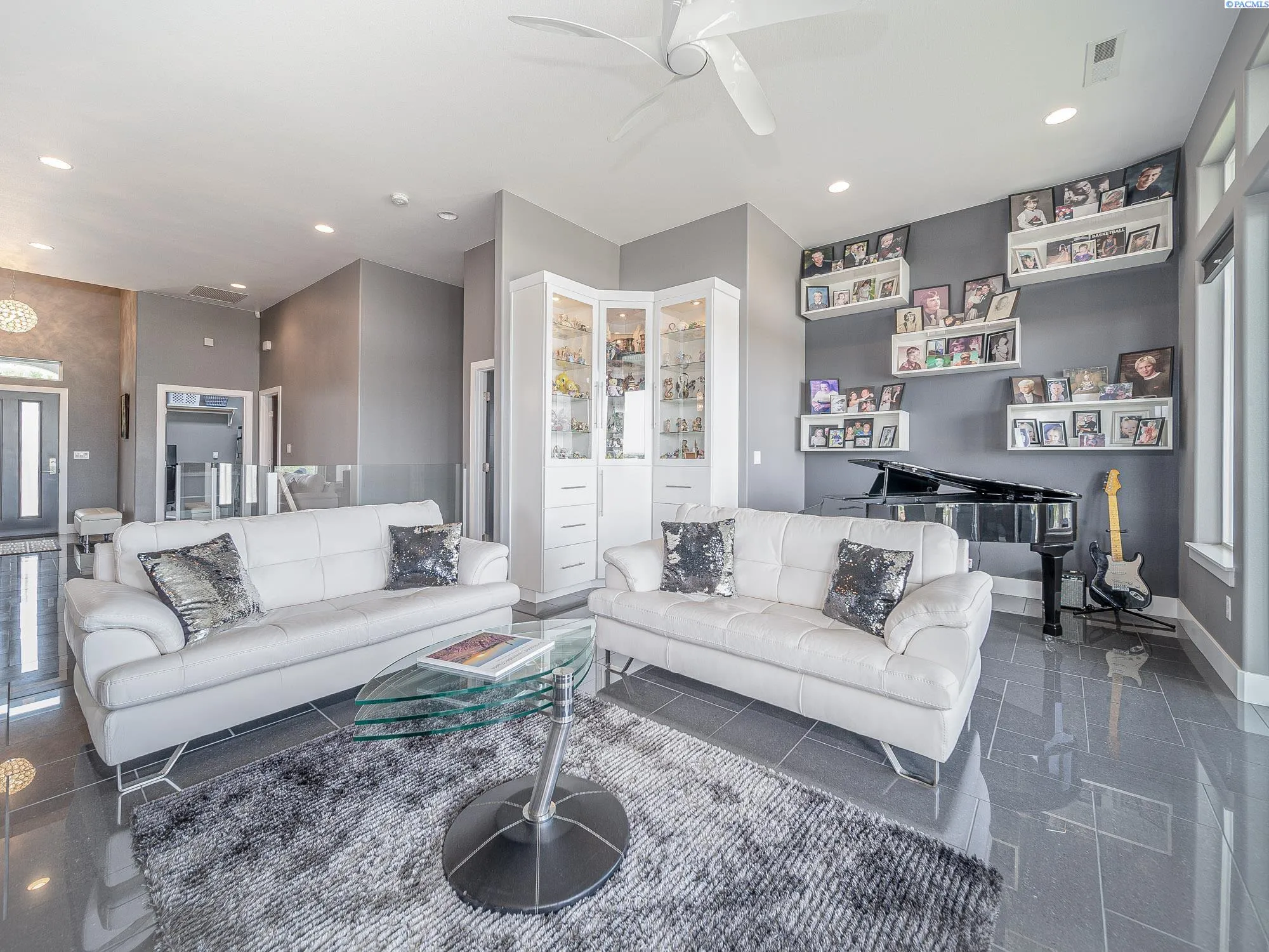 MLS# 285159 Perched on 2.5 scenic acres in the sought-after Willamette Heights neighborhood of West Richland, this exceptional custom-built home offers a one-of-a-kind living experience surrounded by a flourishing lavender farm and private vineyard of 250 Syrah vines. With breathtaking panoramic views of the Tri-Cities and Rattlesnake Mountain, every inch of this 3,450 sq ft residence is designed to impress. The thoughtfully designed 1-story layout with a fully finished walk-out basement blends modern elegance with rural tranquility. Step inside to a vaulted entryway, tile floors, and a light-filled living space anchored by a stylish fireplace and expansive windows that frame stunning natural vistas. The dining area provides an ideal setting for both everyday meals and entertaining guests while showcasing the ever-changing landscape. The kitchen is a chef’s dream featuring sleek white cabinetry, a full tile backsplash, granite countertops, a large island with breakfast bar, wine bar with beverage fridge, pantry, and stainless steel appliances including a gas range with hood. Offering 4 bedrooms and 3 luxurious bathrooms, the primary suite is a private retreat complete with a fireplace, custom lighting, spa-like bath, dual vanity, tiled walk-in shower, and a spacious custom closet. The lower level offers a large rec room with a full bar, ample space for entertaining, walk-out access to a patio, and a fourth bedroom currently outfitted as a home theater. Outdoor living is just as spectacular, with expansive decks and patios offering front-row seats to unforgettable sunsets. In addition to the attached garage, a 24×36 detached shop includes a bathroom, full commercial kitchen, and large deck — perfect for projects, events, classes and running your own agri-business. A previously established business presents the perfect opportunity using 13 various types of lavender plants. This property combines luxury living with productive land and income potential — a rare opportunity to own a serene estate in the heart of wine country. This property has a business incorporated called Sunkissed Lavender Farms which originated in 2017. This is an established built in business opportunity! Seek further info from LA on what all the business entails.